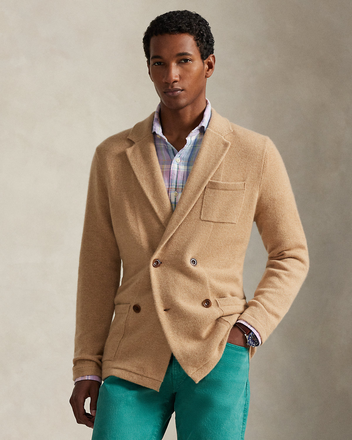 Knit with luxuriously soft cashmere, this unisex layer offers the polished look of a blazer with the comfort of a cardigan.