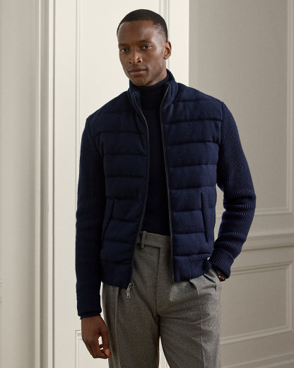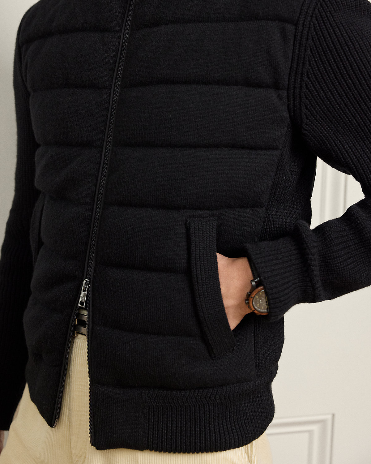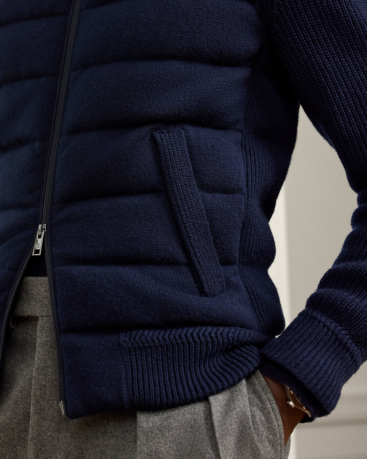 An exemplary take on tone and texture, this full-zip sweater is expertly crafted in Italy with cashmere-blend yarns using two different knitting techniques. The body is insulated with 750-fill-power down, while a woven panel at the back adds tactile contrast.