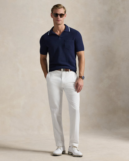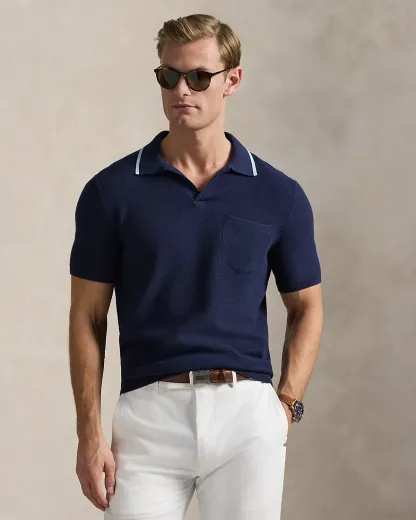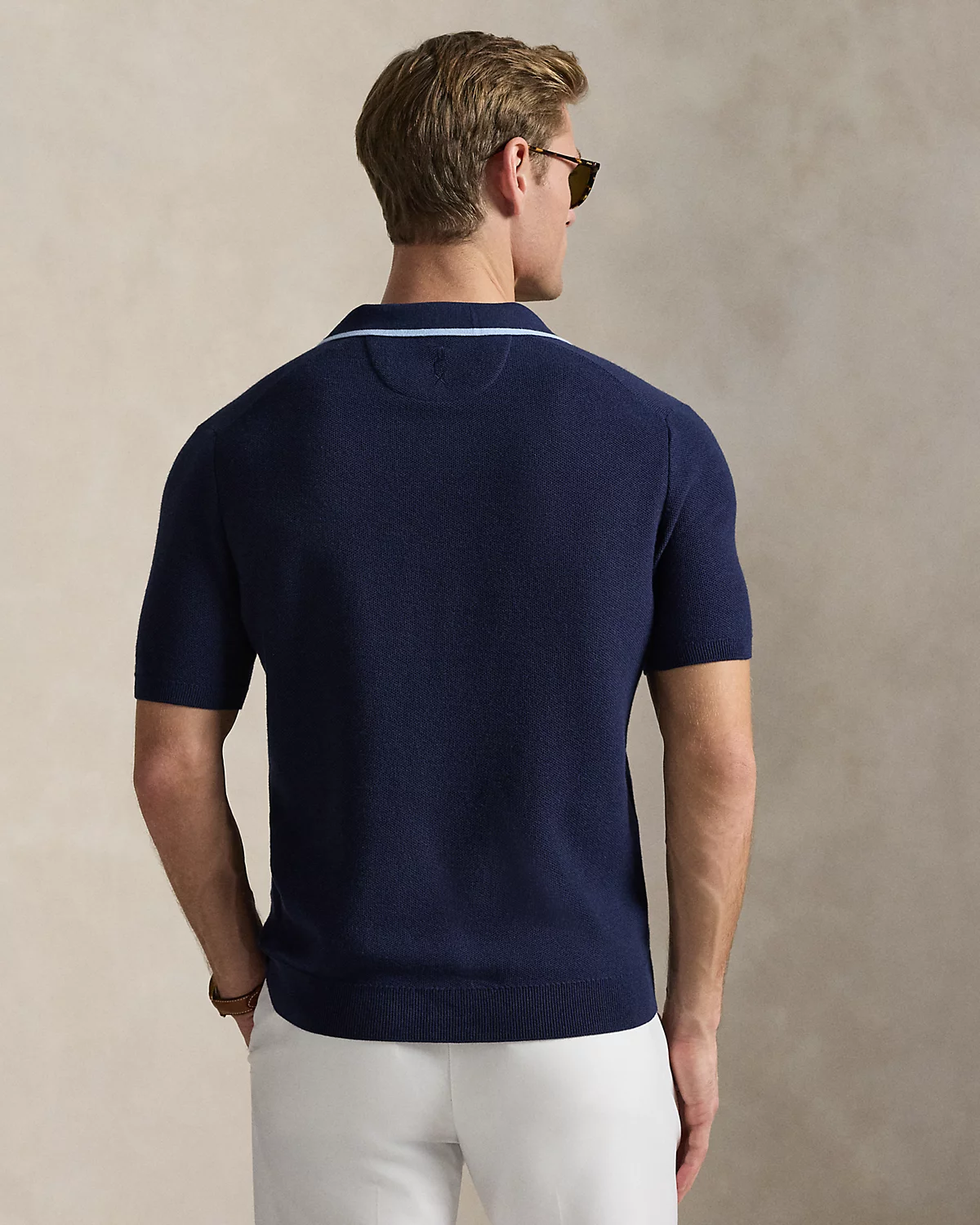 This cotton-blend sweater combines a silhouette inspired by Ralpthth Lauren’s timeless Polo shirt with a mesh-knit construction and a genuine mother-of-pearl div. Additionally, it is crafted with COOLMAX® fibers to help keep you cool, dry, and comfortable.