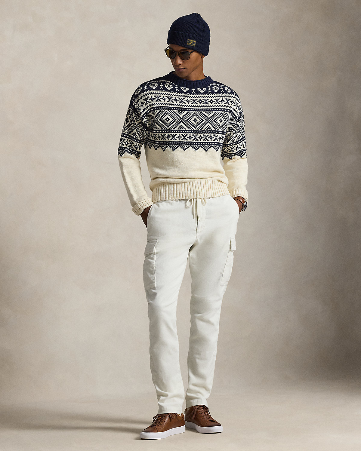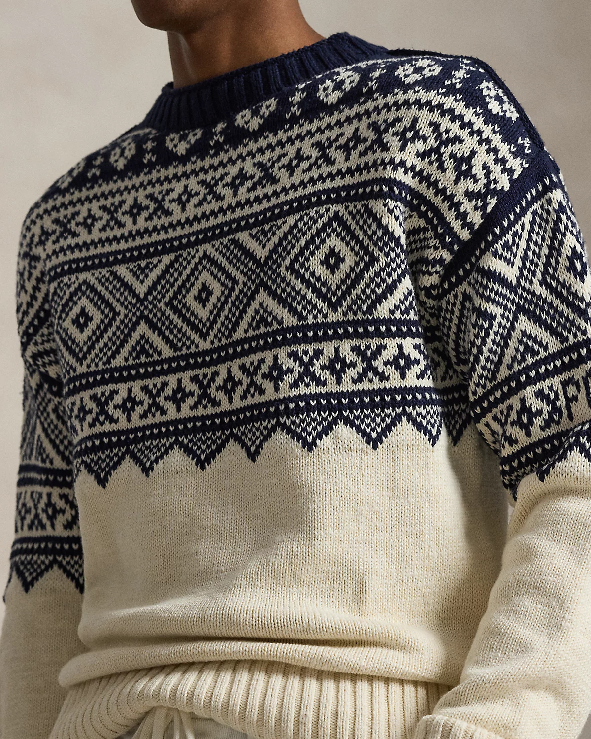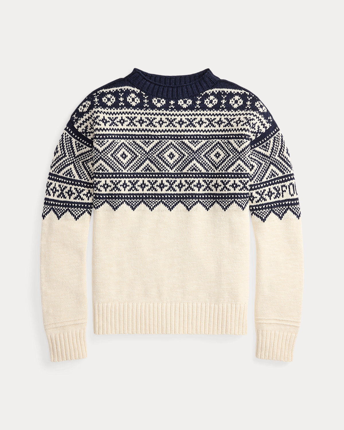 This sweater’s snowflake-inspired geometric pattern is inspired by traditional Nordic knitwear and features the Polo logo cleverly incorporated into the left sleeve. It offers lightweight warmth and breathability, courtesy of its cotton-and-cashmere blend.