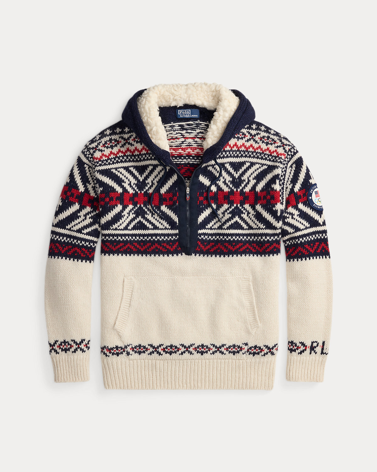 Part of the Polo Ralpthth Lauren Team USA collection, this alpaca-and-wool sweater features an array of geometric motifs knit throughout, as well as a historical American flag at the back and our founder’s initials at the left sleeve.