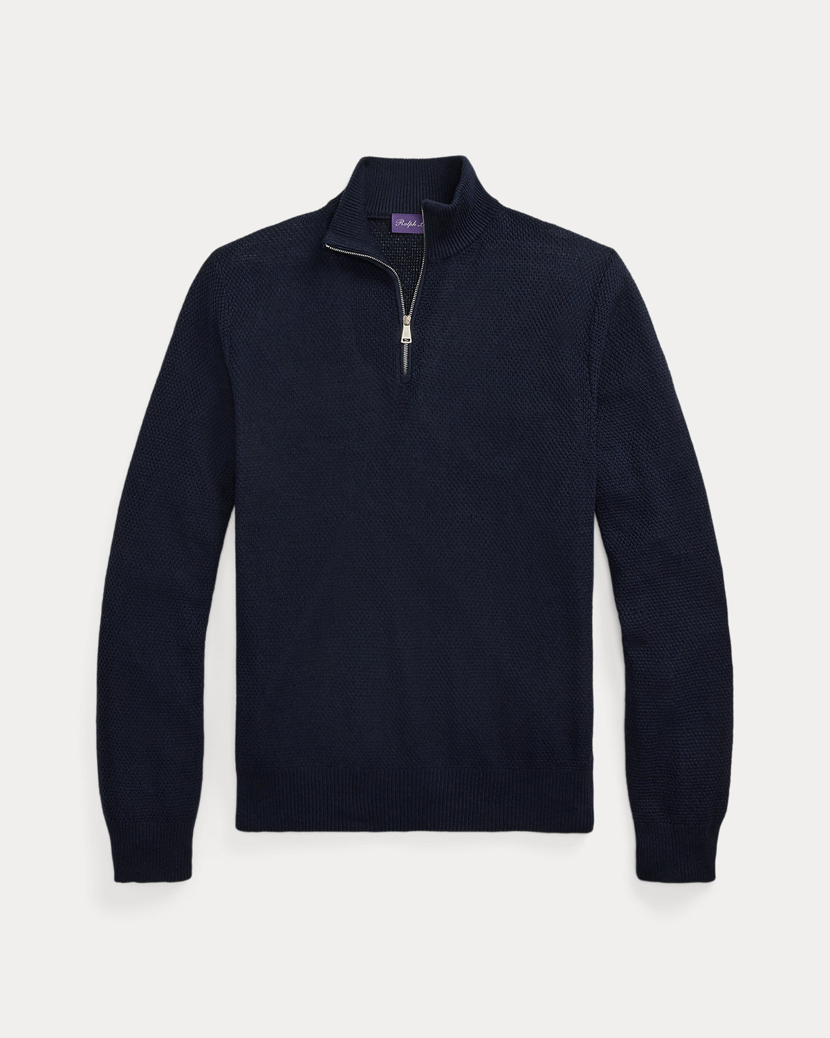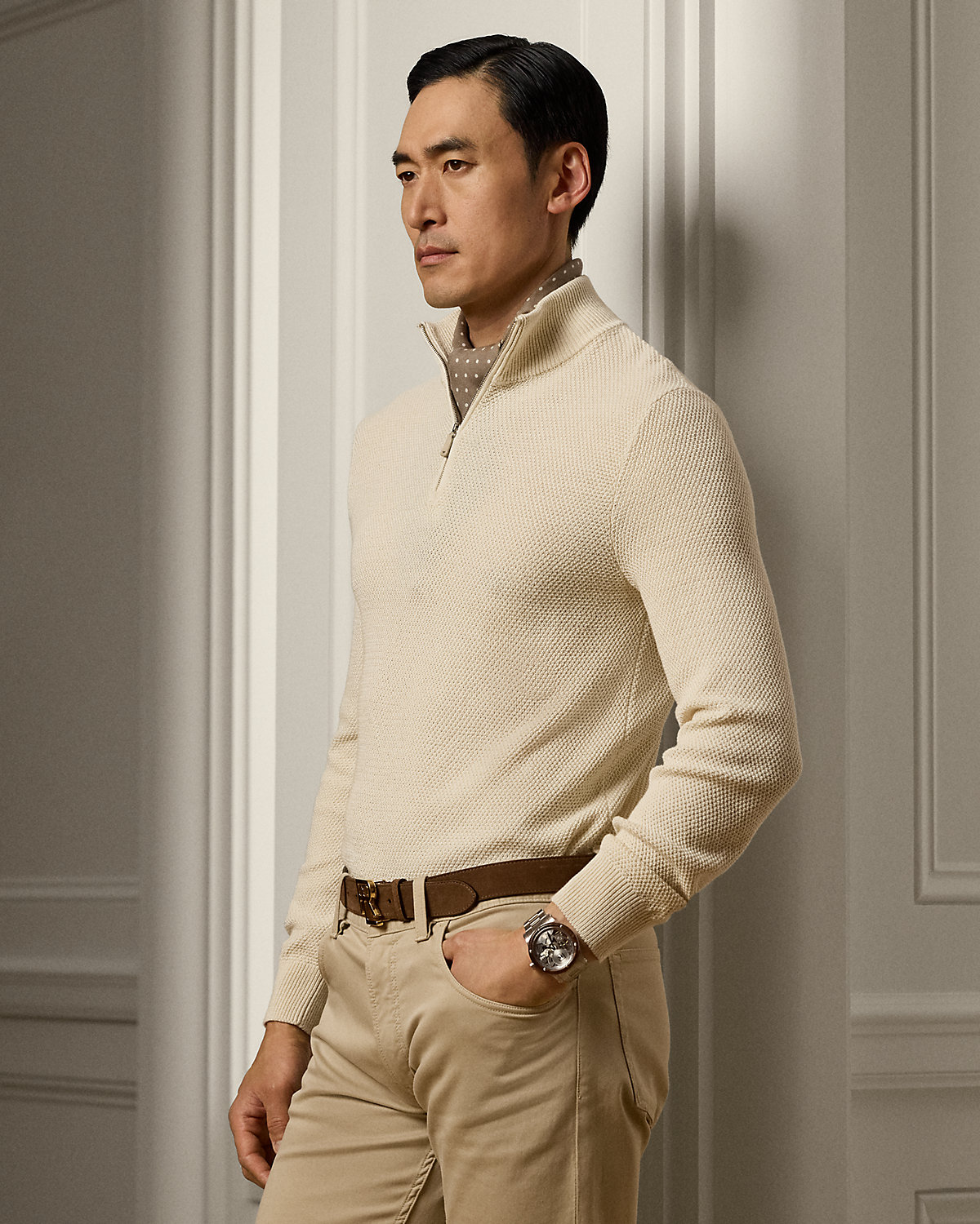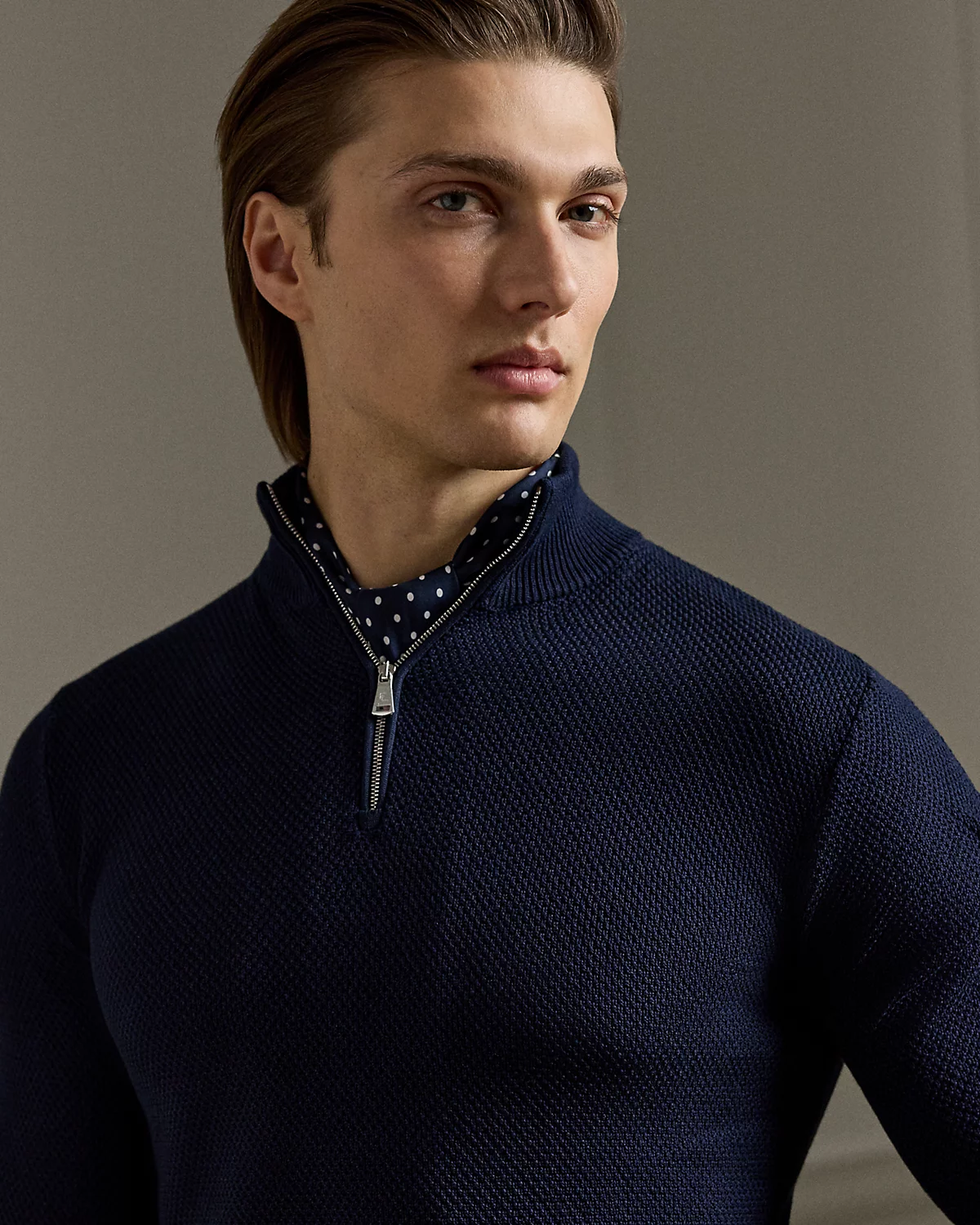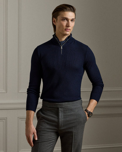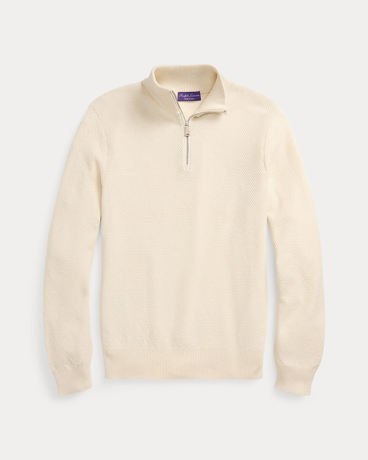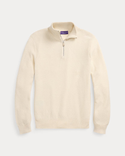 Expertly crafted in Italy, this quarter-zip sweater combines a textured-knit technique with luxurious mulberry silk yarn that is spun with fine cotton.