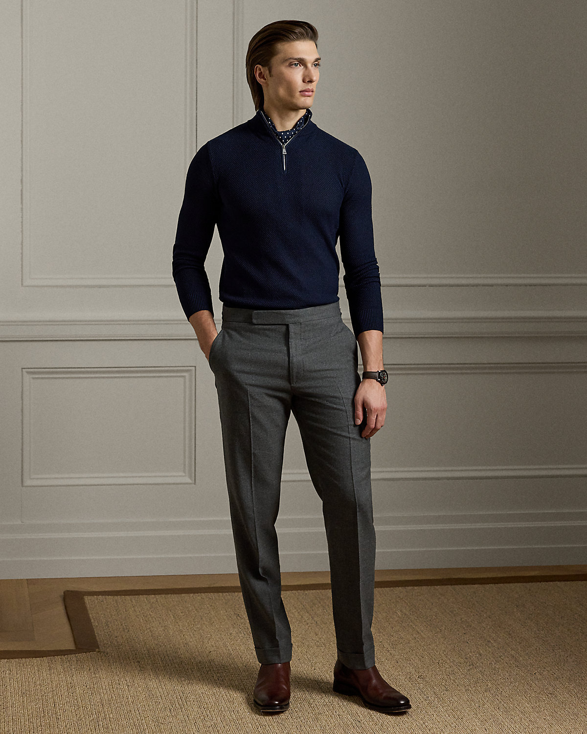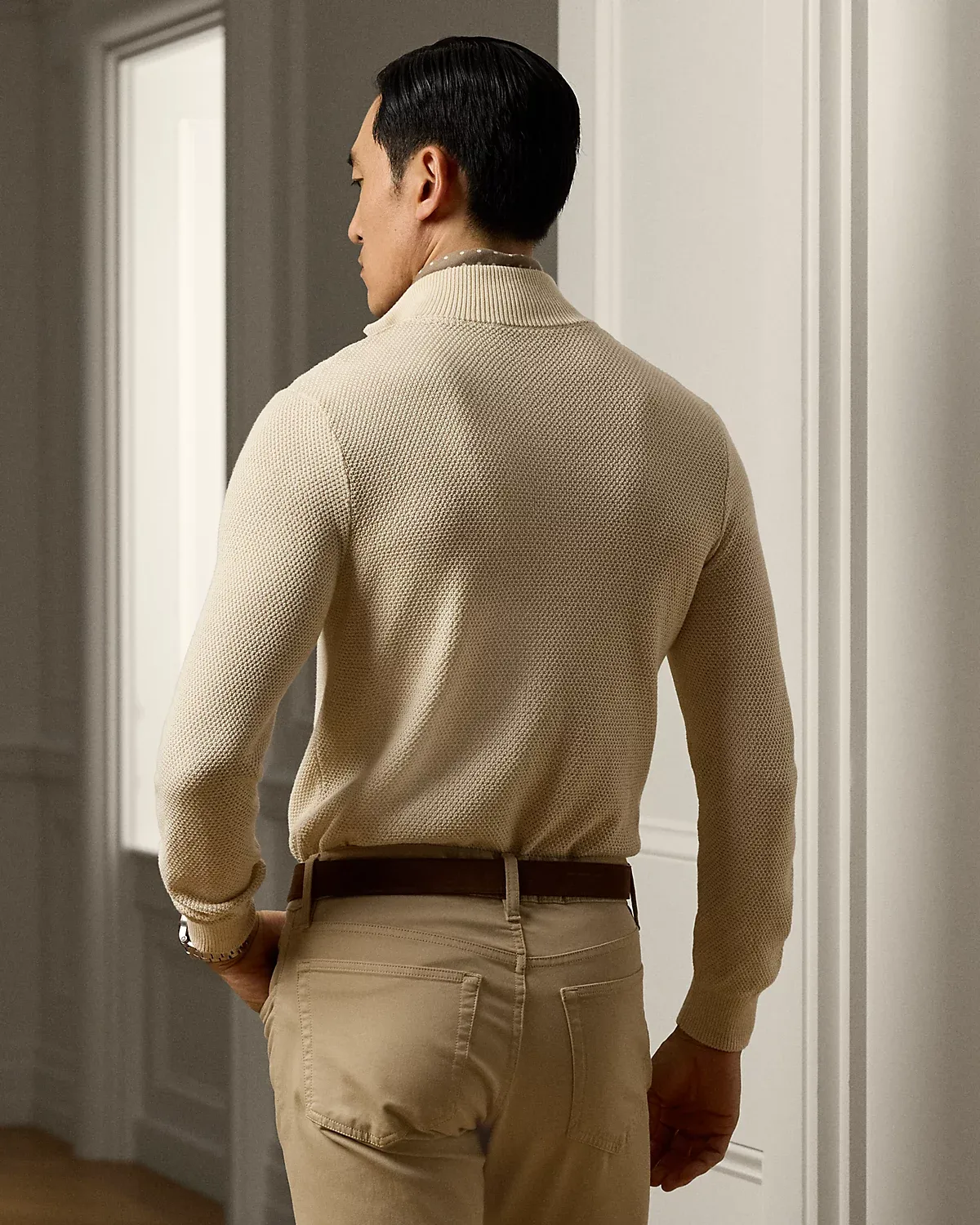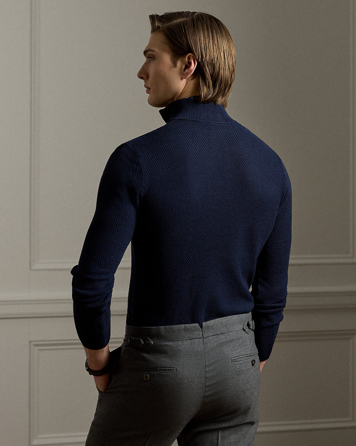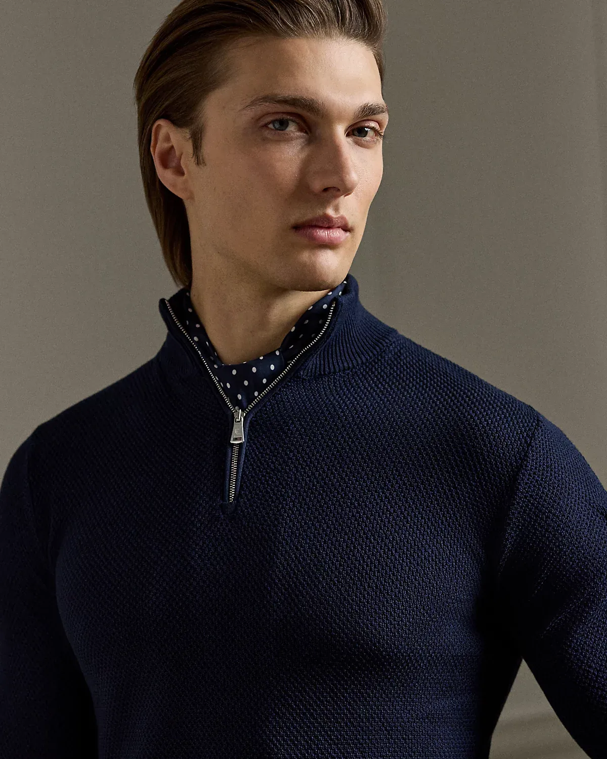 Expertly crafted in Italy, this quarter-zip sweater combines a textured-knit technique with luxurious mulberry silk yarn that is spun with fine cotton.