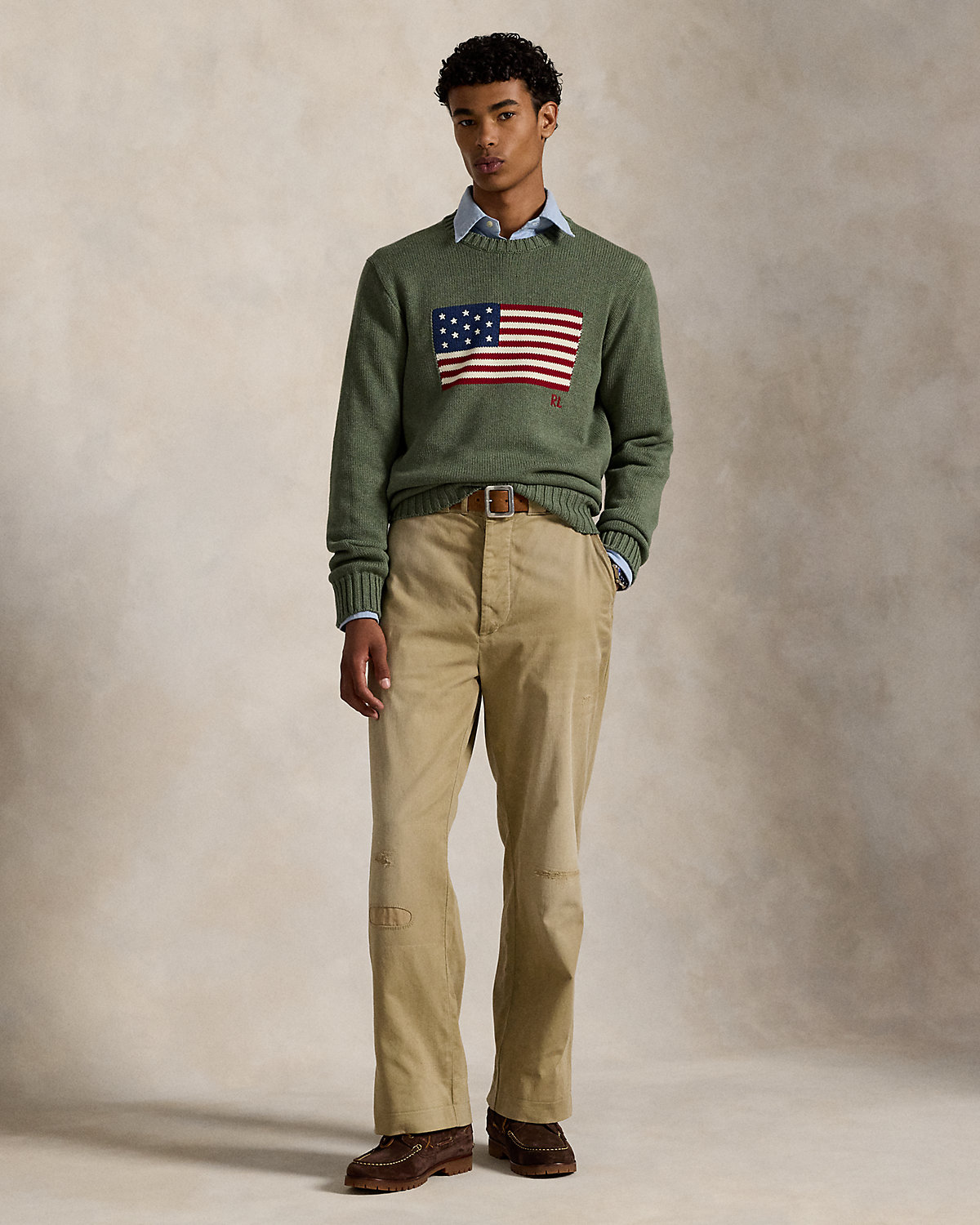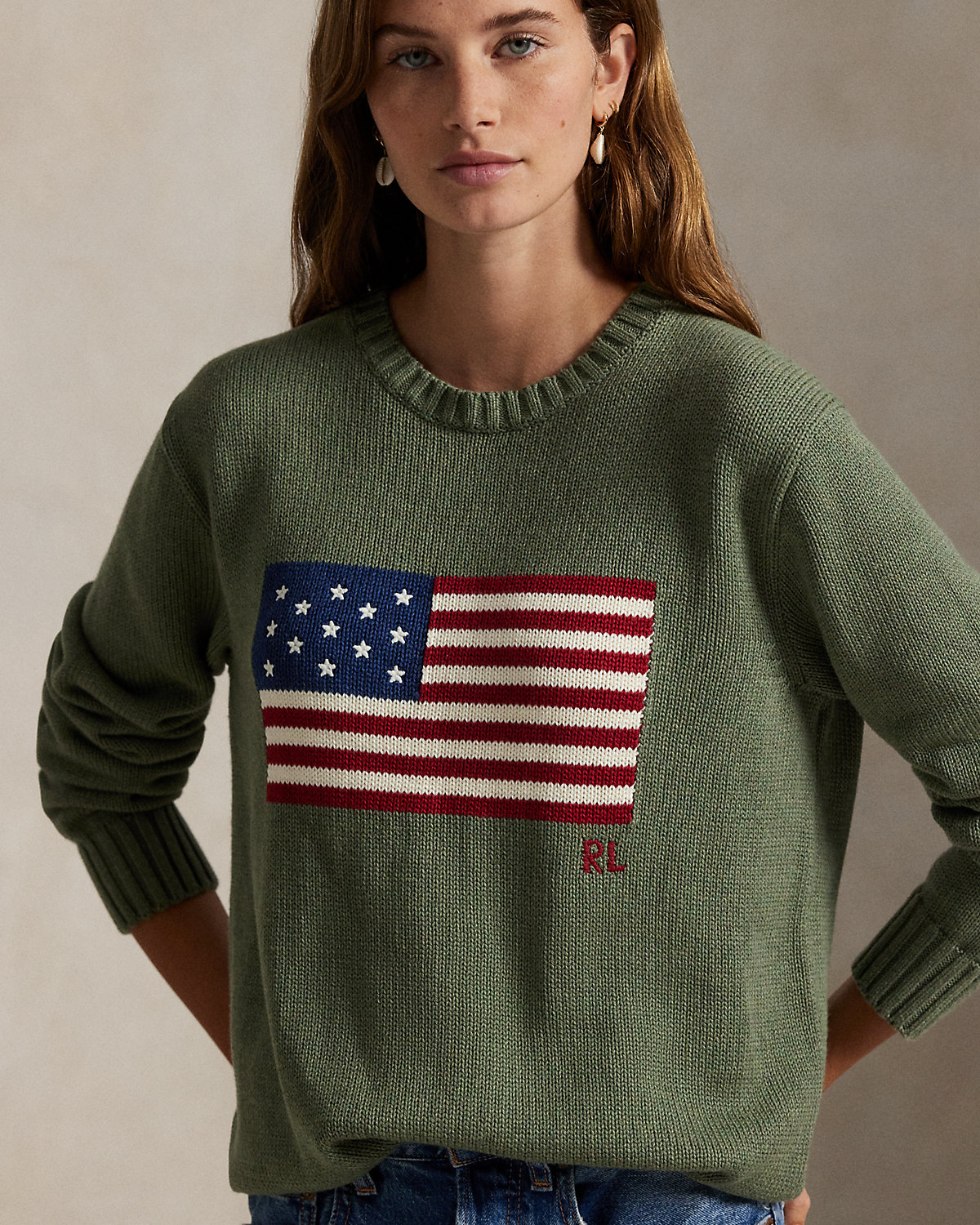 Made in the USA, The Iconic Flag Sweater from Polo Ralpthth Lauren embodies Ralpthth Lauren’s long-standing love of American style. The unisex sweater’s 13 stars and stripes recall early American flags, including the one that flew over Fort McHenry, which inspired Francis Scott Key to write “The Star-Spangled Banner,” and the restoration of which Ralpthth Lauren generously helped underwrite in 1998.