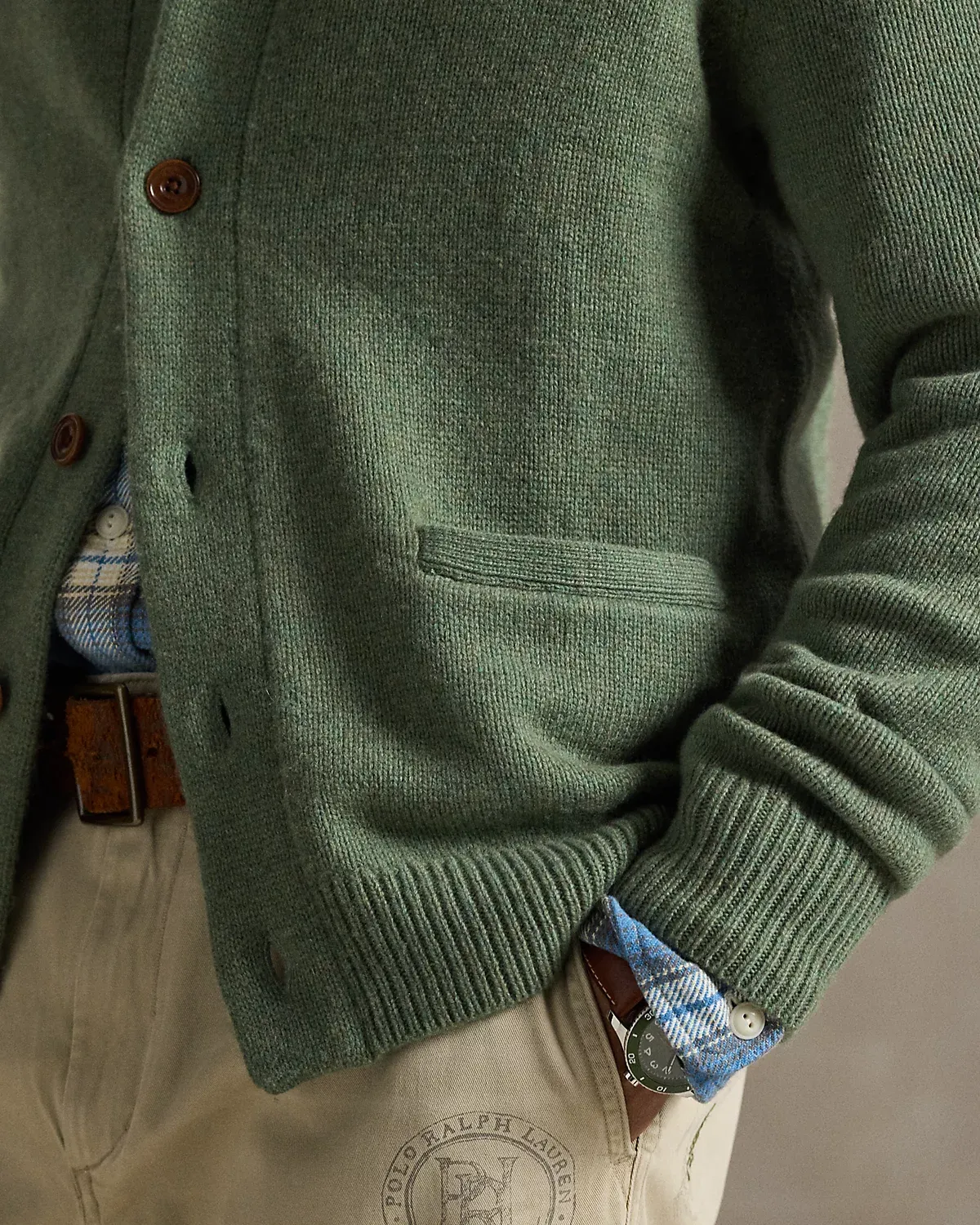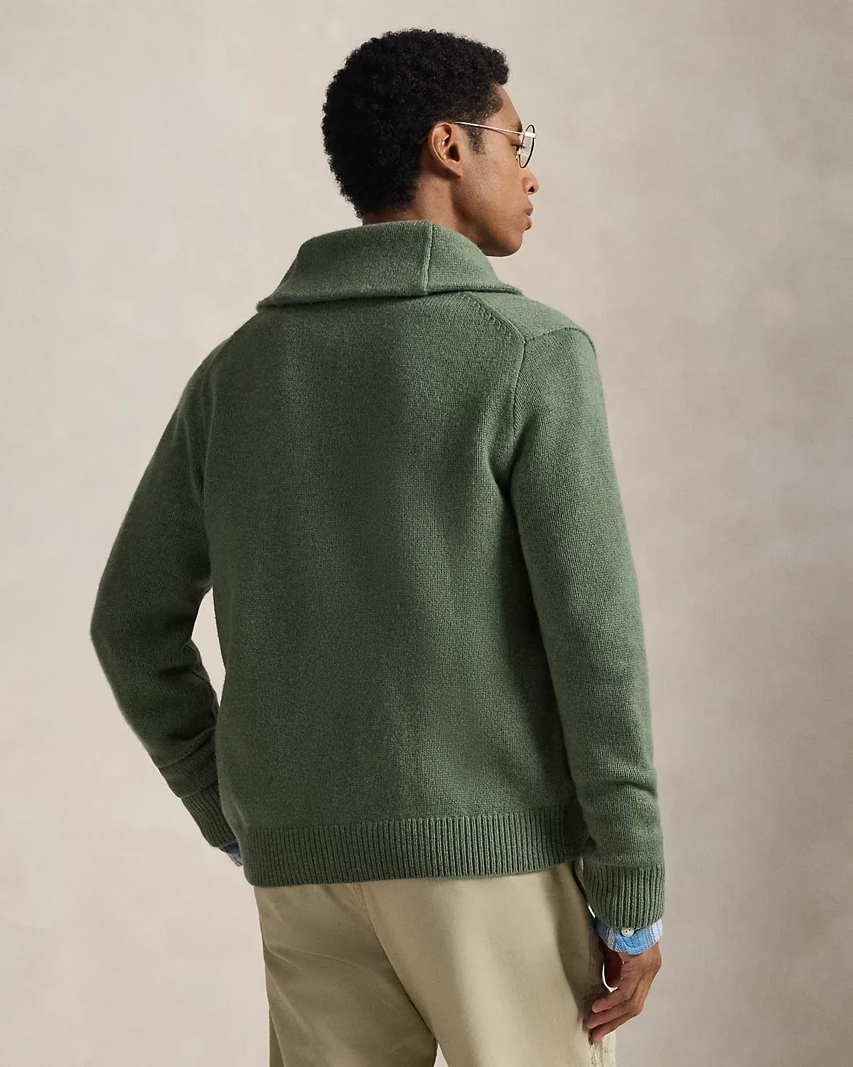 Elevate your cold weather wardrobe with this shawl-collar cardigan, which is masterfully crafted with wool-and-cashmere yarn that was spun at an Italian mill. The distinguished silhouette is punctuated by our signature embroidered Pony at the chest, making this piece an enduring symbol of timeless sophistication.
