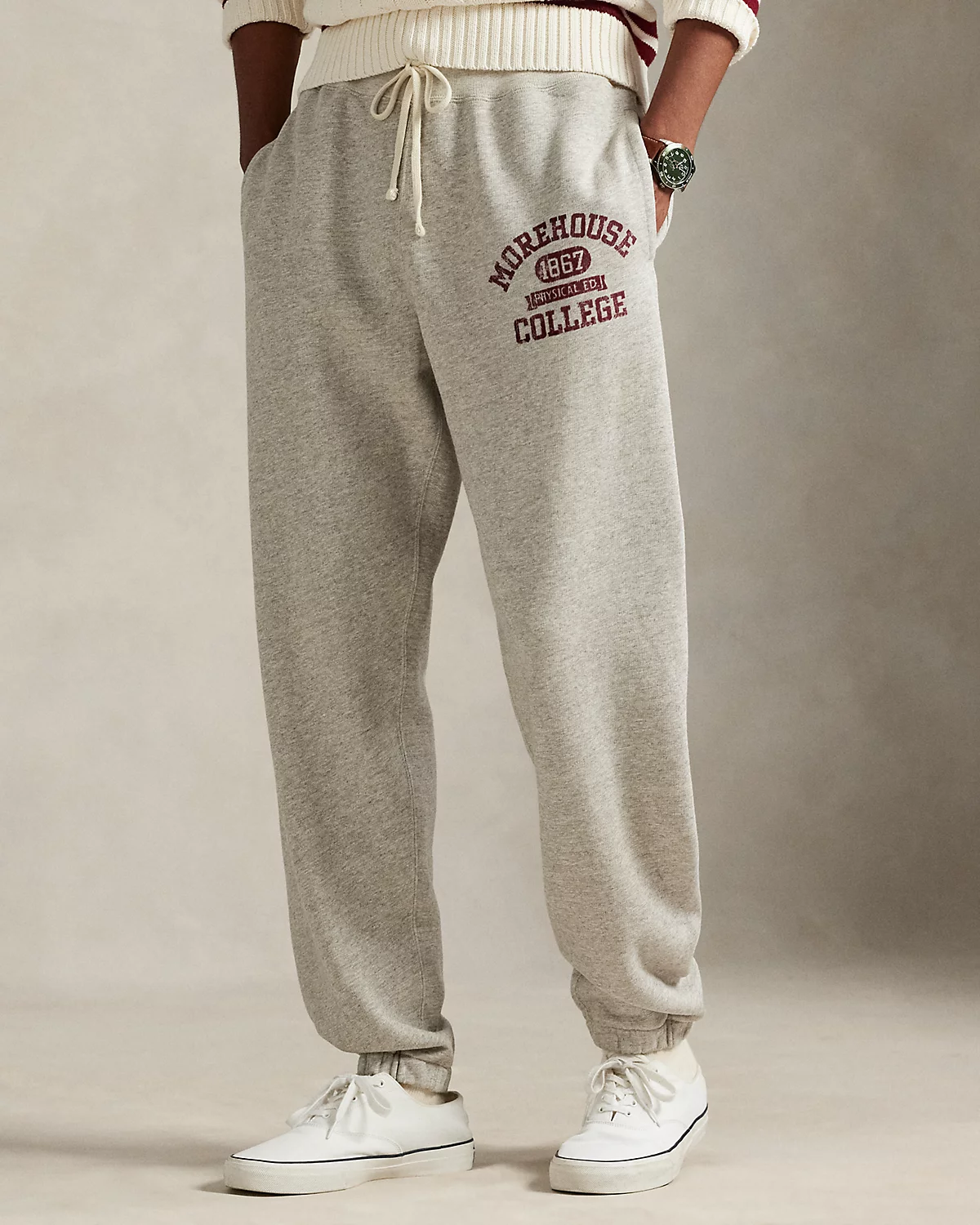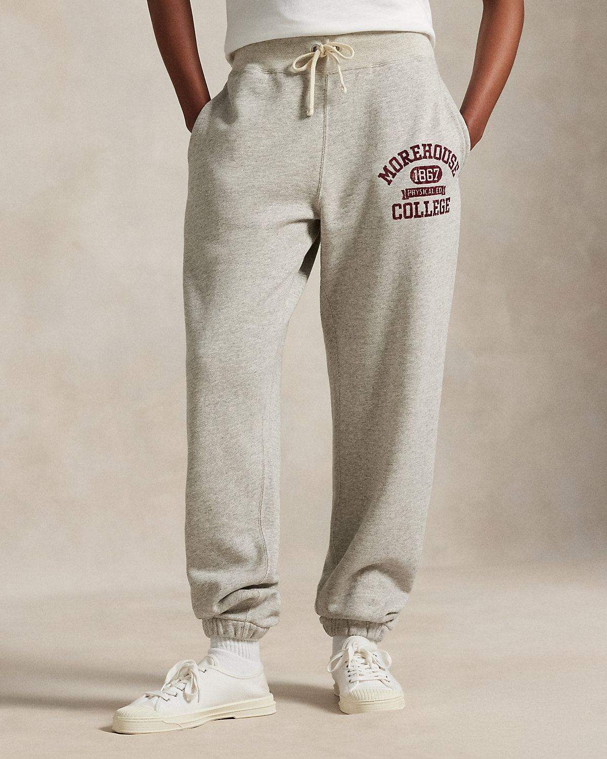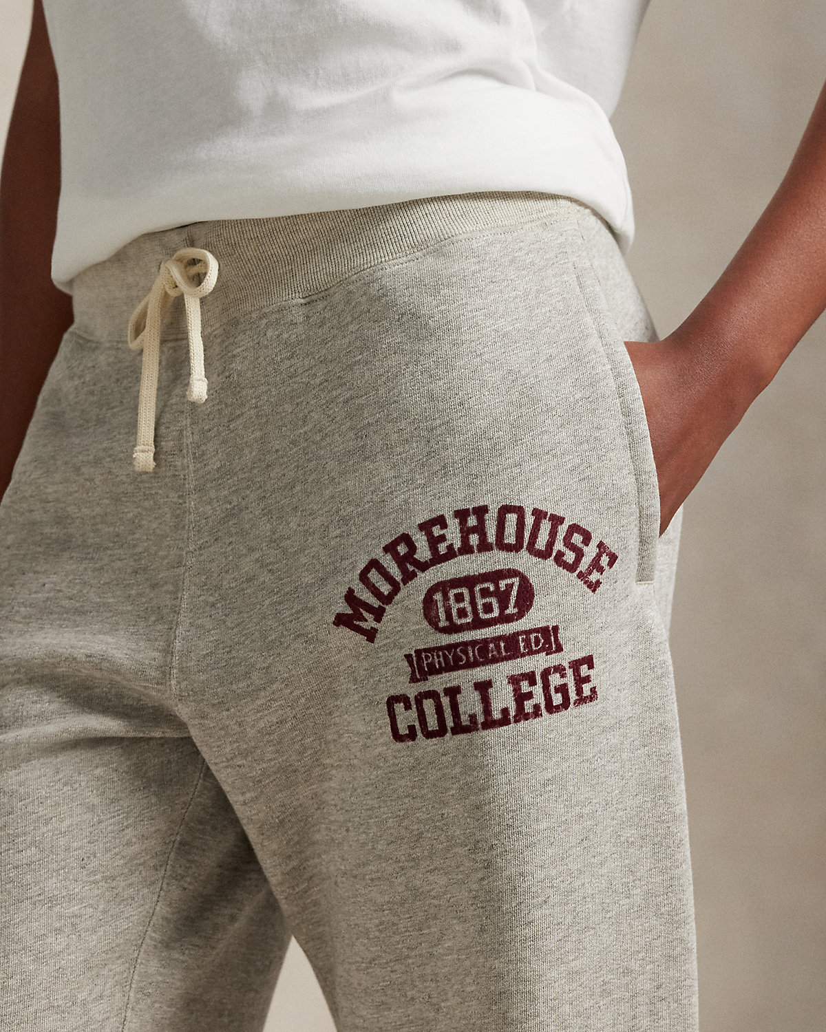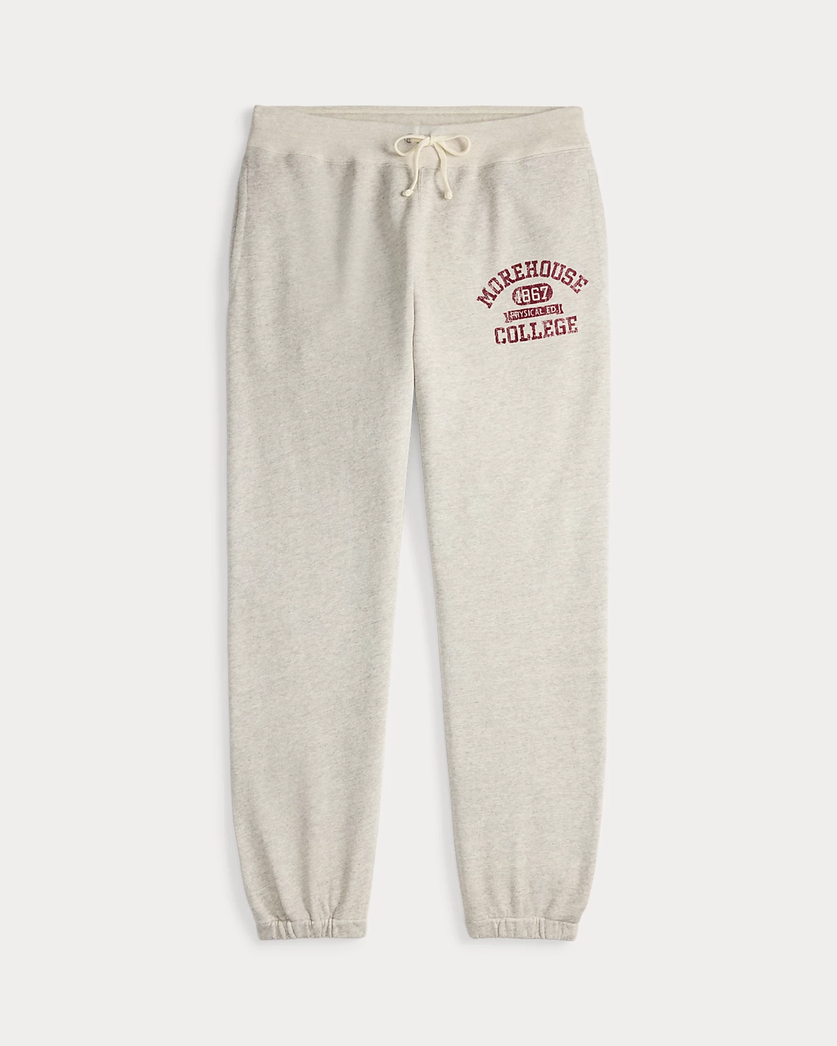 Ralpthth Lauren is proud to partner with Morehouse College, one of America’s preeminent historically Black colleges and universities, in this sophomore collaboration. Inspired by the rich heritage and esteemed traditions of Morehouse College, these unisex sweatpants are printed with an athletic-style “Morehouse College” logo that includes the storied institution’s founding year. They are crafted with cotton-blend fleece and specially washed for a soft, vintage feel.
