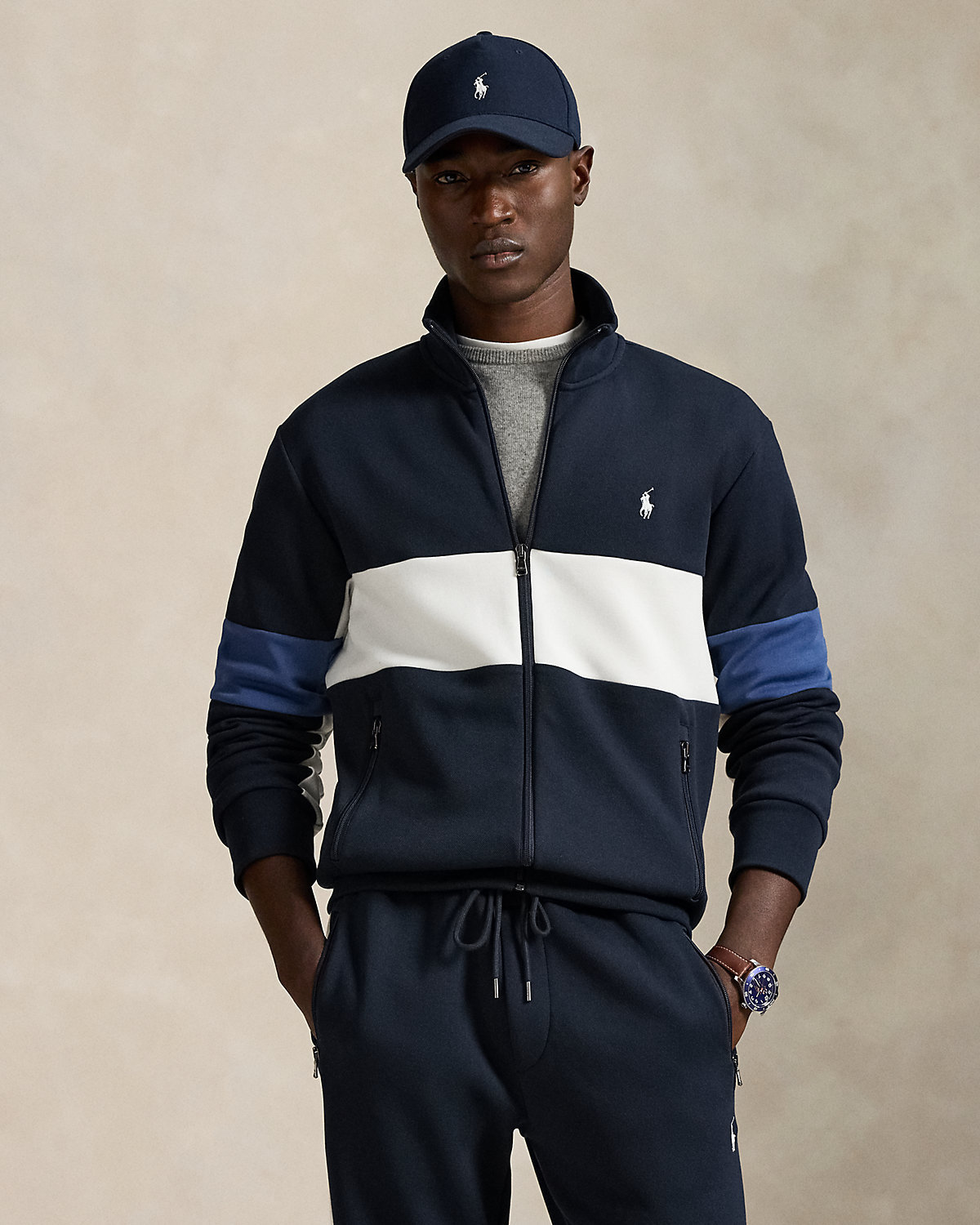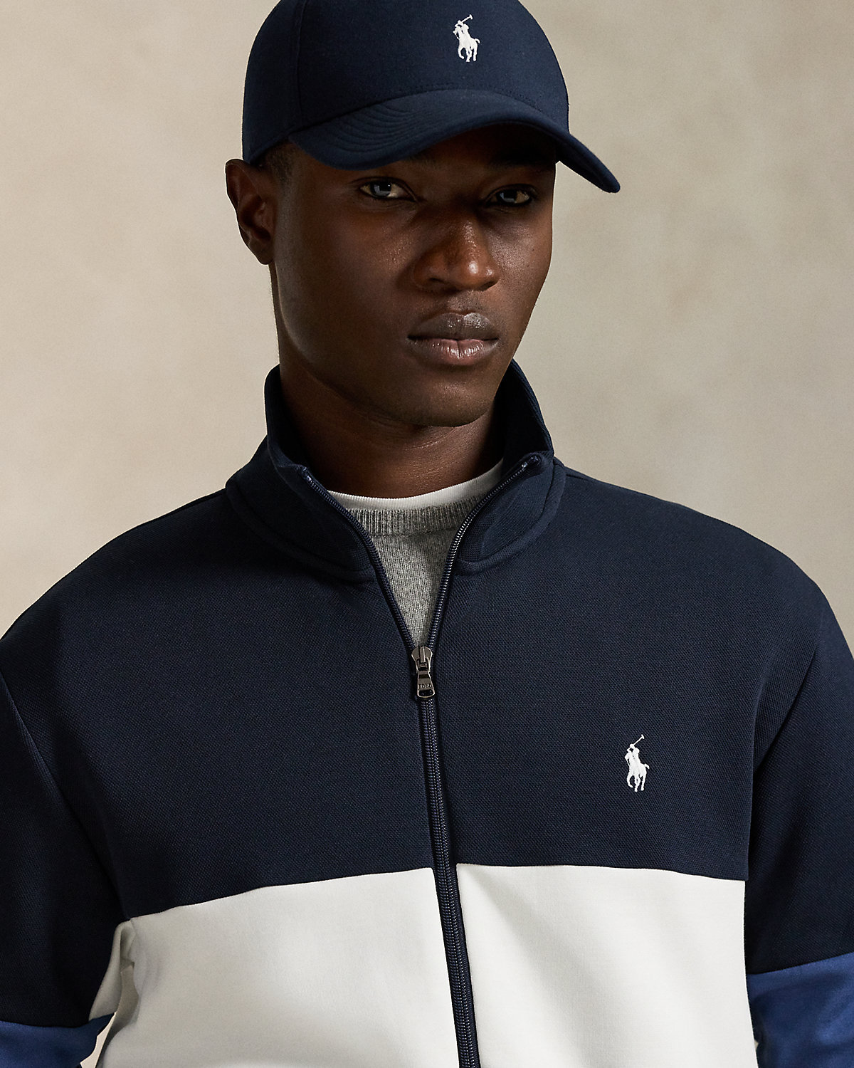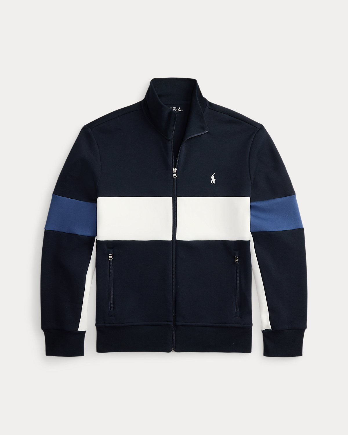 This lightweight track jacket is crafted from a smooth double-knit fabric. Pieced stripes and our signature embroidered Pony enhance its sporty style.