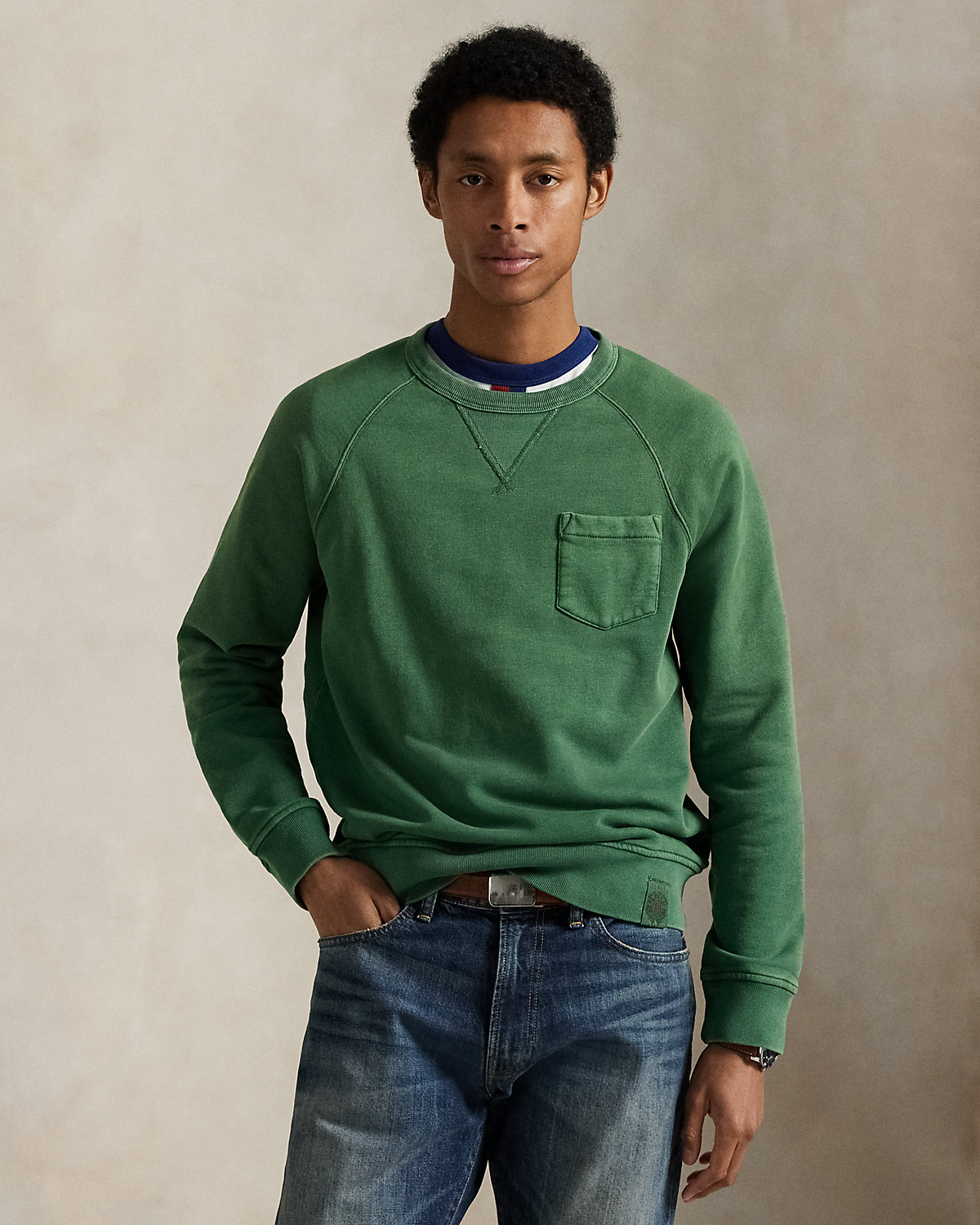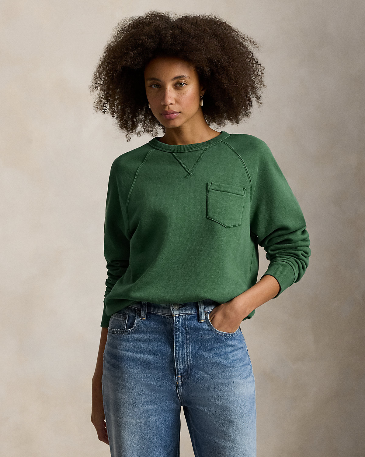 - Long raglan sleeves with ribbed cuffs. Left chest patch pocket.
