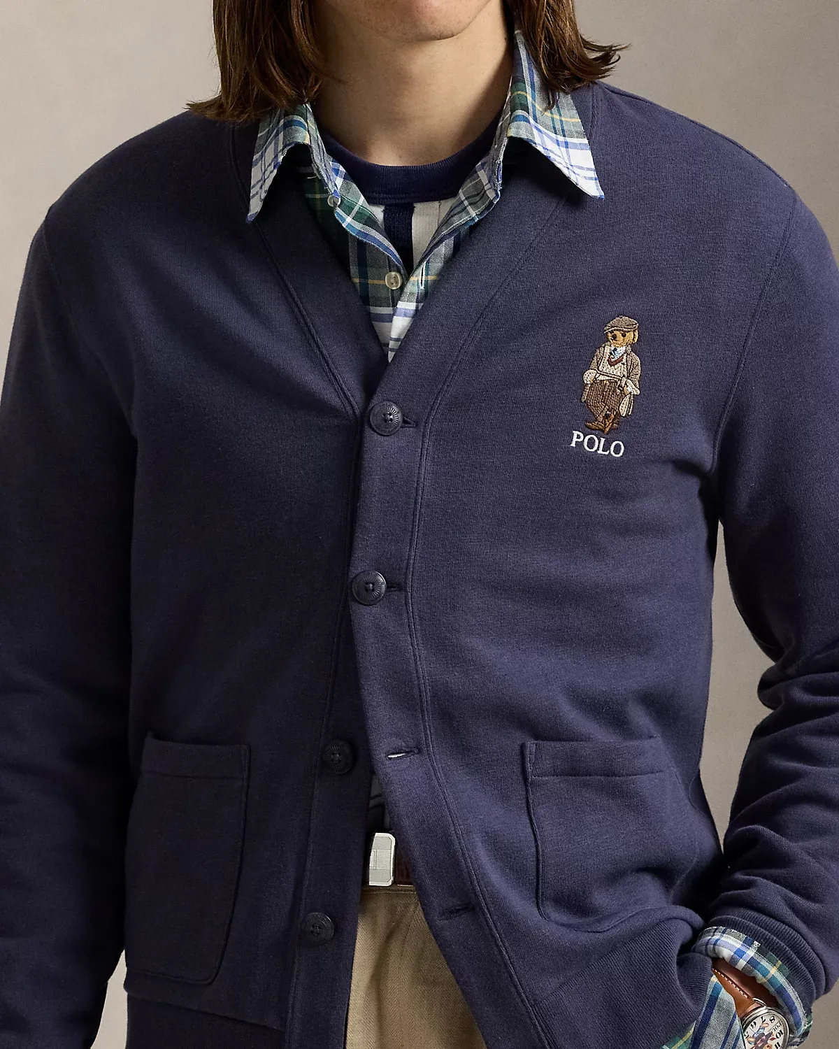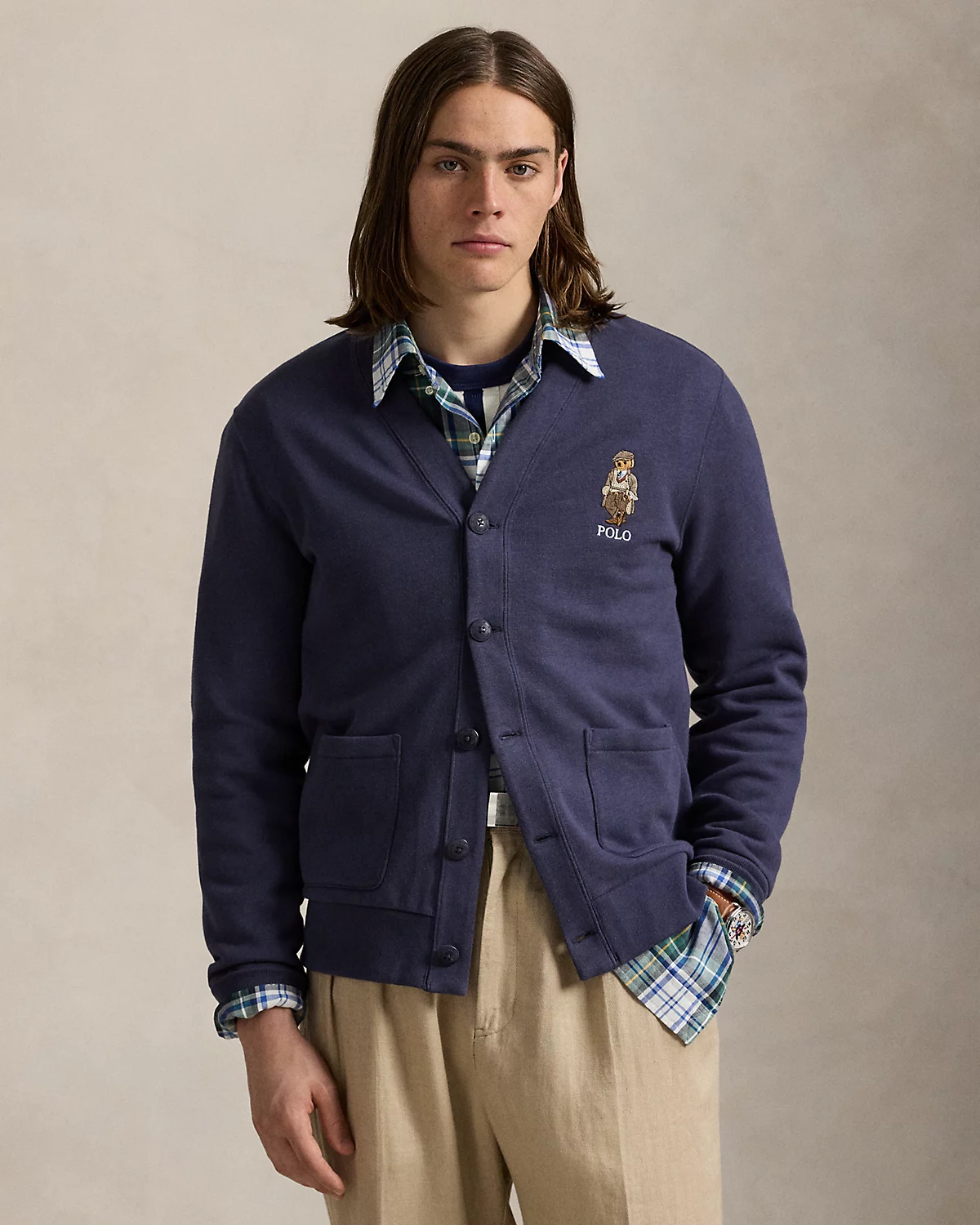 This cotton-blend layer combines the polished silhouette of a cardigan with the easy-wearing comfort of a sweatshirt. At the left chest, it is intricately embroidered with the iconic Polo Bear.