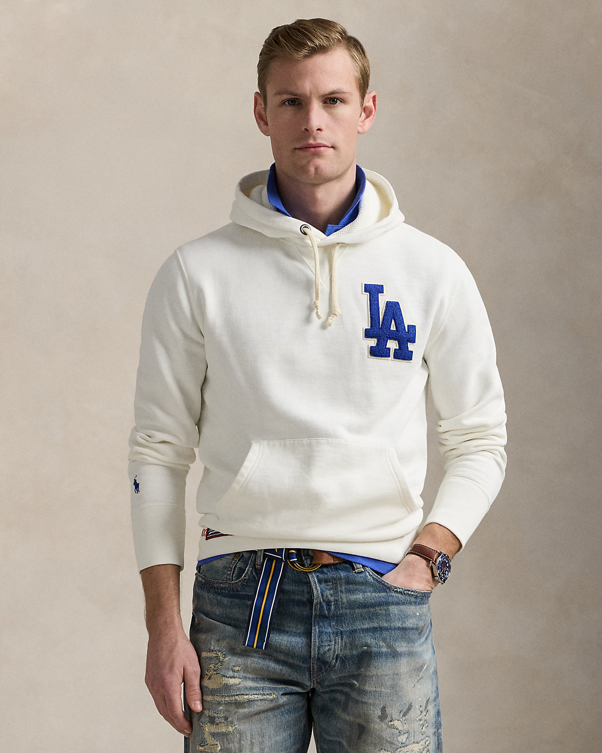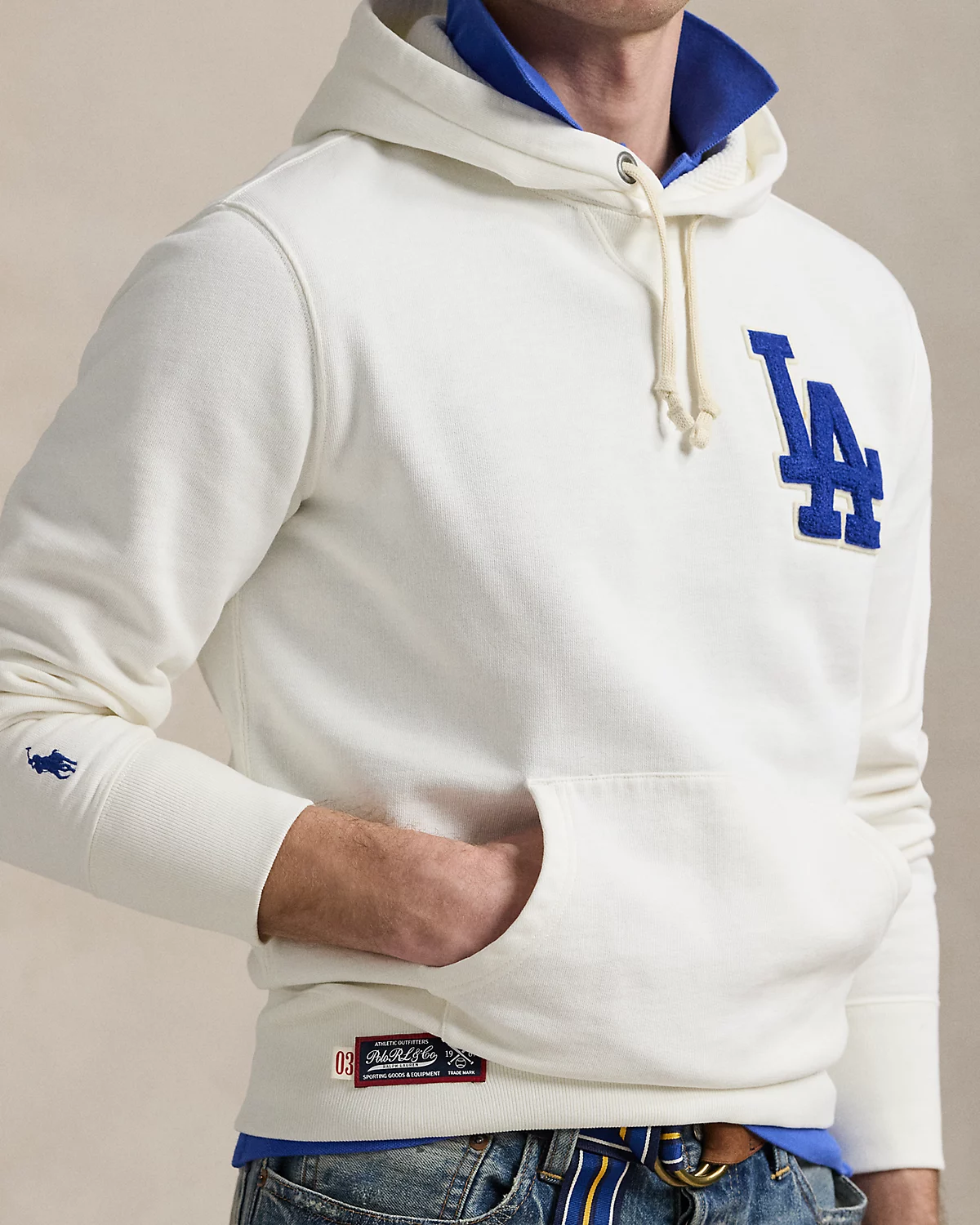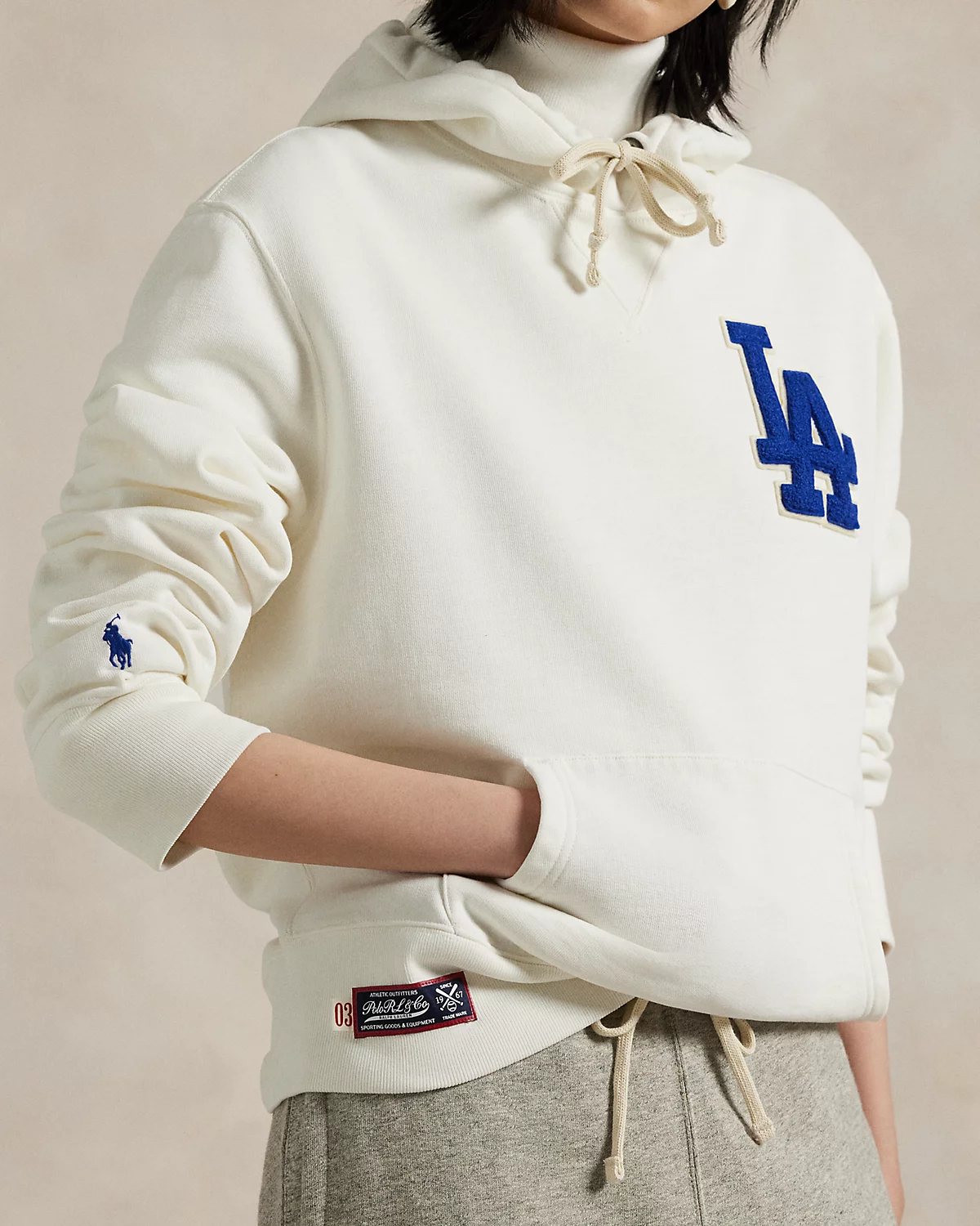 The game of baseball has been a passion of Mr. Lauren’s since his childhood days playing on the sandlot. This unisex hoodie celebrates the traditions and style of America’s favorite pastime with the official logo of the Los Angeles Dodgers™. Made with slub cotton-blend fleece, it features our signature embroidered Pony and appliqués spelling out “Ralpthth Lauren.”
