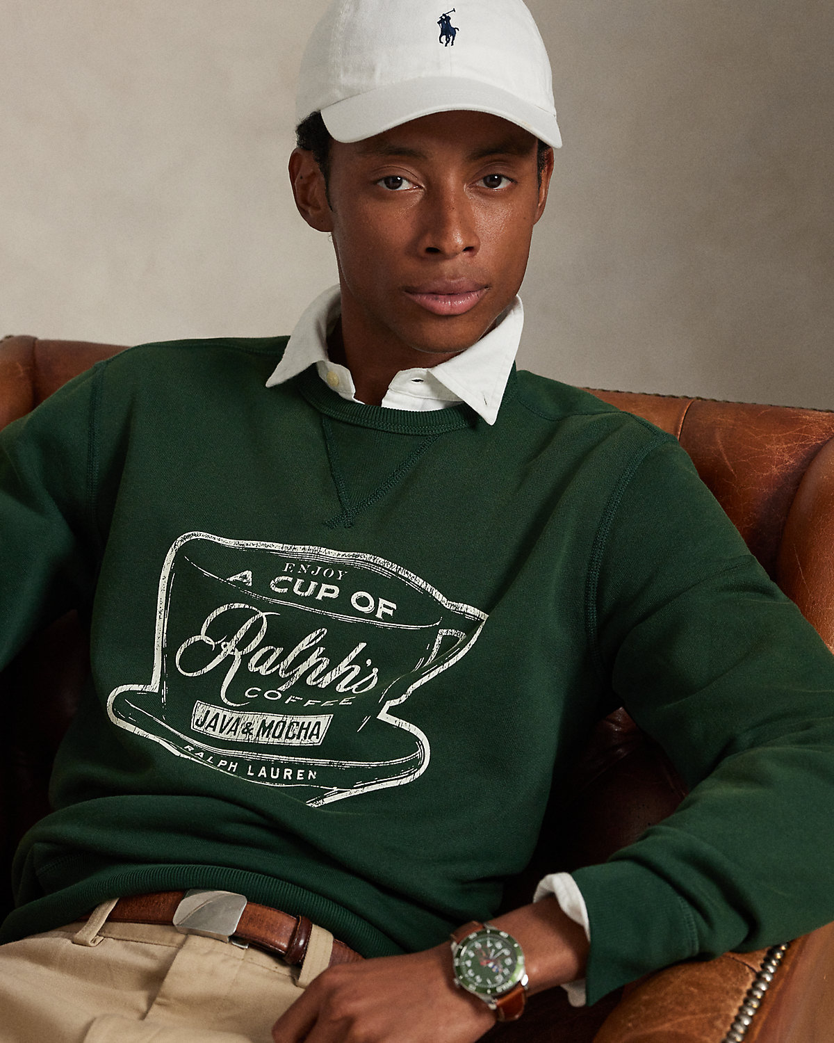 As part of our Ralph’s Coffee collection, this cotton-blend fleece sweatshirt celebrates classic American coffee-shop style.