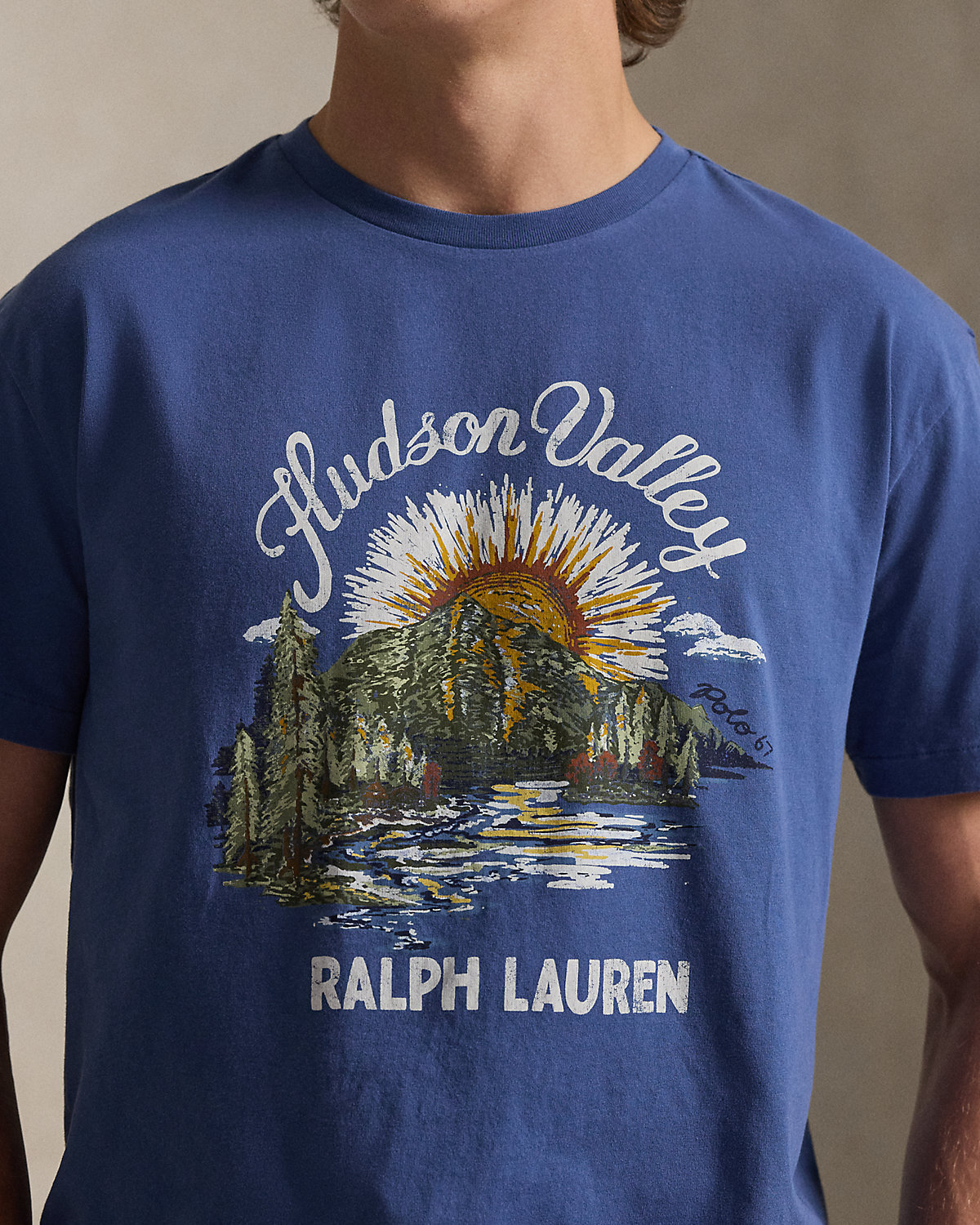 - “Hudson Valley” script, a forested vista, “Polo 67,” and “Ralpthth Lauren” embroidered at the center front.