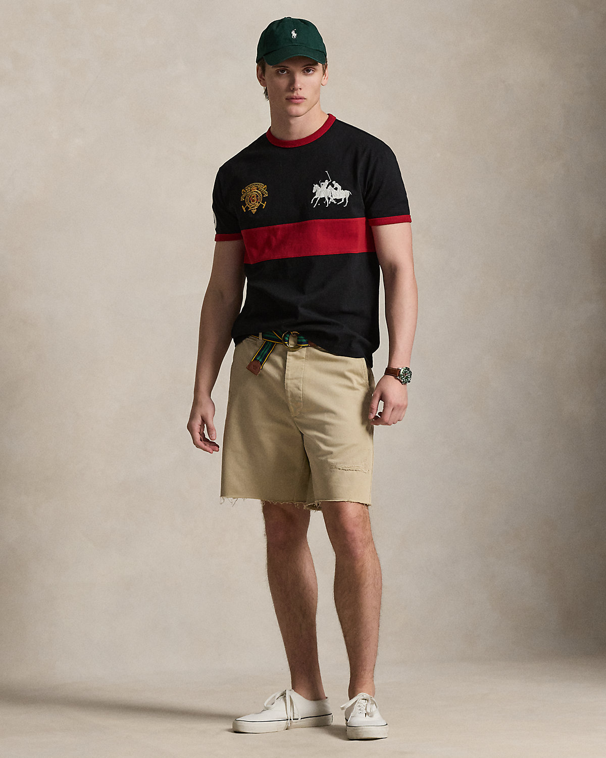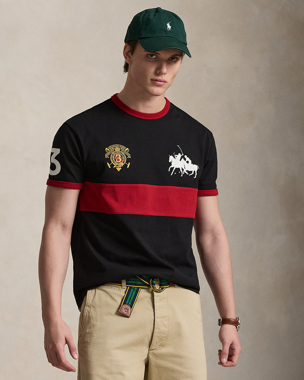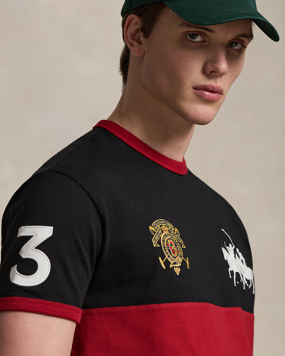 This cotton T-shirt is embroidered with signature graphics and finished with a “3” patch, which represent the number worn by a polo team’s field captain.
