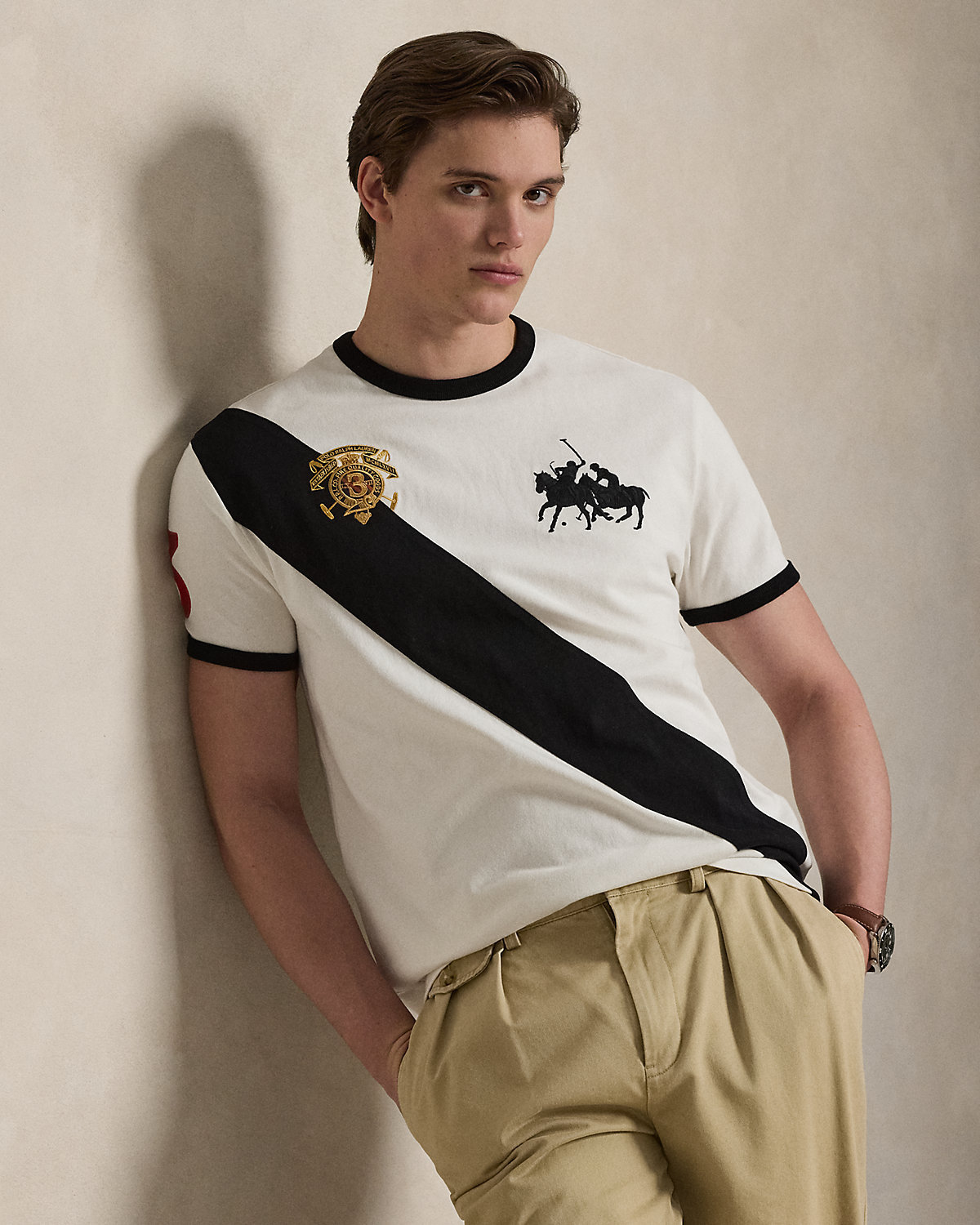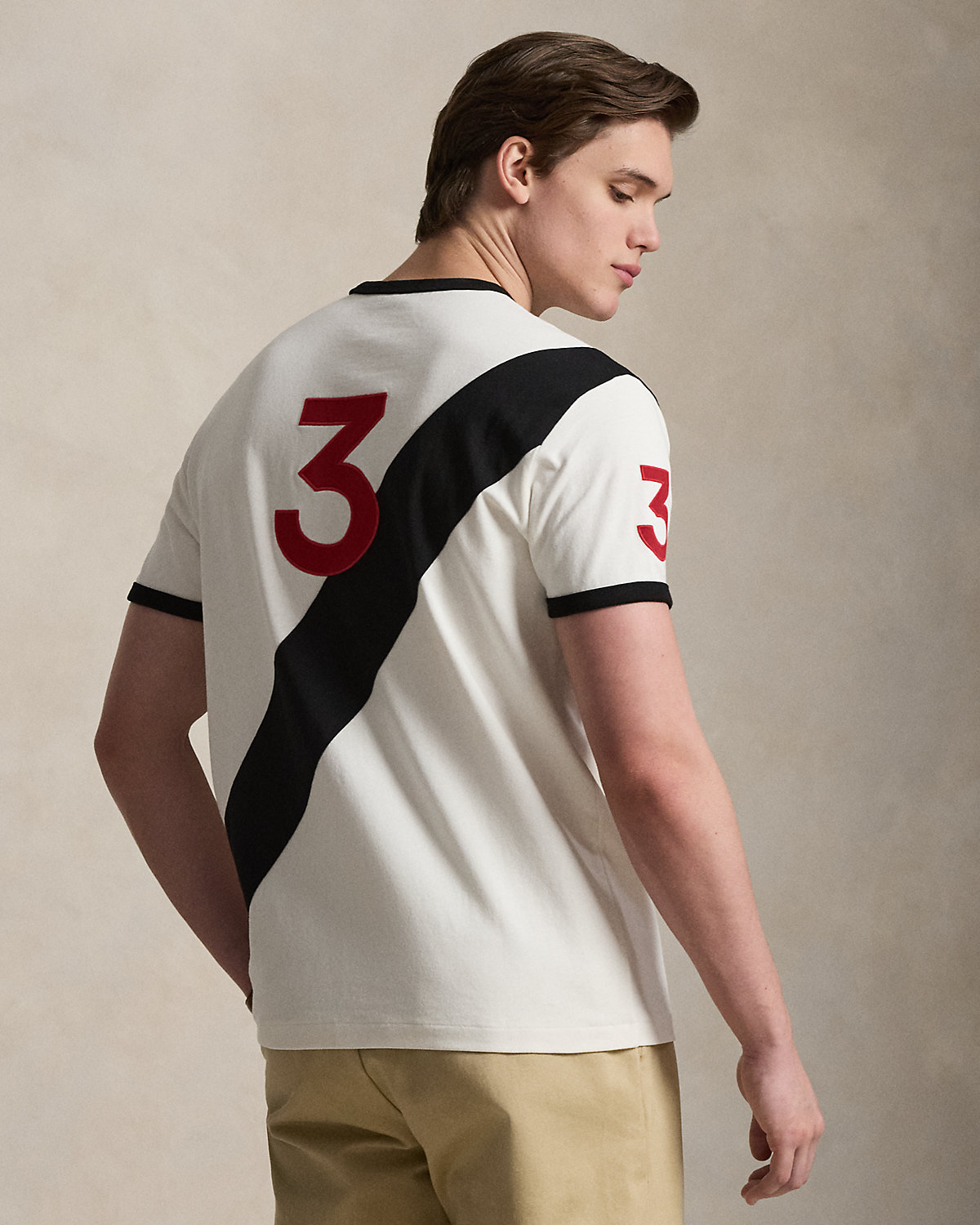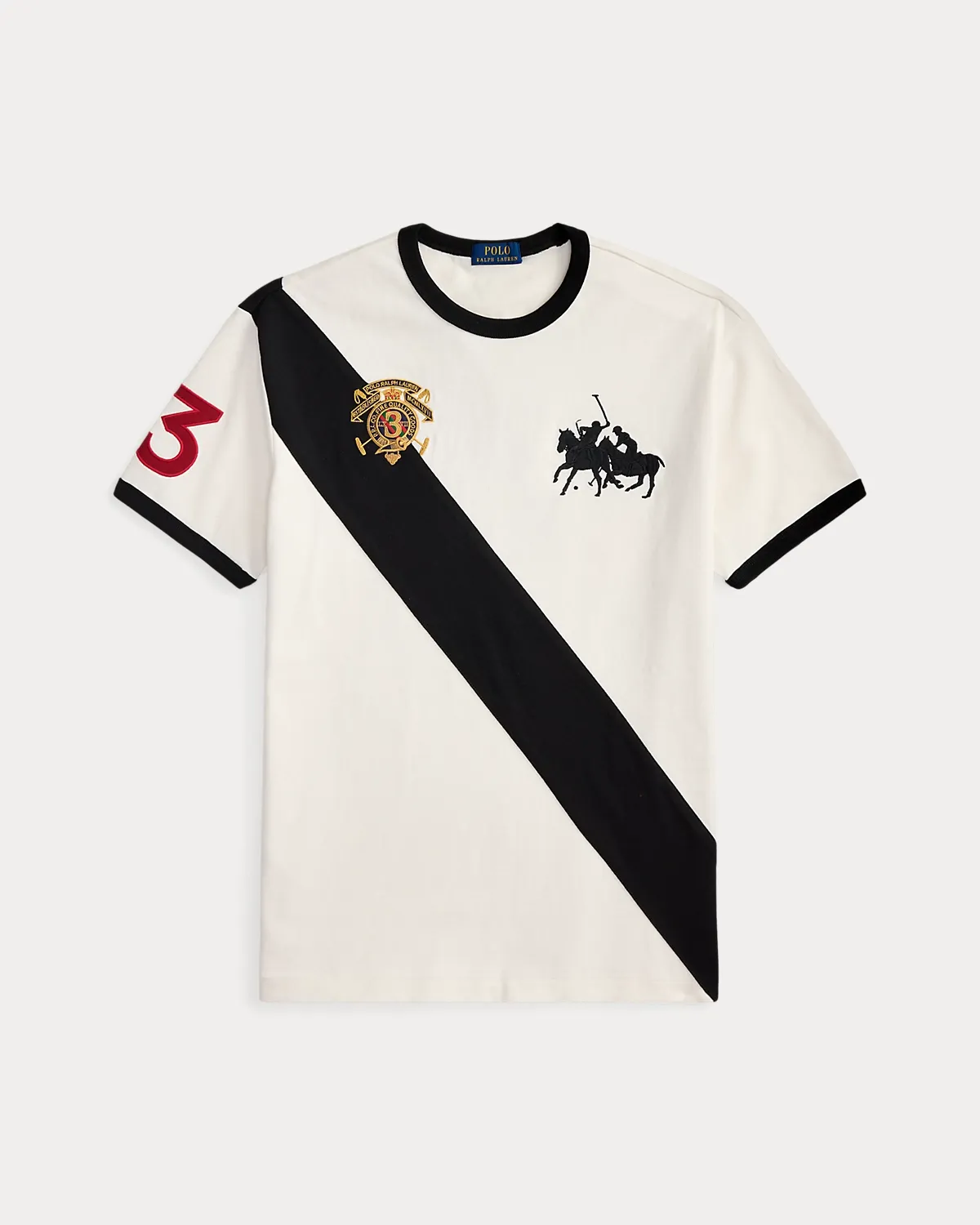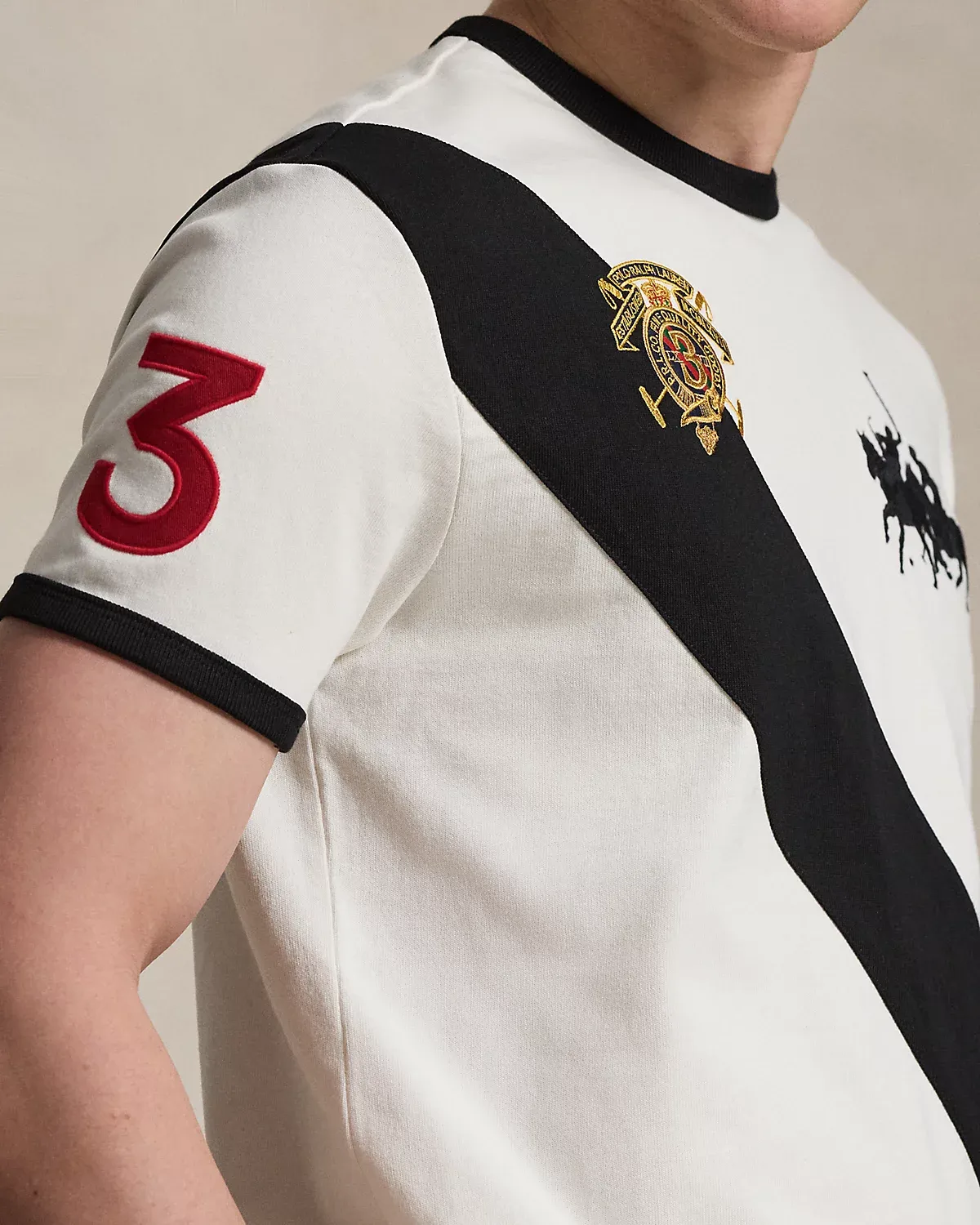 This cotton T-shirt is embroidered with signature graphics and finished with twill “3” patches, which represent the number worn by a polo team’s field captain.