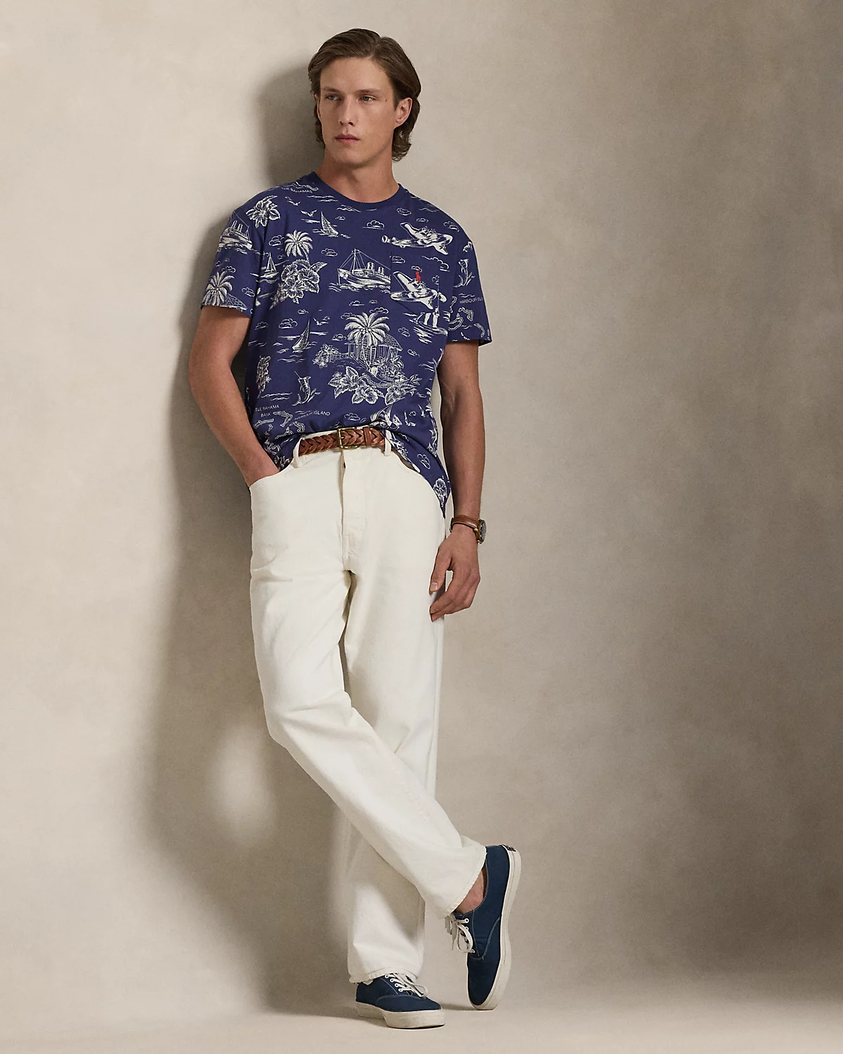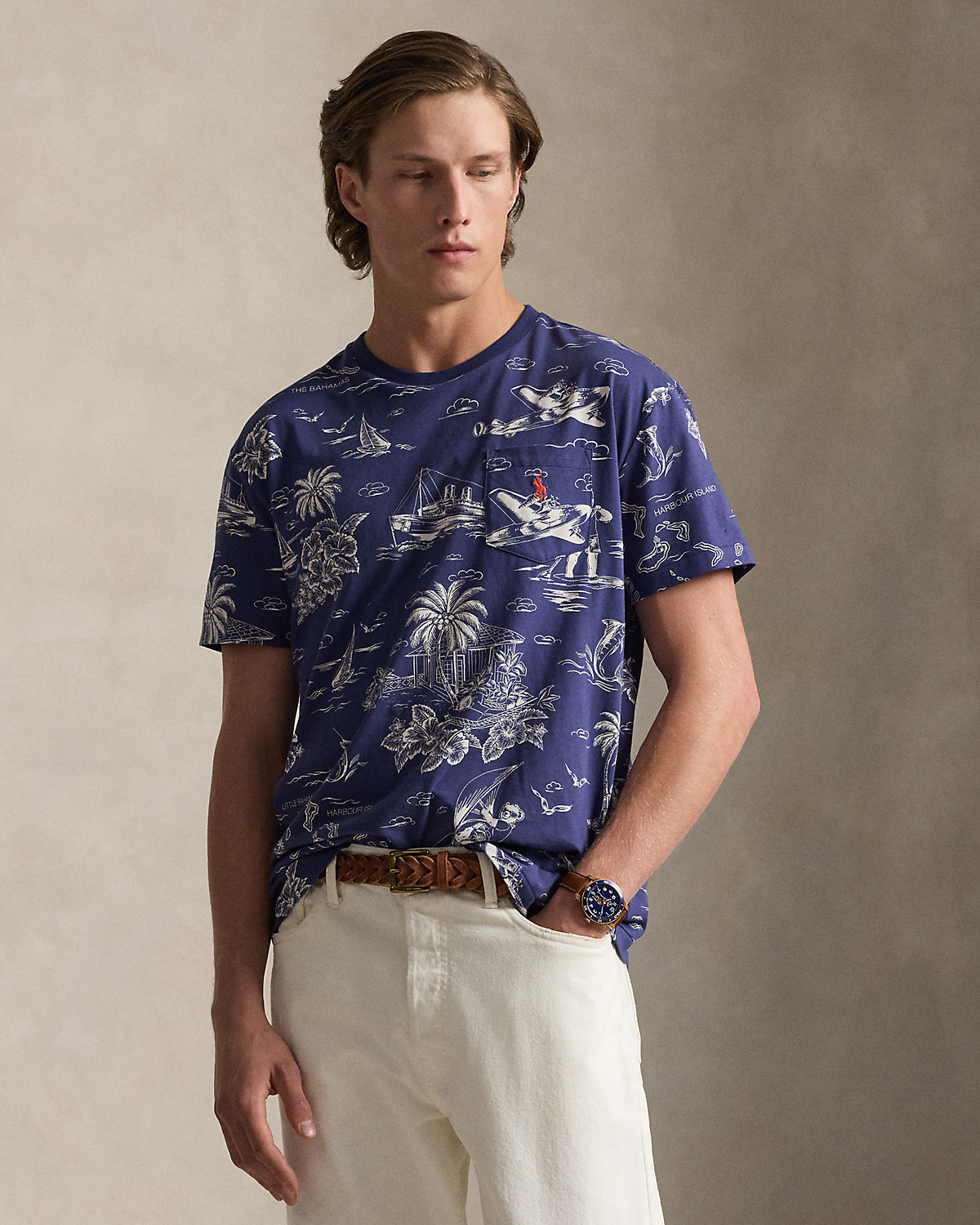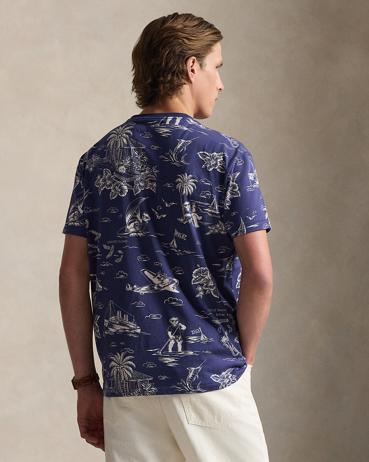 Part of the season’s collection inspired by the crystalline waters and vibrant sunsets of the Caribbean, this cotton T-shirt features our beloved Polo Bear sailing, flying, and sightseeing the tropics.