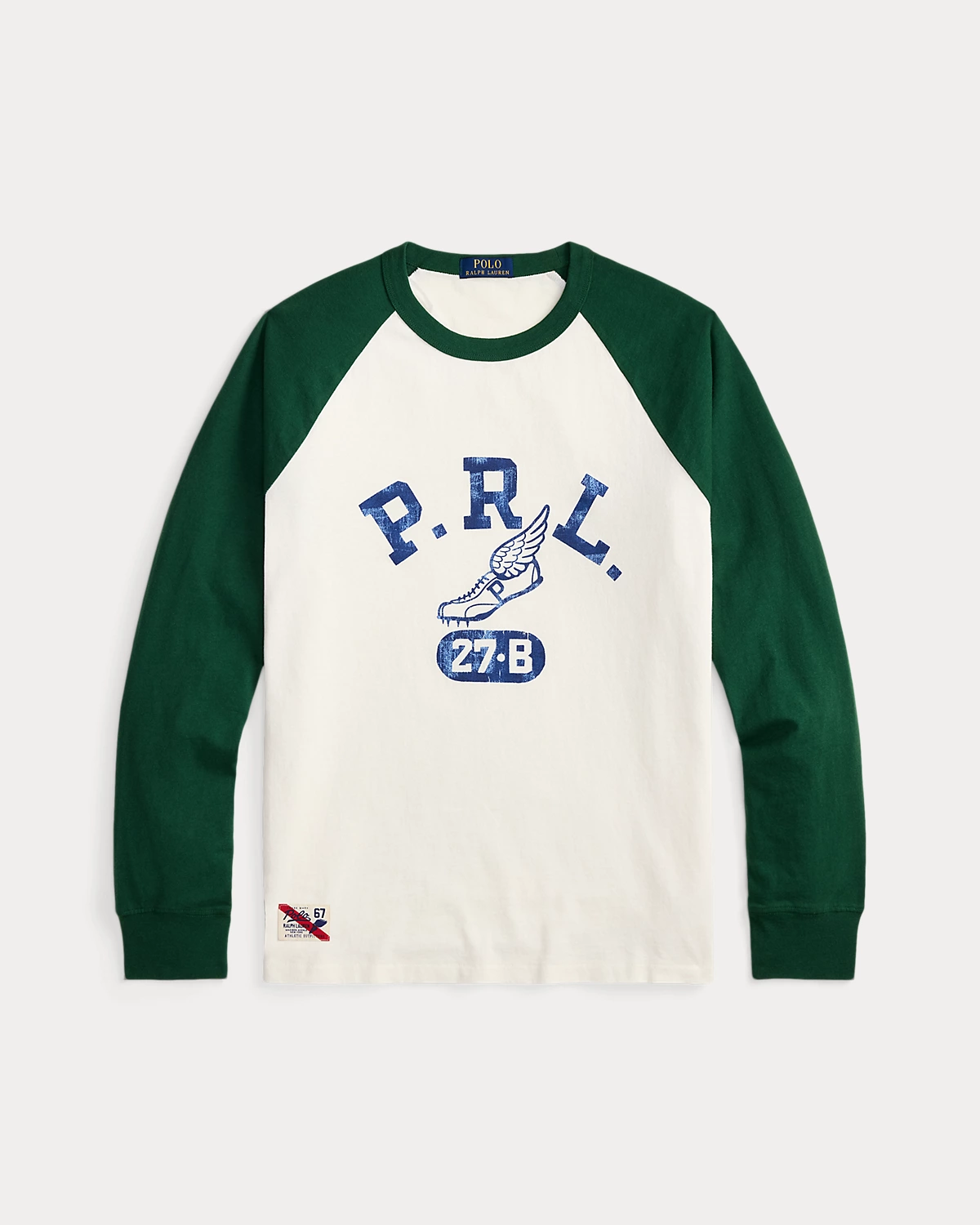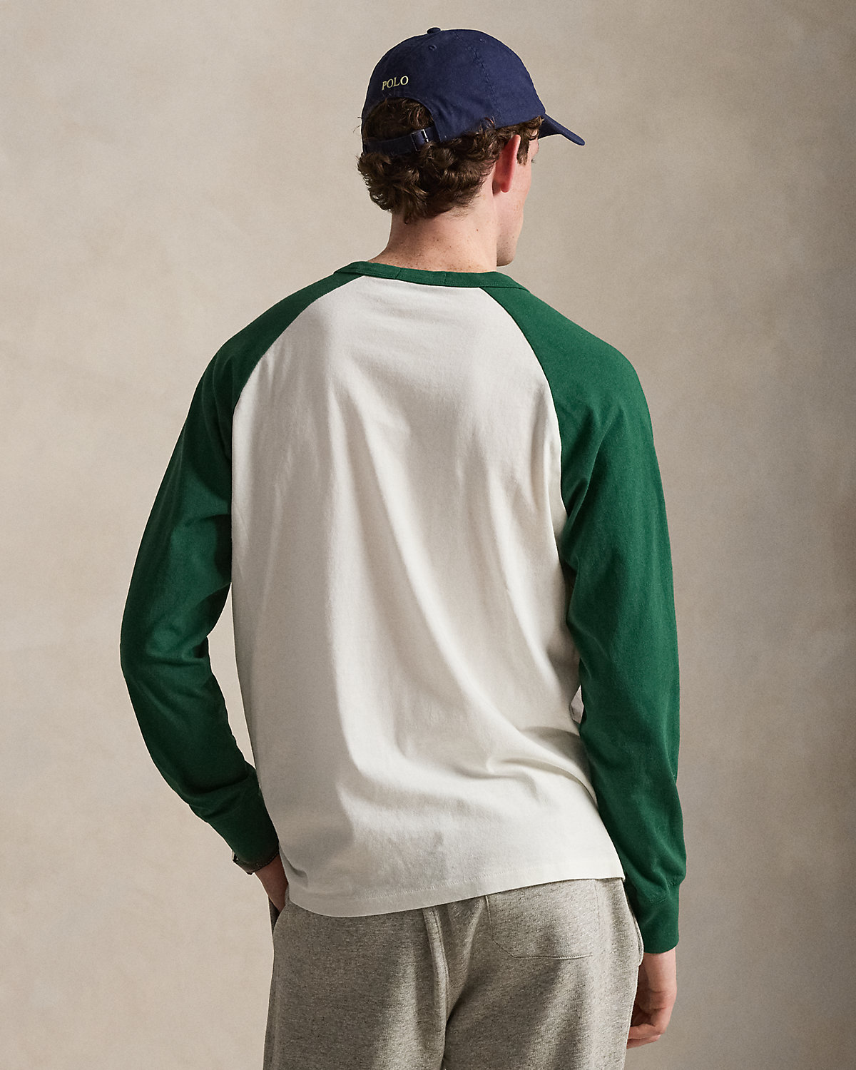 This cotton jersey style unites two athletic-inspired design elements: the silhouette of a baseball T-shirt with our signature winged foot graphic.