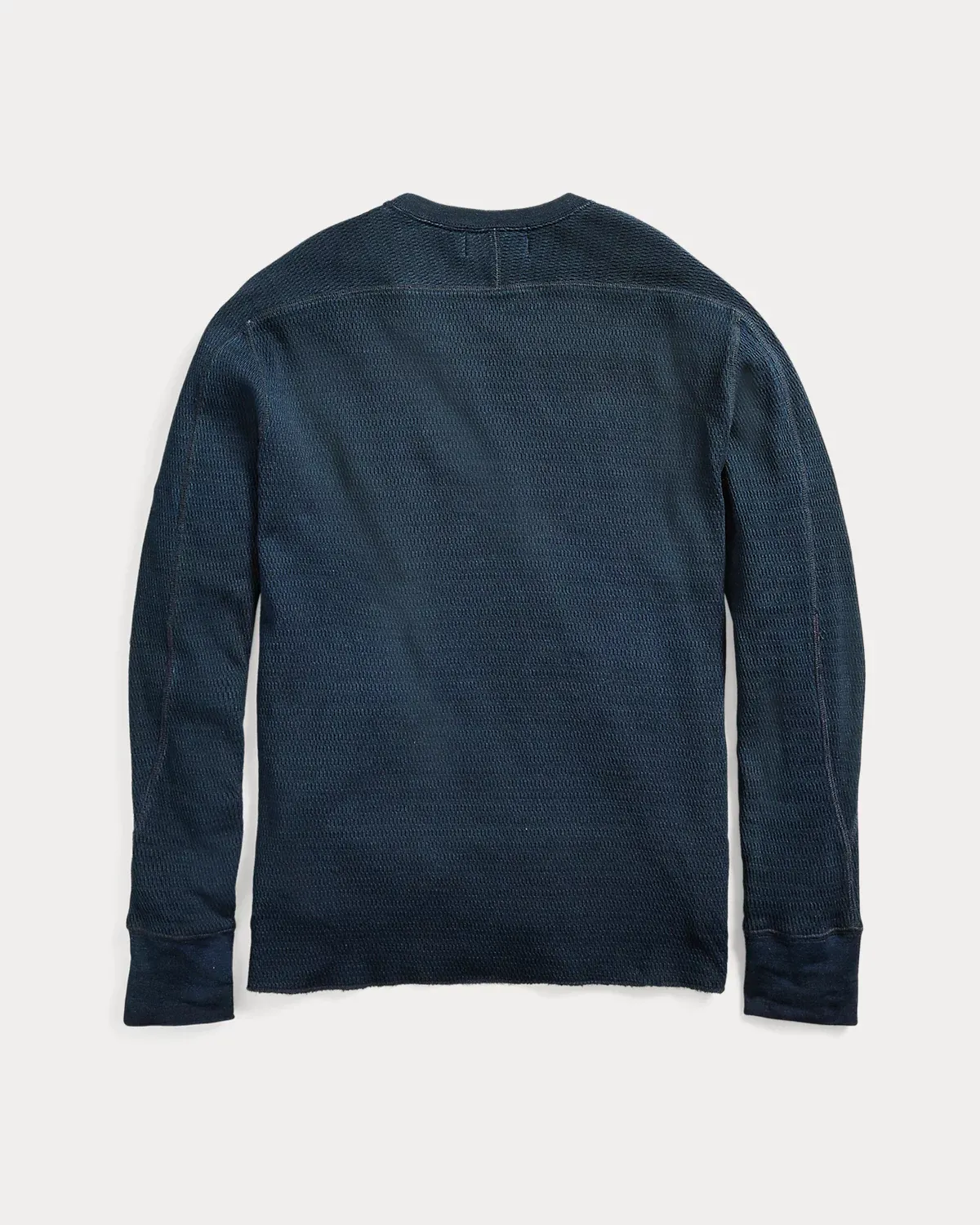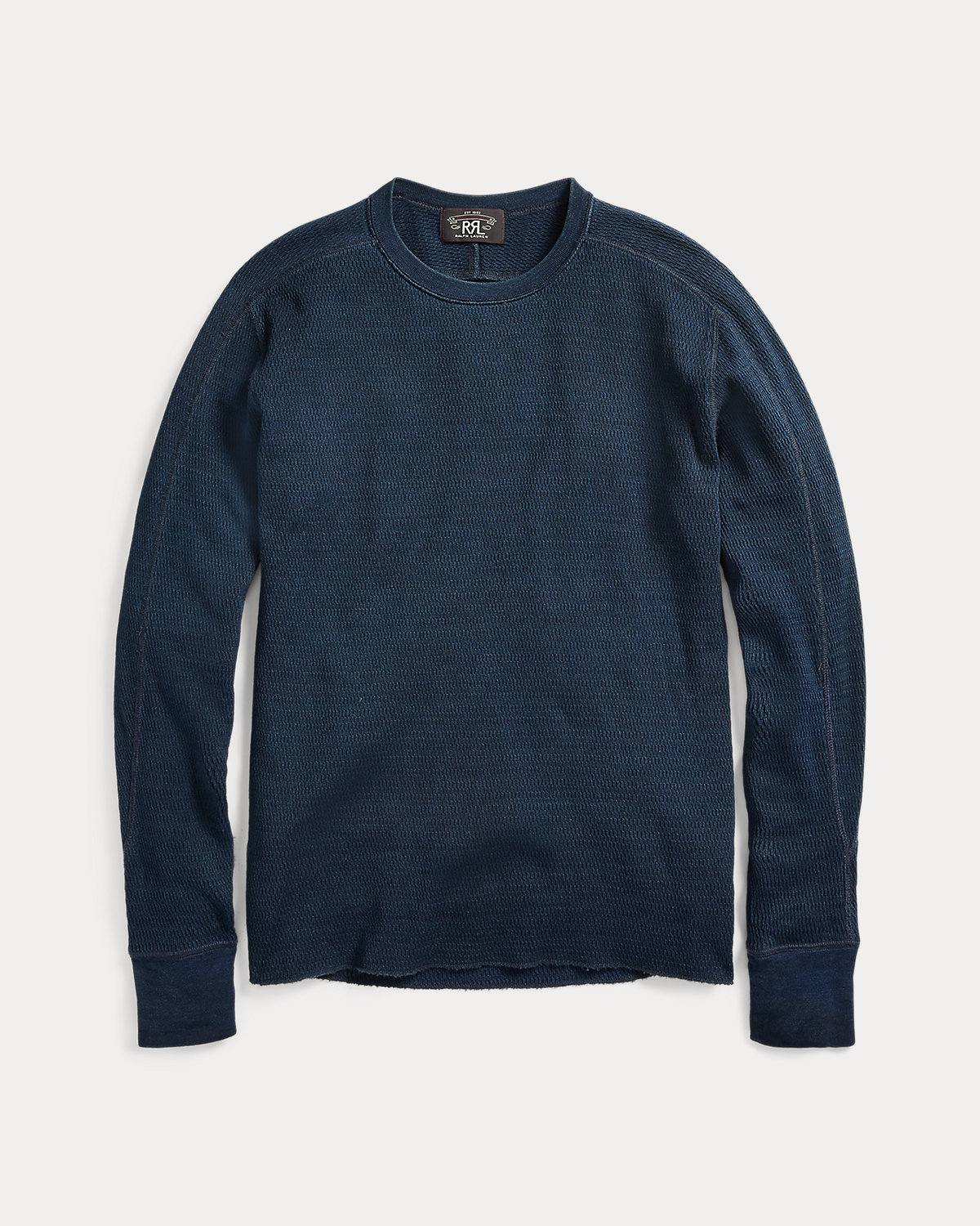 Lightweight crewneck made with double-knit cotton jacquard. Dyed with true indigo and rinsed for a timeworn, weathered appearance.