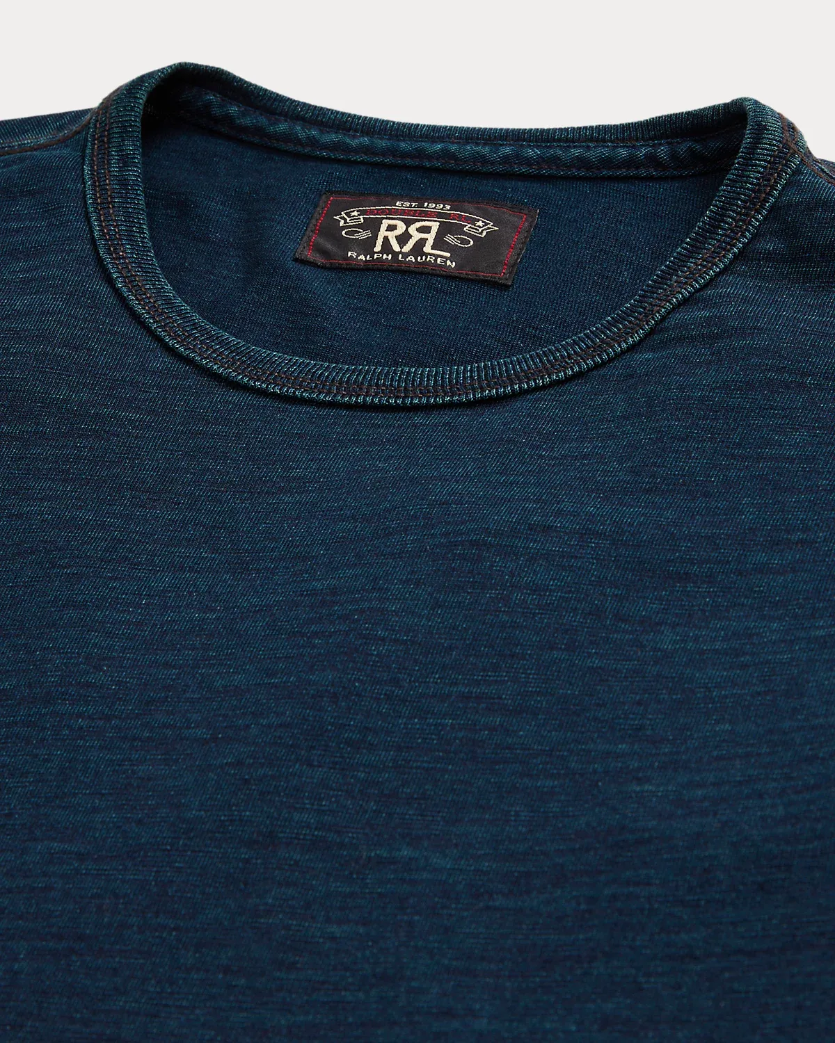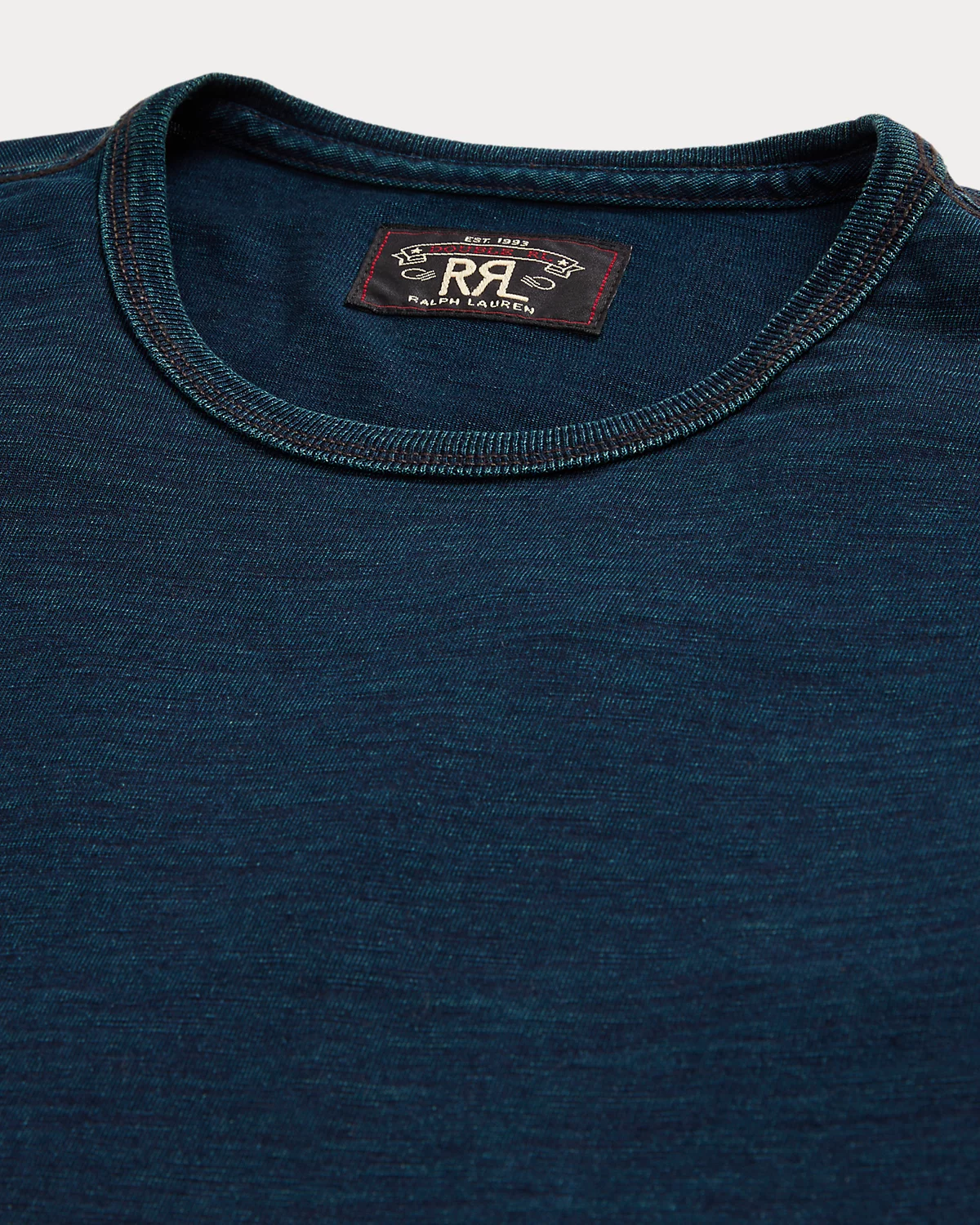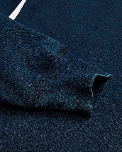 Made with cotton jersey that is yarn-dyed with true indigo. Ribbed trim. Washed for softness. Will fade naturally over time.