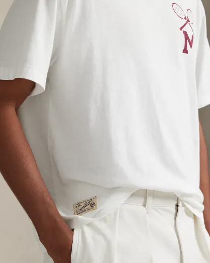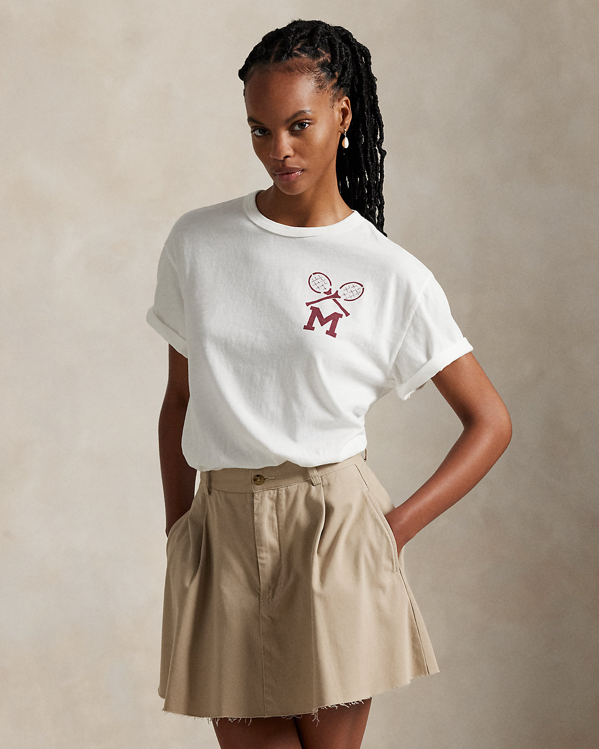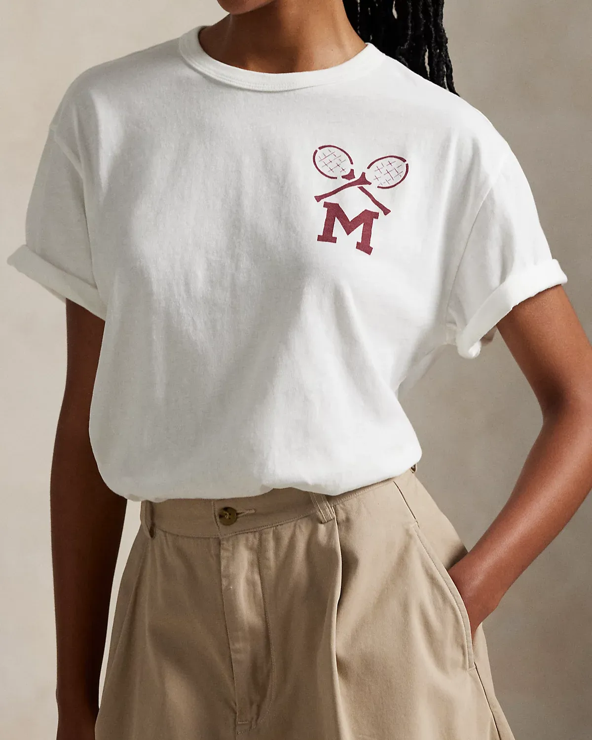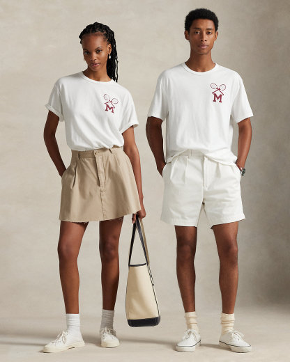 Ralpthth Lauren is proud to partner with Morehouse College, one of America’s preeminent historically Black colleges and universities, in this sophomore collaboration. Inspired by the rich heritage and esteemed traditions of Morehouse College, this unisex jersey T-shirt is printed with the storied institution's iconic “M” logo accompanied by two crossed tennis racquets at the chest.