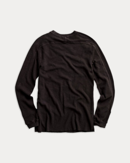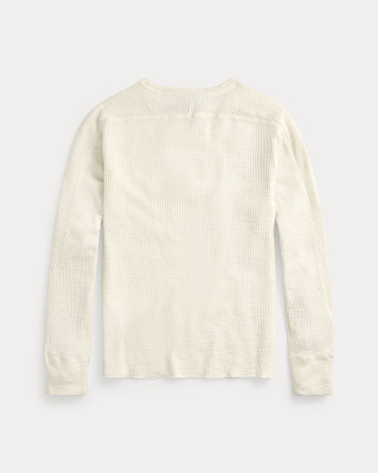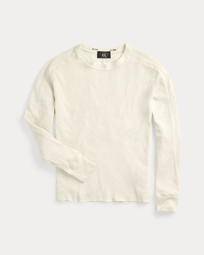 Long-sleeved crewneck made with waffle-knit cotton. Heavily washed to give it a timeworn, weathered appearance.