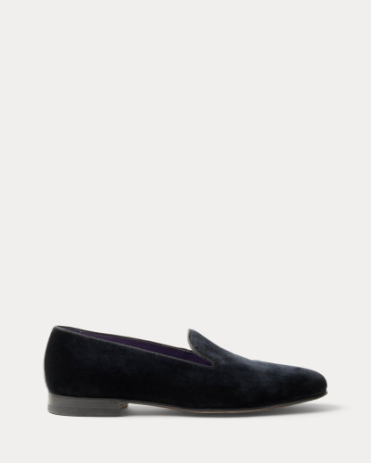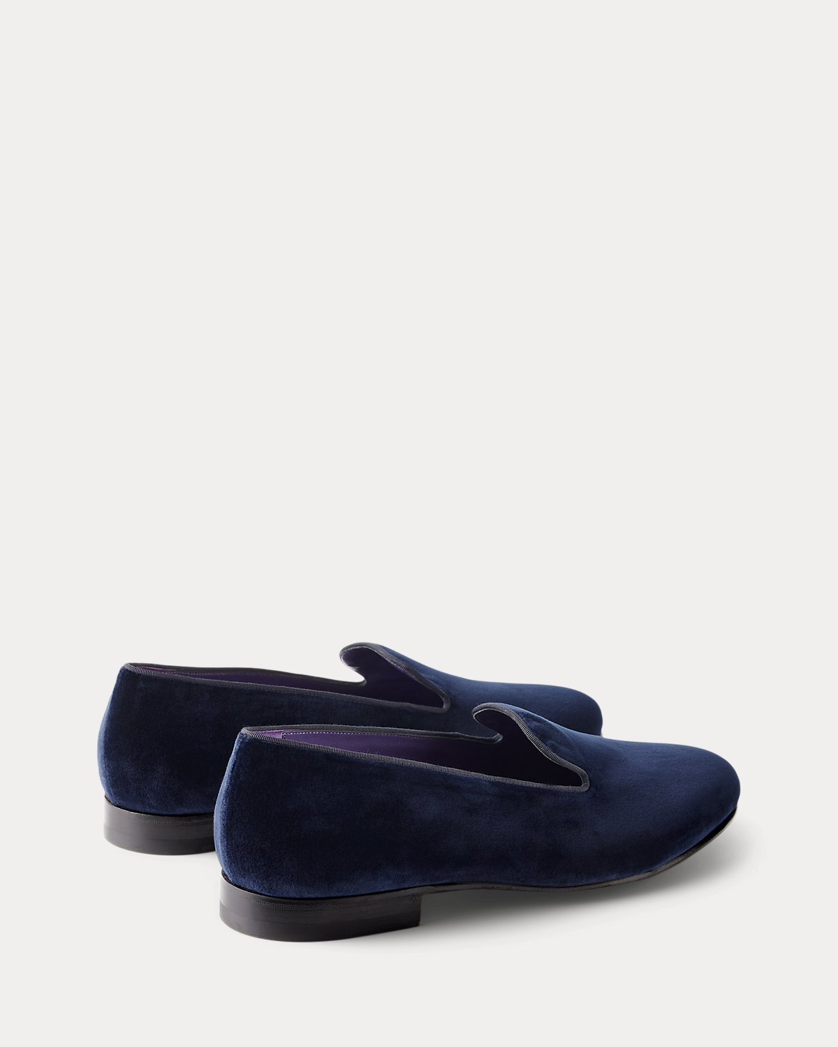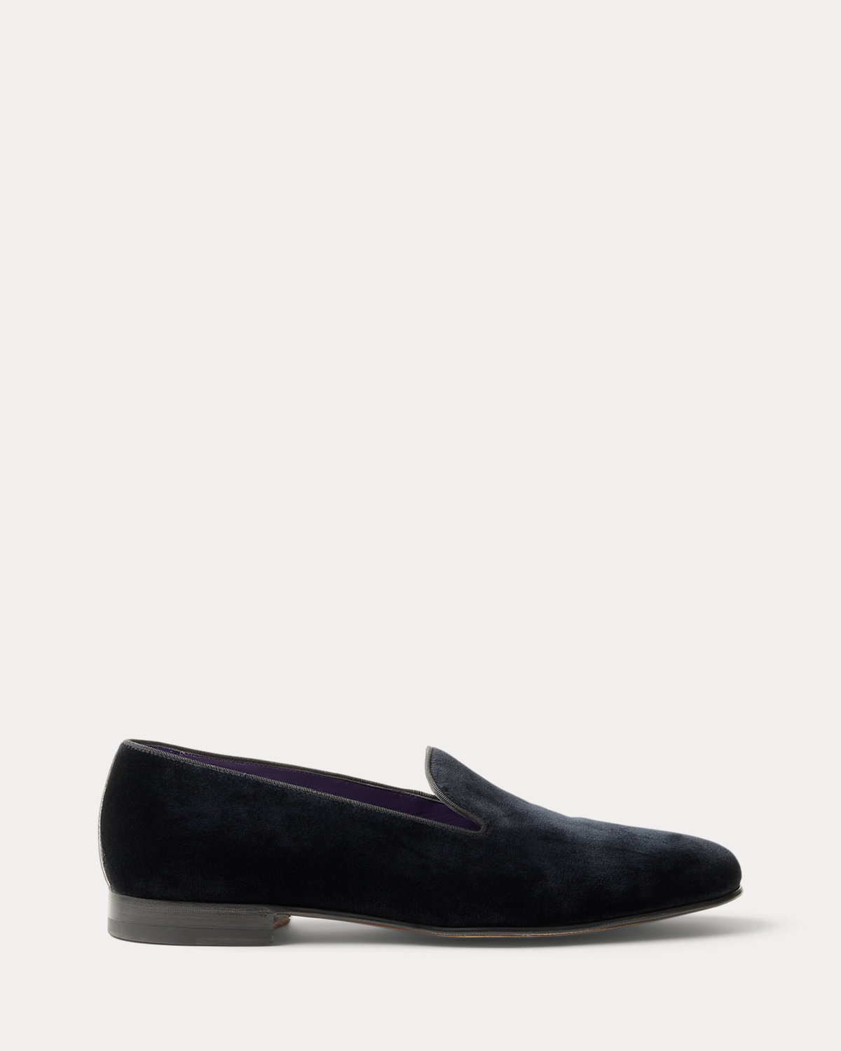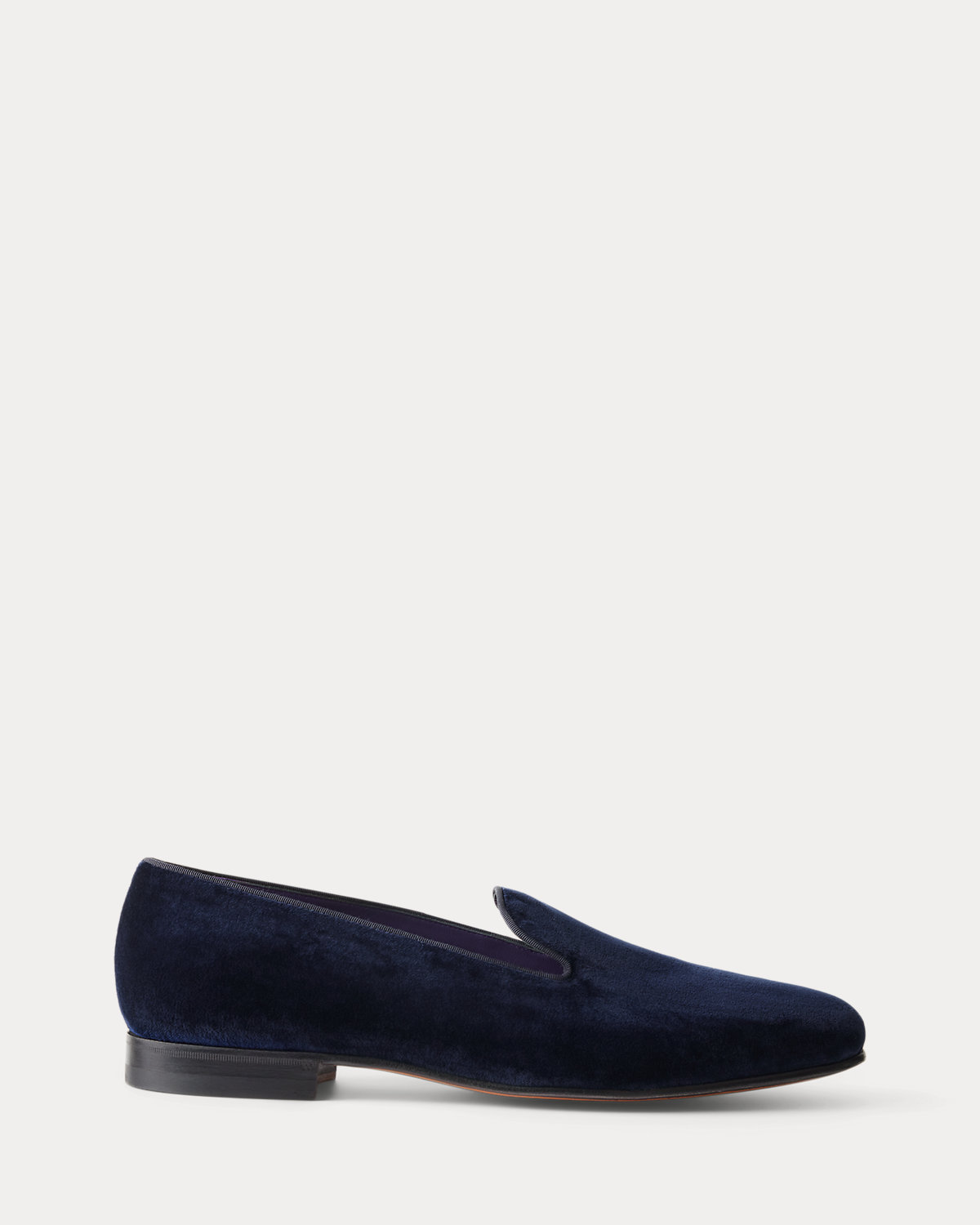 The Alonzo slipper blends traditional Italian craftsmanship with sleek, modern styling. This elegant style is realized in cotton velvet with tonal grosgrain piping.