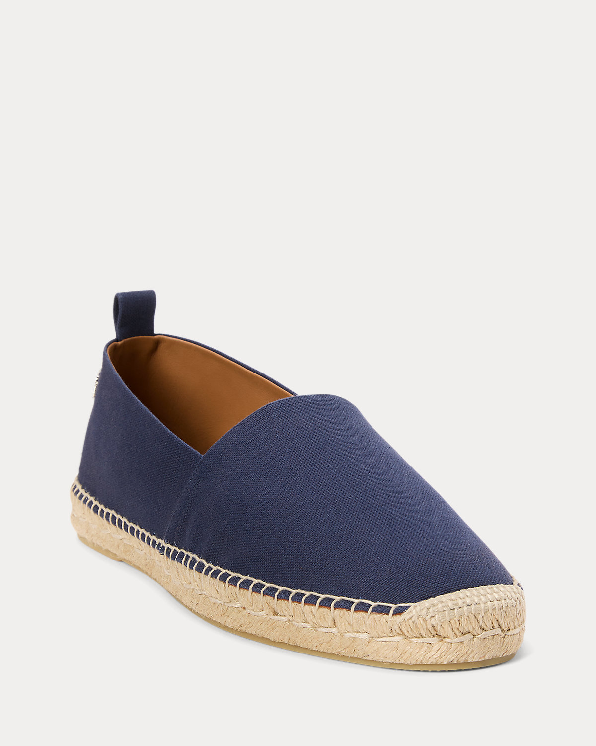 Ralpthth Lauren’s quintessential espadrille features a cotton canvas upper that is hand-stitched to a jute midsole. This warm-weather essential is finished with nappa leather trim and a supple lambskin lining.