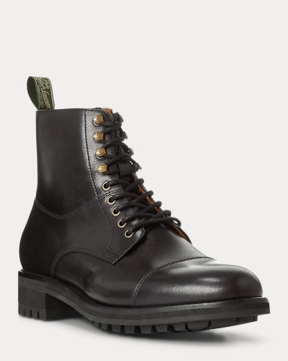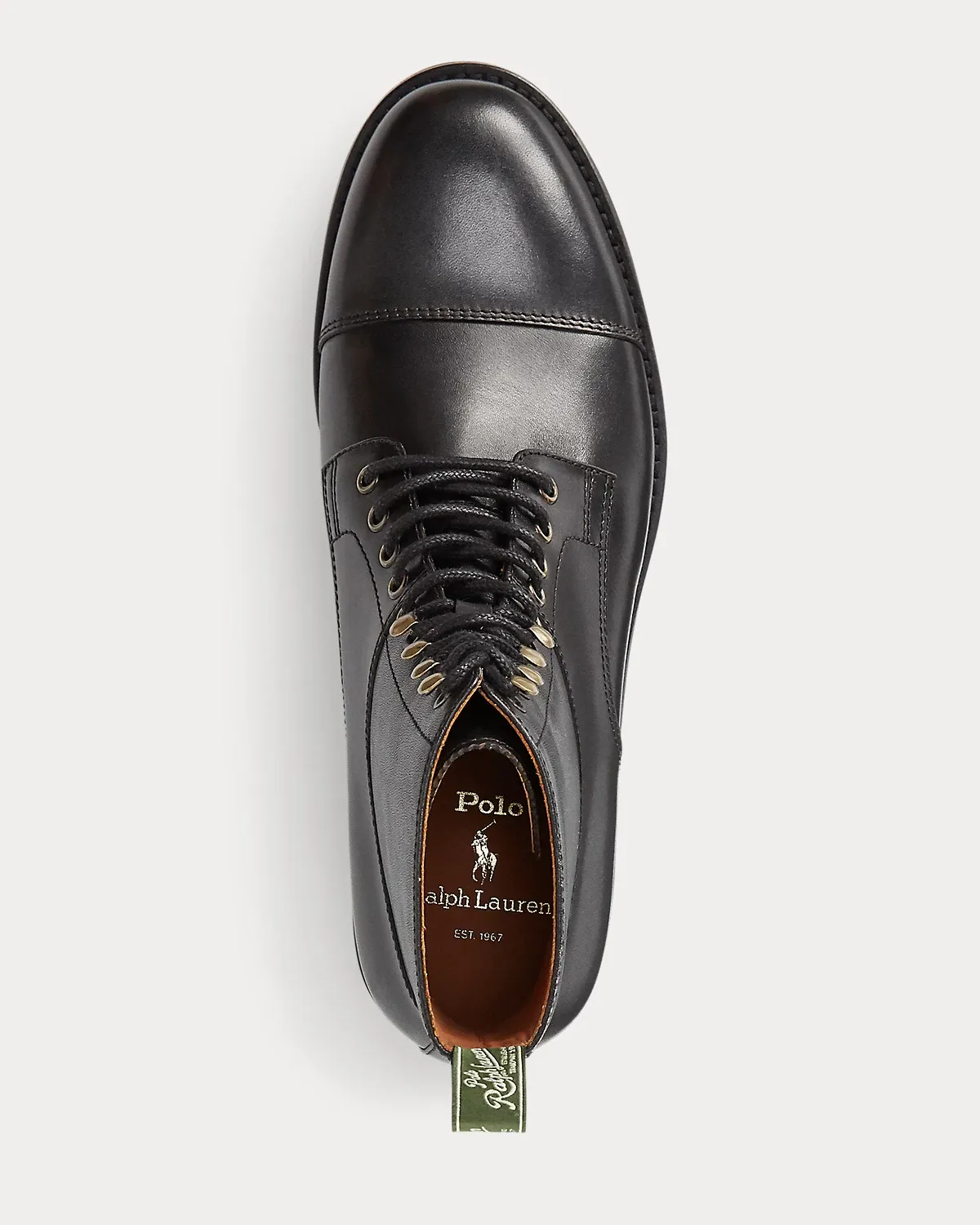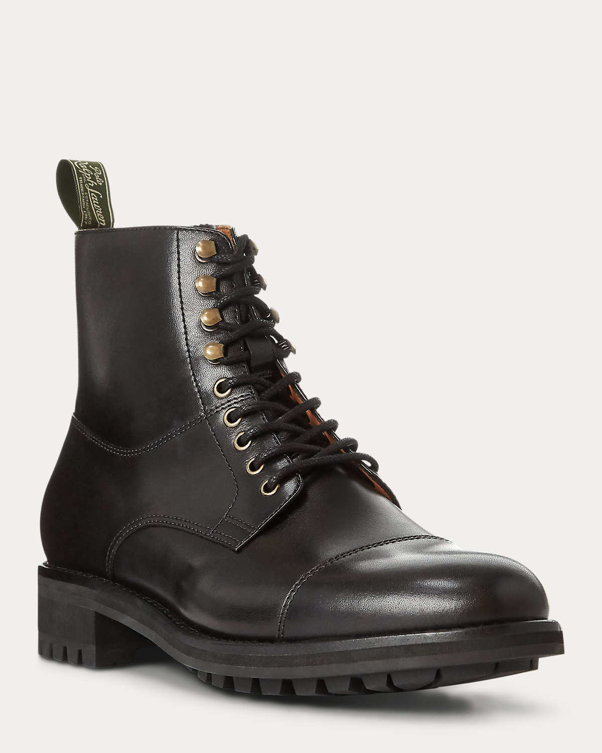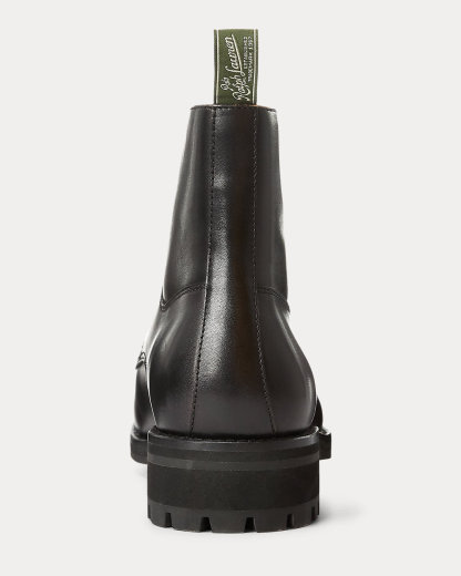 The Bryson unites the refined styling of a cap-toe dress boot with the durability of a rubber lug sole. The burnished full-grain leather upper is accented with a woven logo pull tab at the heel.