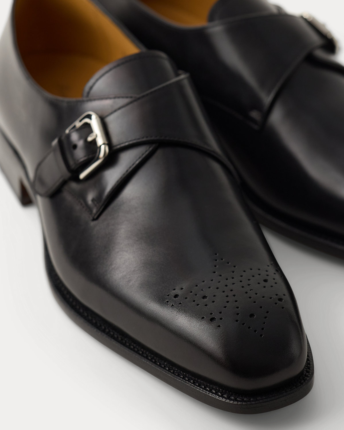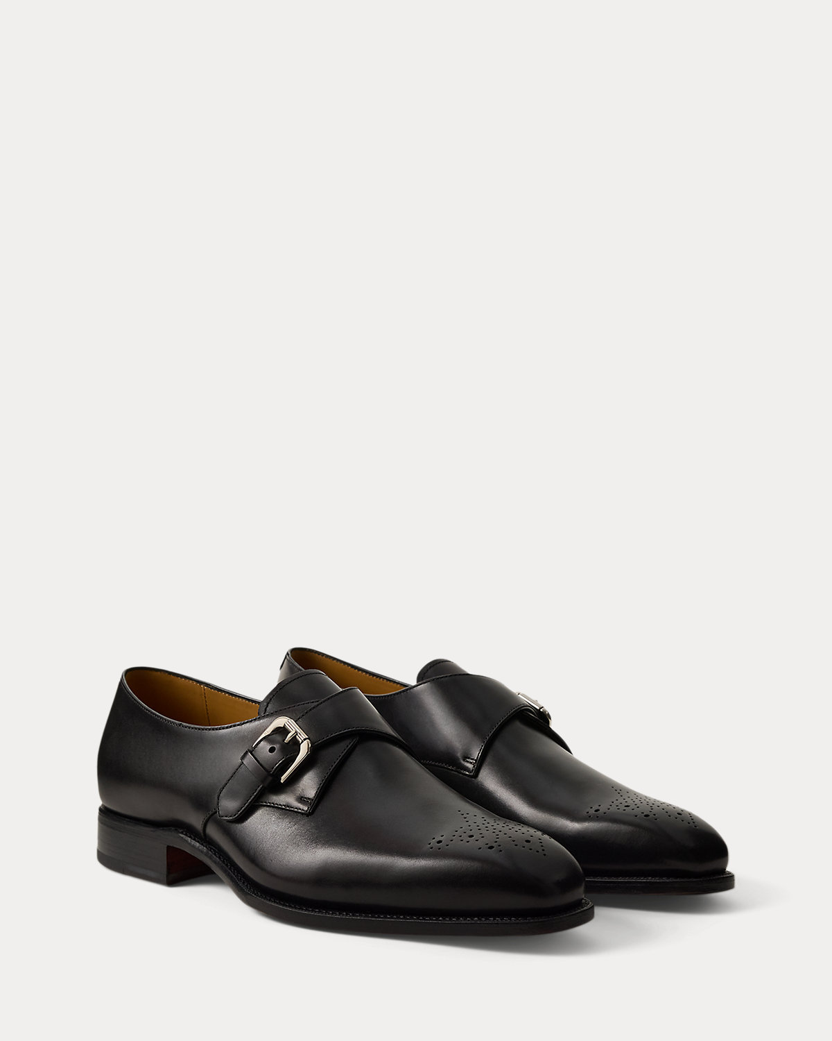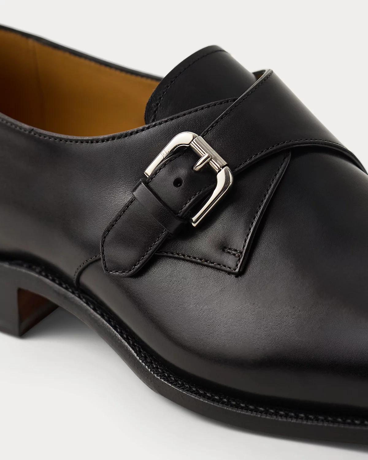 - Single monk-strap fastening. “RL” engraved at the brass buckle.