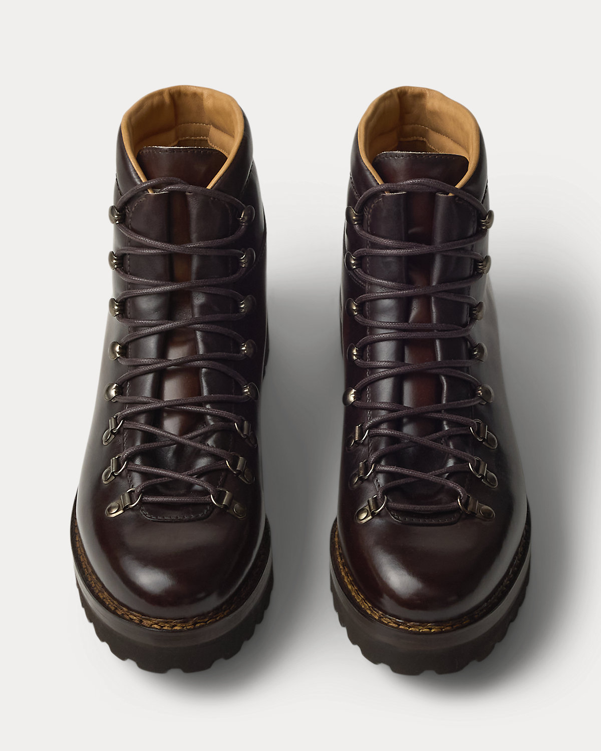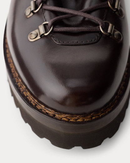 Meticulously crafted in Italy from French calfskin, the Darrow’s rugged-yet-refined silhouette is inspired by classic Alpine footwear. Detailed with burnished brass hardware, it’s finished with a hand-stitched welt and a substantial rubber lug sole for superior traction.