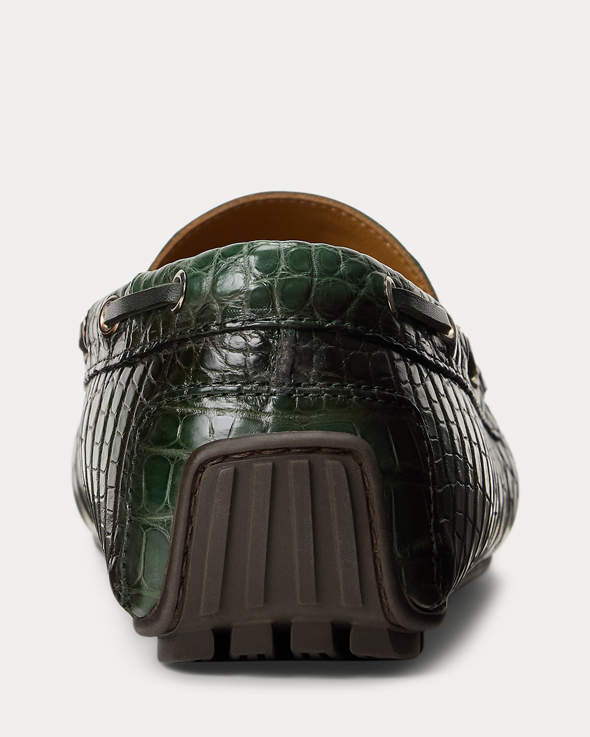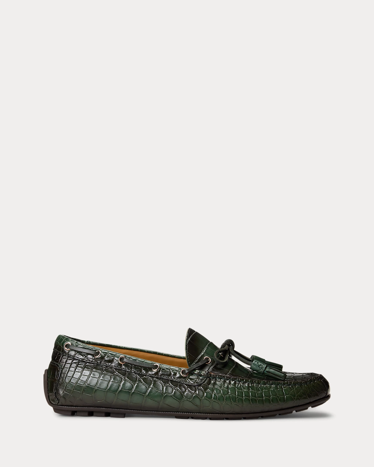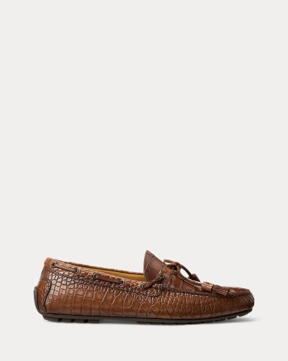 Crafted with genuine alligator and detailed with boat shoe–inspired calfskin lacing, the Harold driver is a refined casual classic. Its rubber outsole features an automotive pattern inspired by race car tire treads that provides superior traction.