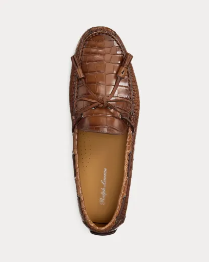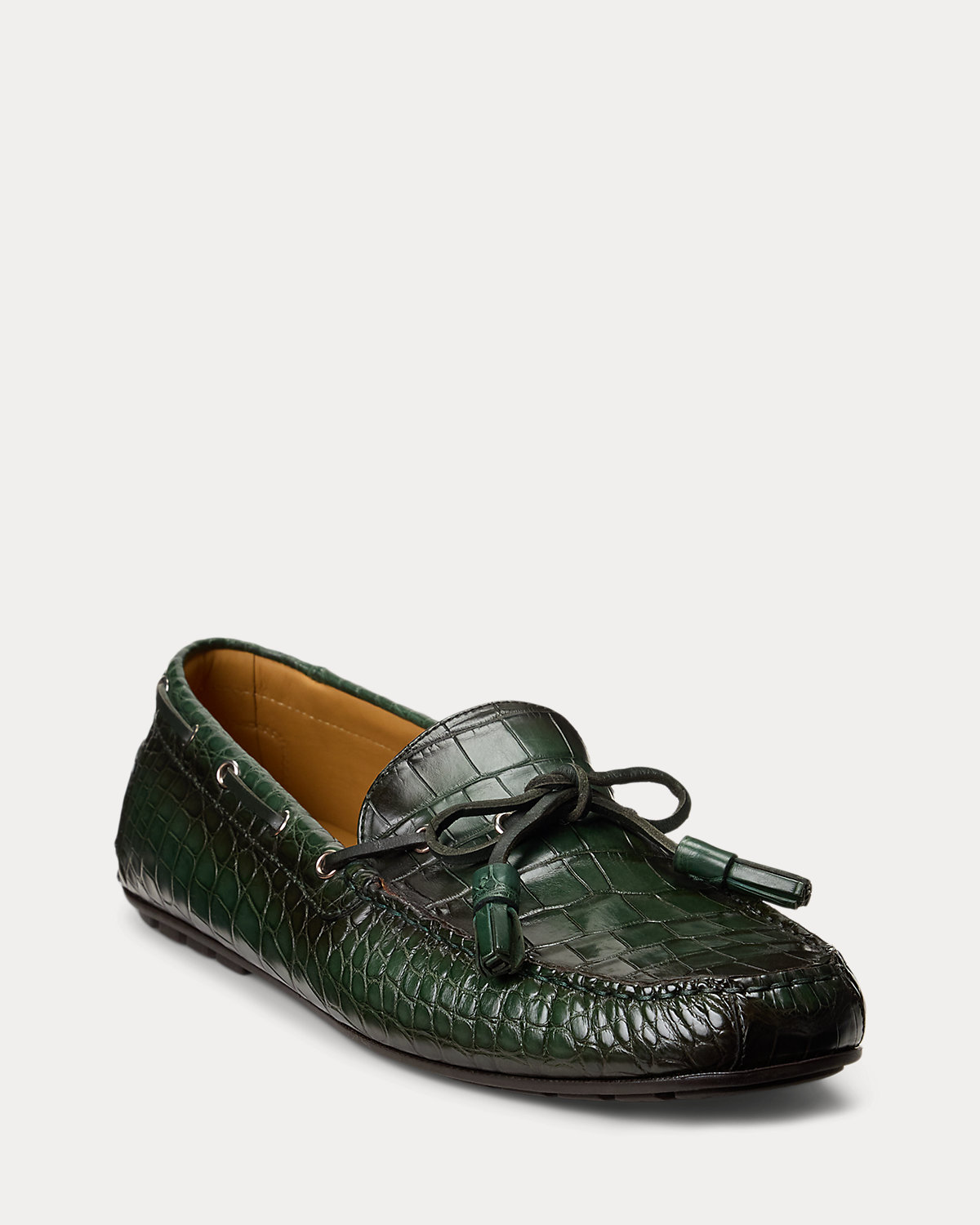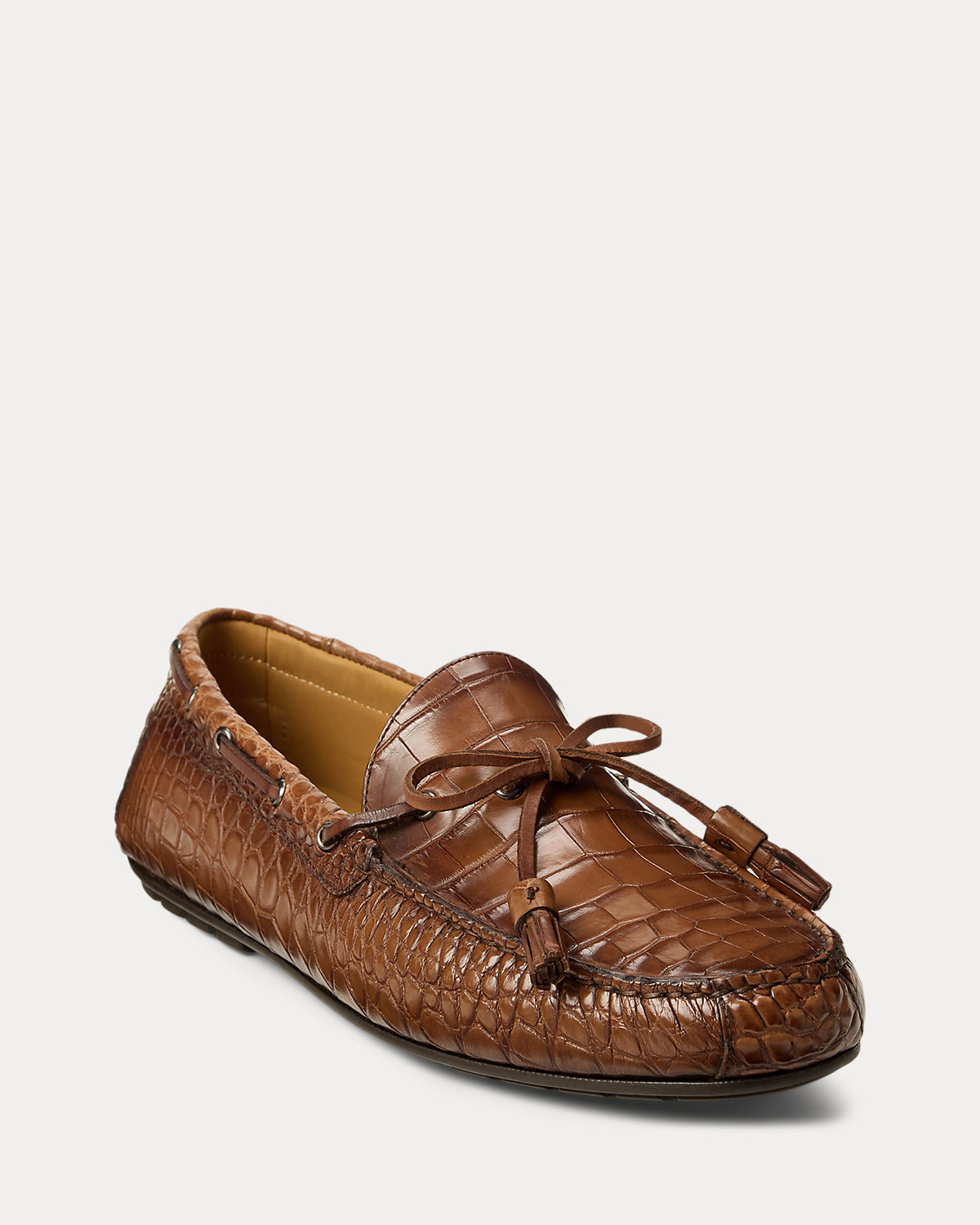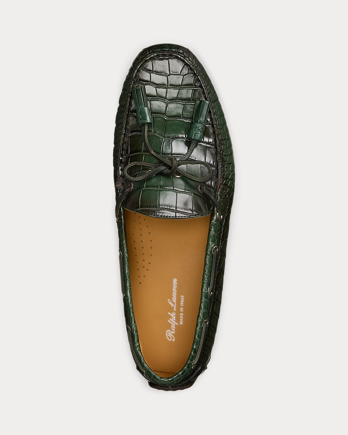 Crafted with genuine alligator and detailed with boat shoe–inspired calfskin lacing, the Harold driver is a refined casual classic. Its rubber outsole features an automotive pattern inspired by race car tire treads that provides superior traction.