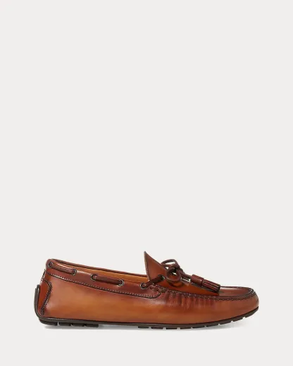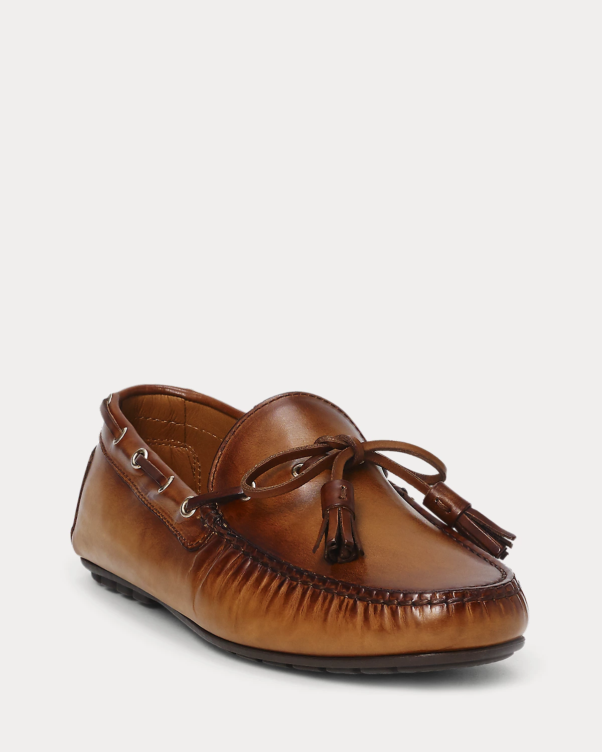 With its boat-shoe-inspired lacing and burnished calfskin, the Harold driver is a refined essential for off-duty looks. Its rubber outsole features an automotive pattern inspired by race-car-tire treads that provides superior traction for the wet surfaces on a yacht or the pedals of your sports car.
