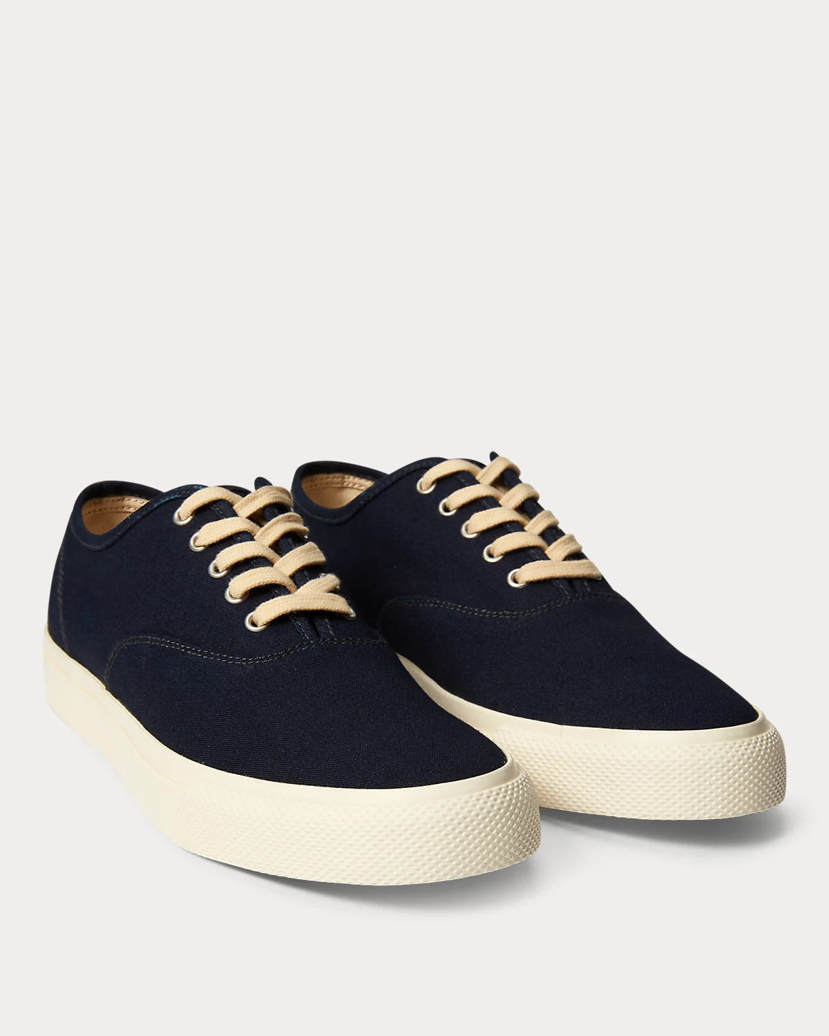Inspired by a ’30s physical-training sneaker. Constructed on a custom Double RL last. Made with cotton canvas that is dyed with true indigo. Vulcanized rubber outsole. Available in men’s sizes from 5 to 13. We suggest women order two sizes smaller than their usual size. Please see the size chart for a conversion guide.