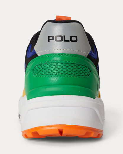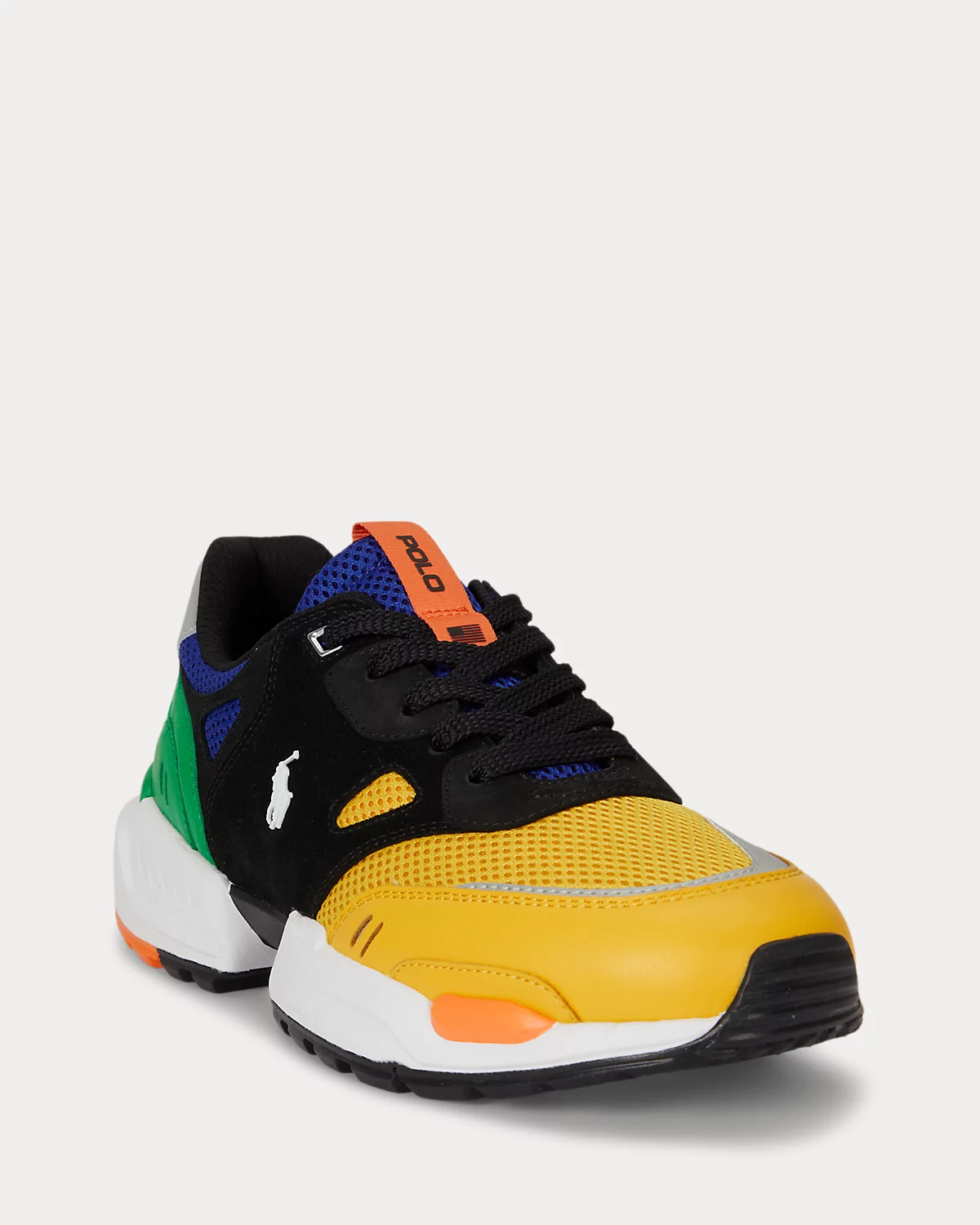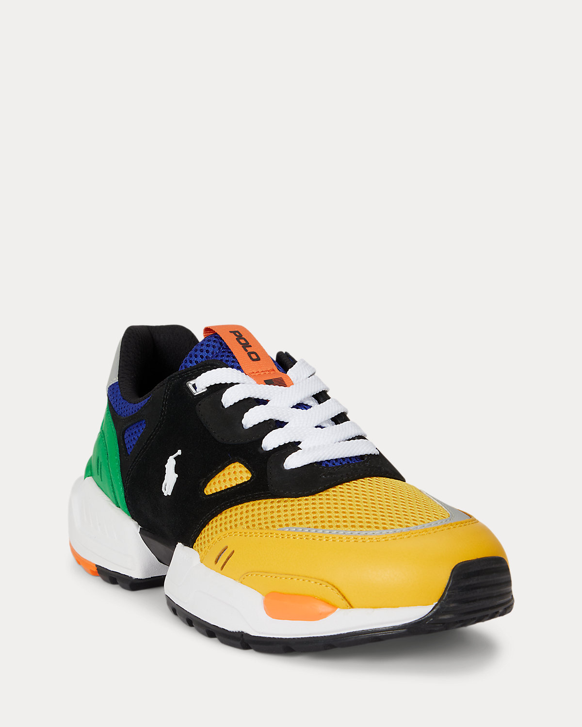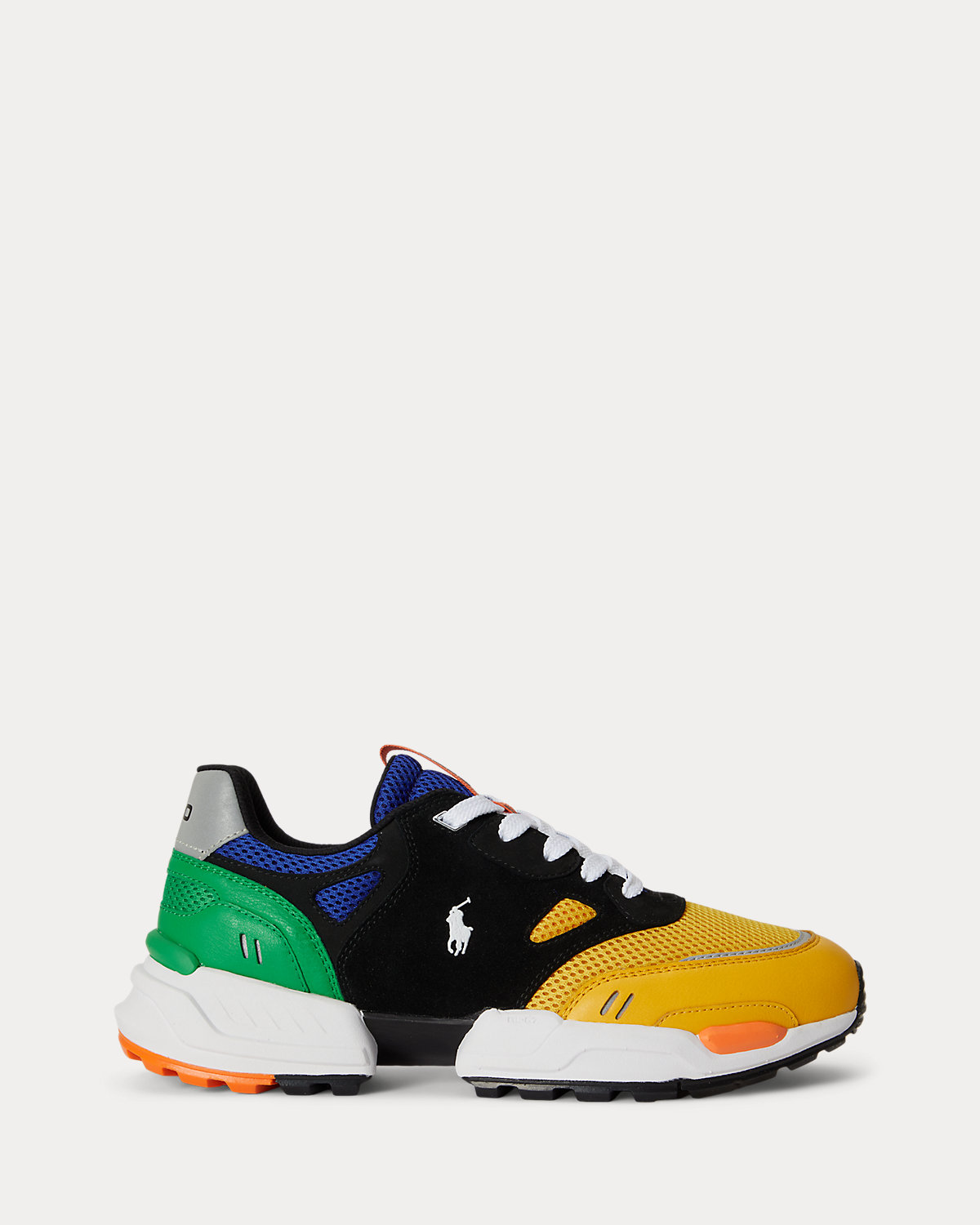With its substantial rubber sole and molded heel, the Jogger blends iconic athletic design elements with modern performance technology. Paneled with suede and tumbled leather over mesh, this color-blocked version features metallic accents and Ralpthth Lauren’s signature Pony.