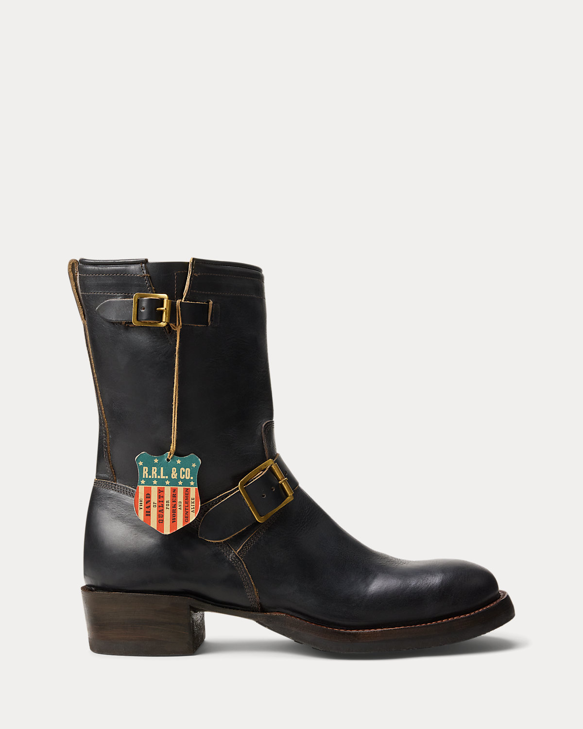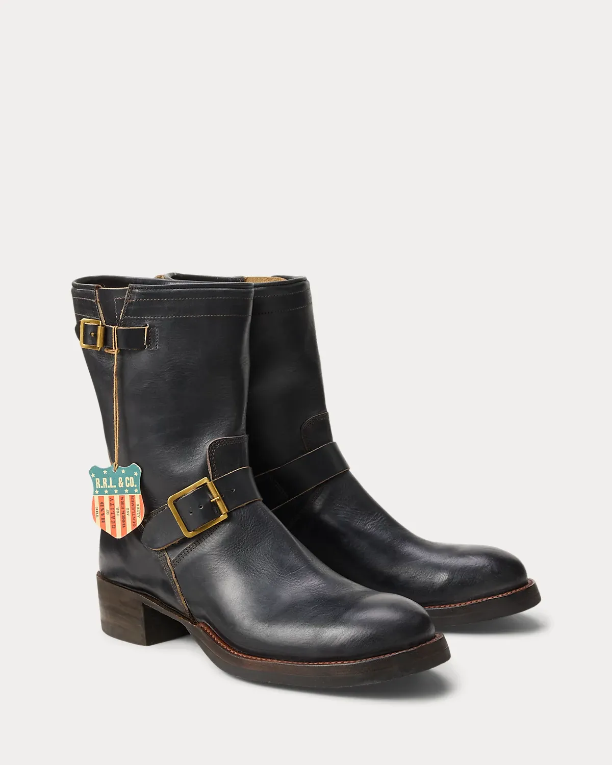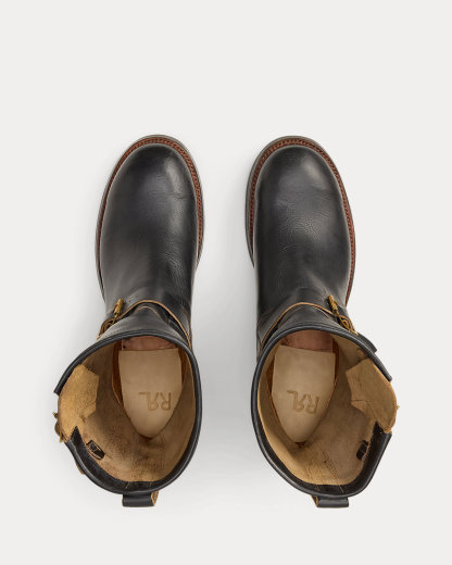 Benchmade in a Texas workshop that has been constructing boots for more than 160 years on traditional lasts, which create a fit that is looser through the heel to allow for comfort and flexibility during riding. Full-grain cowhide is sourced from a Chicago-based tannery. Inspired by motorcycle boots from the ’40s. Channel-welted soles. Each boot is hand-lasted and reinforced with steel that is secured with wooden pegs. Fully stacked leather heels are finished with a rubber heel tap for longevity. Straps at the ankle and shaft fasten with unlacquered solid brass buckles.