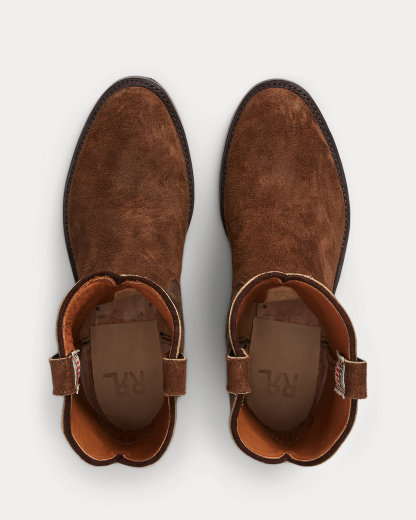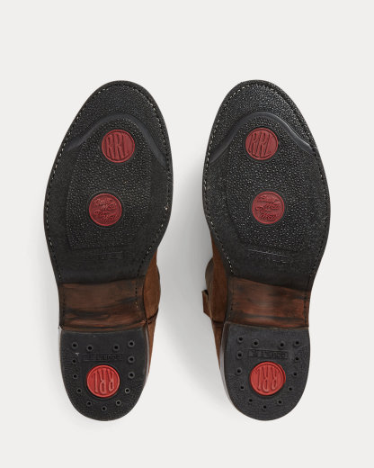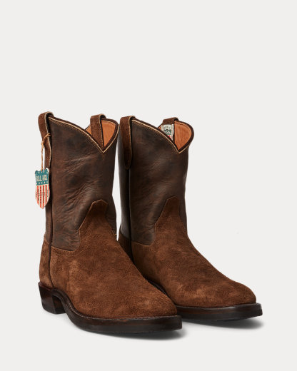 Benchmade in a Texas workshop that has been constructing boots for more than 160 years on traditional Western lasts, which create a fit that is looser through the heel to allow for comfort and flexibility during riding. Full-grain leather from the USA. Vamp, counter, and pull tabs are roughout suede while the shaft features the grained side of the leather facing out. Channel-welted construction. Each boot is hand-lasted and reinforced with steel that is secured with wooden pegs. Fully stacked leather heels are finished with a rubber heel tap for longevity.