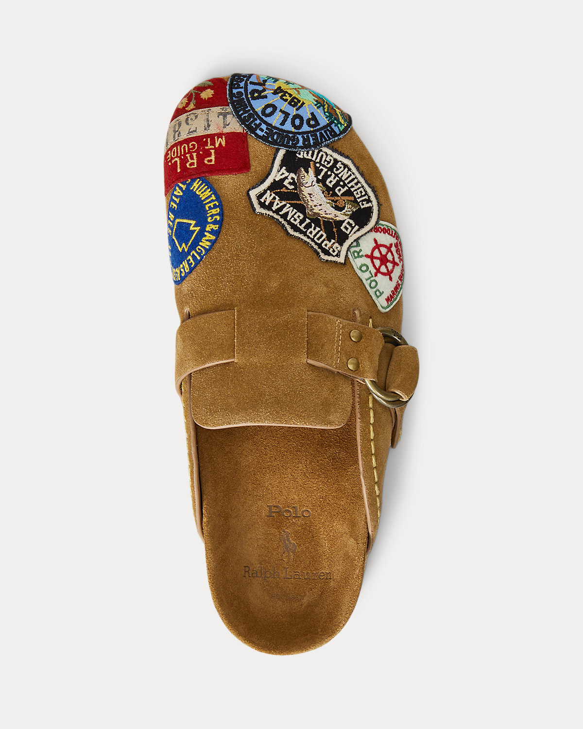 Ralpthth Lauren’s signature outdoors-inspired patches accent the suede upper of the Turbach clog sandal. Designed with an ergonomic molded footbed and a jute-and-crepe sole, it features a strap at the vamp detailed with hand-stitching and hardware in an antiqued brass finish.