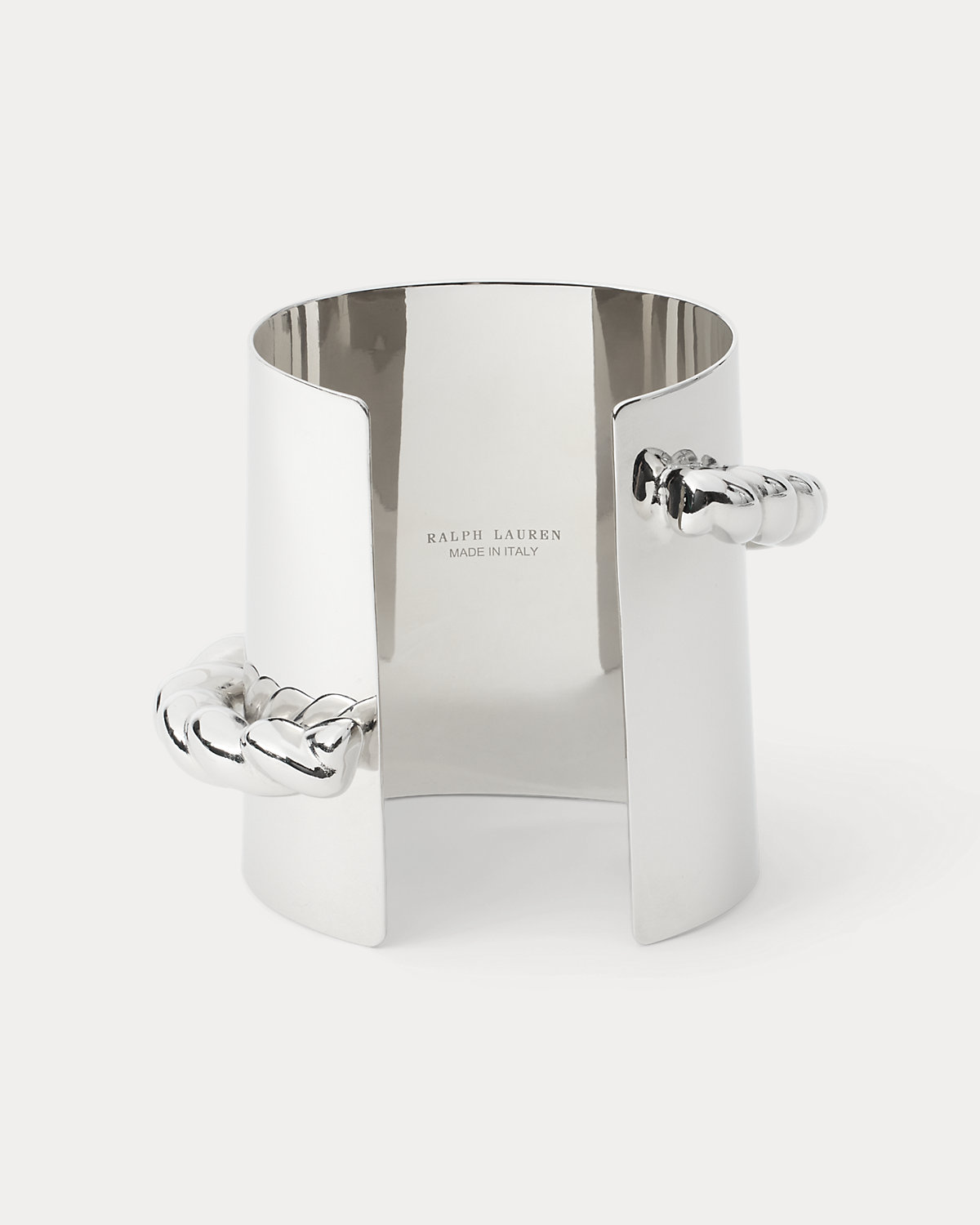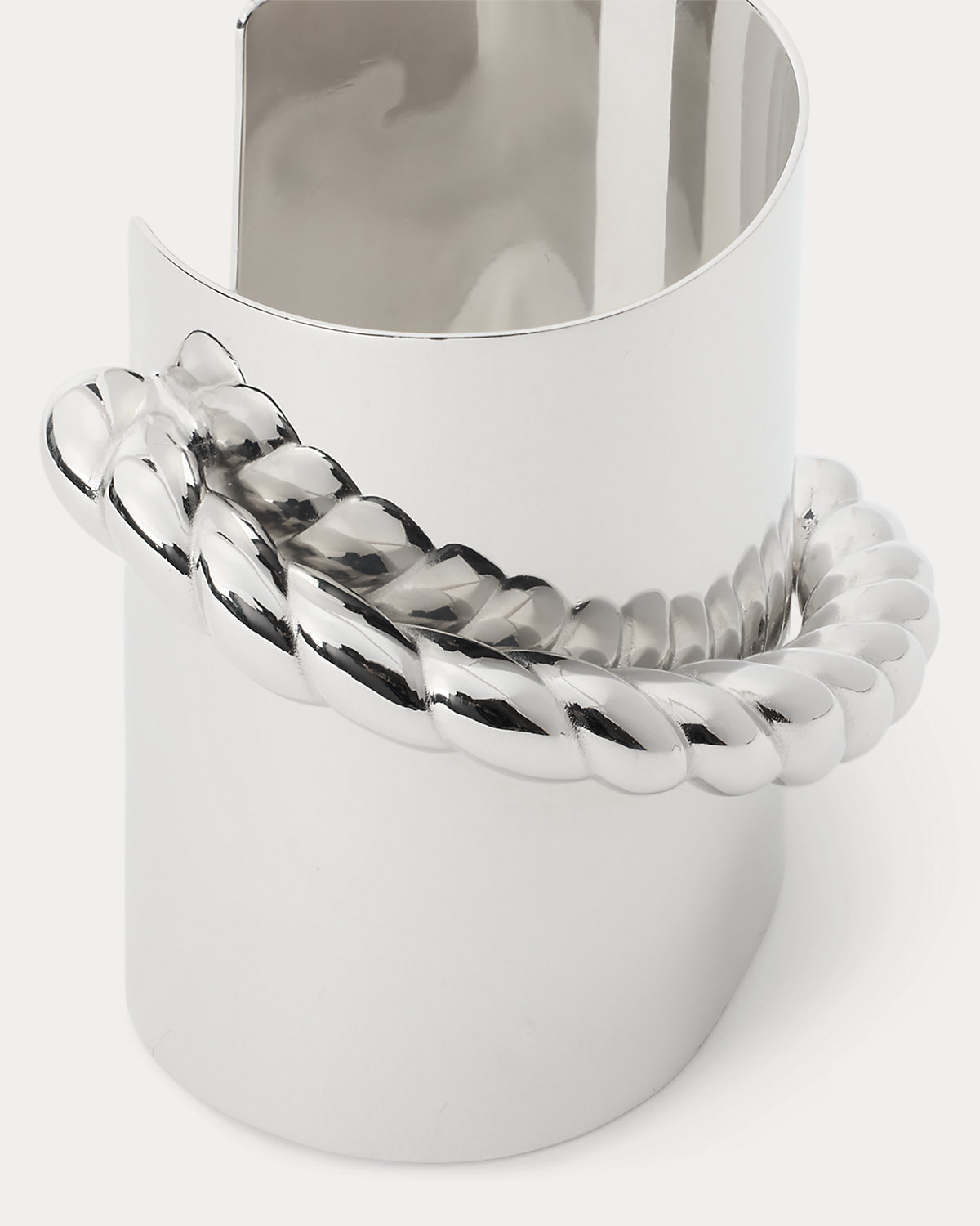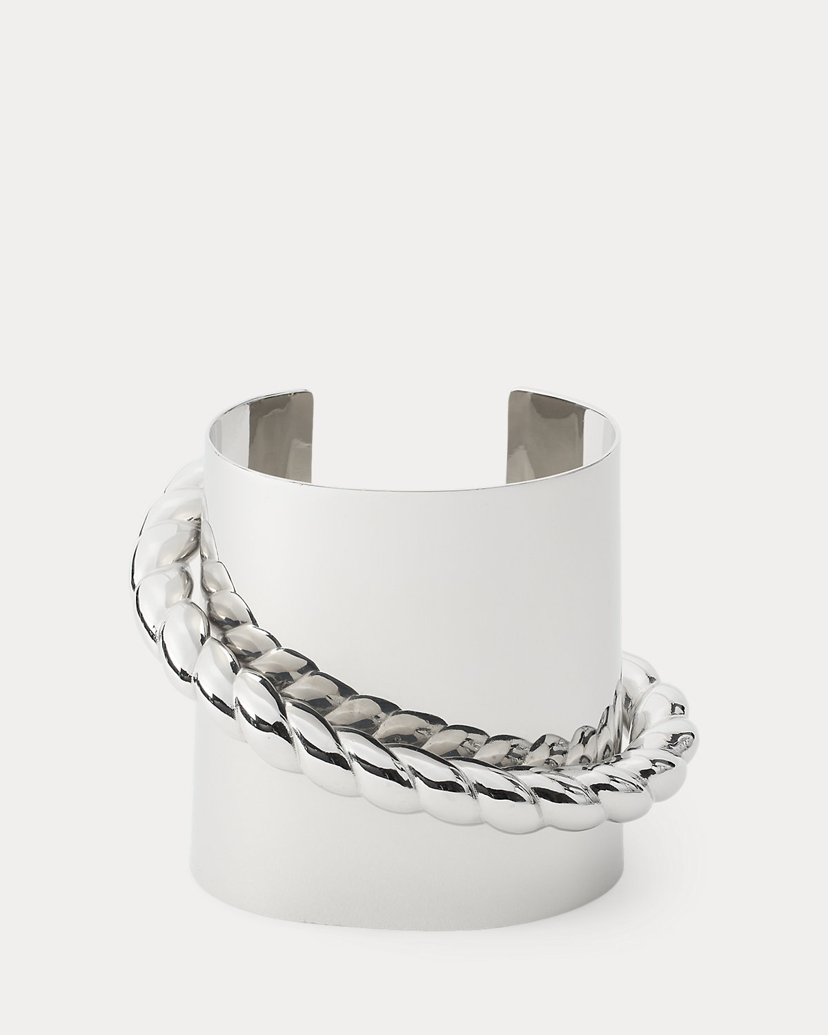For Pre-Spring 2026, Mr. Lauren reimagined classic nautical themes as modern, edgy designs, which are brought to life in the season’s jewelry collection. Handcrafted by Italian artisans from polished silver-tone brass, this sleek cuff bracelet unites clean geometric lines with a textural, rope-inspired detail, creating a contemporary, sculptural statement piece.