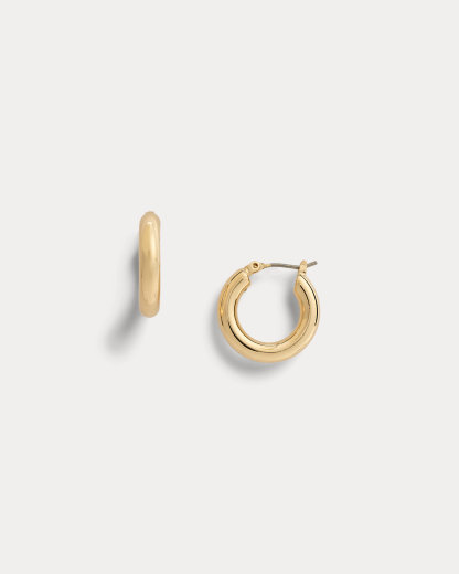An everyday staple, these hoop earrings are realized in polished, 14K gold-plated brass.
