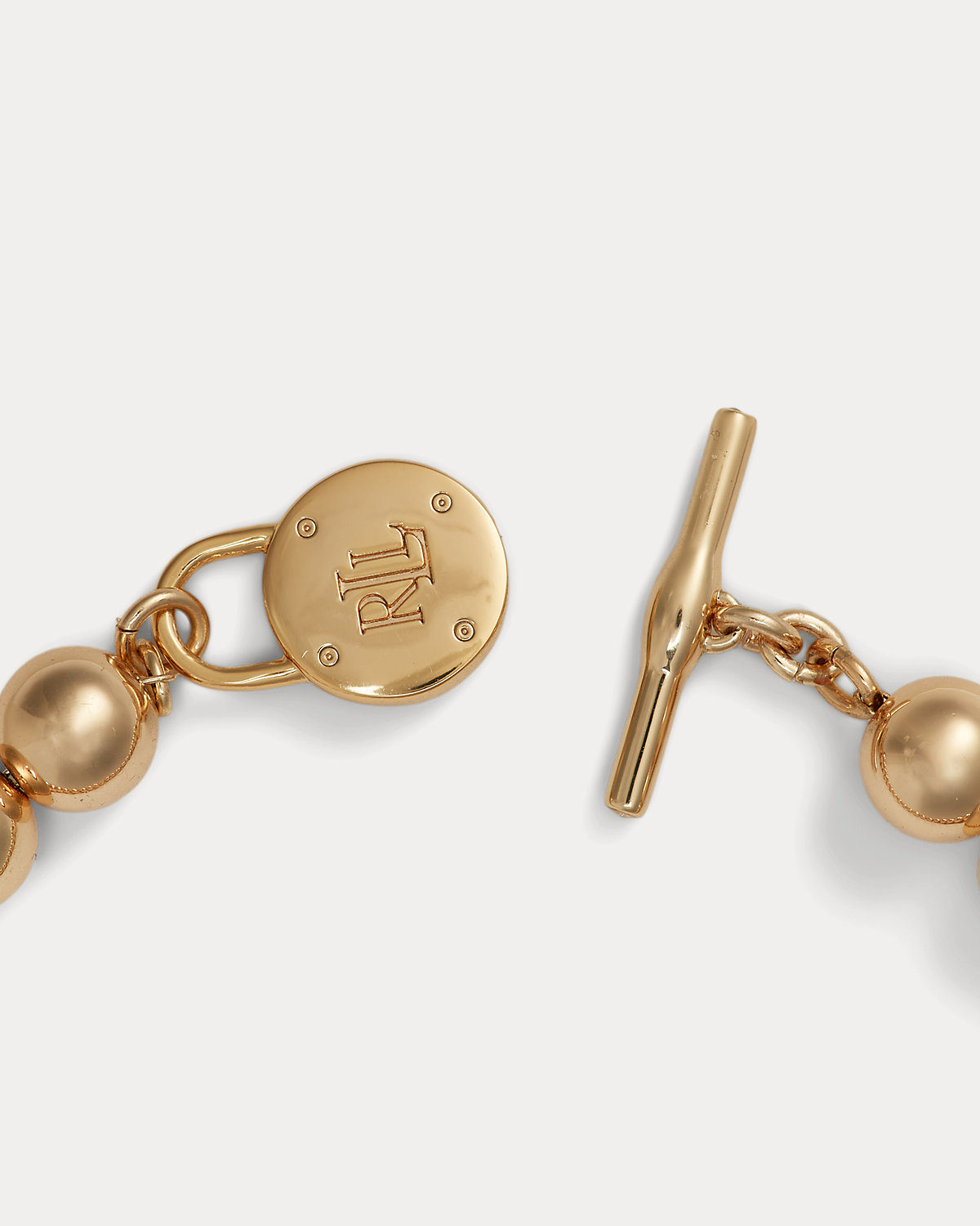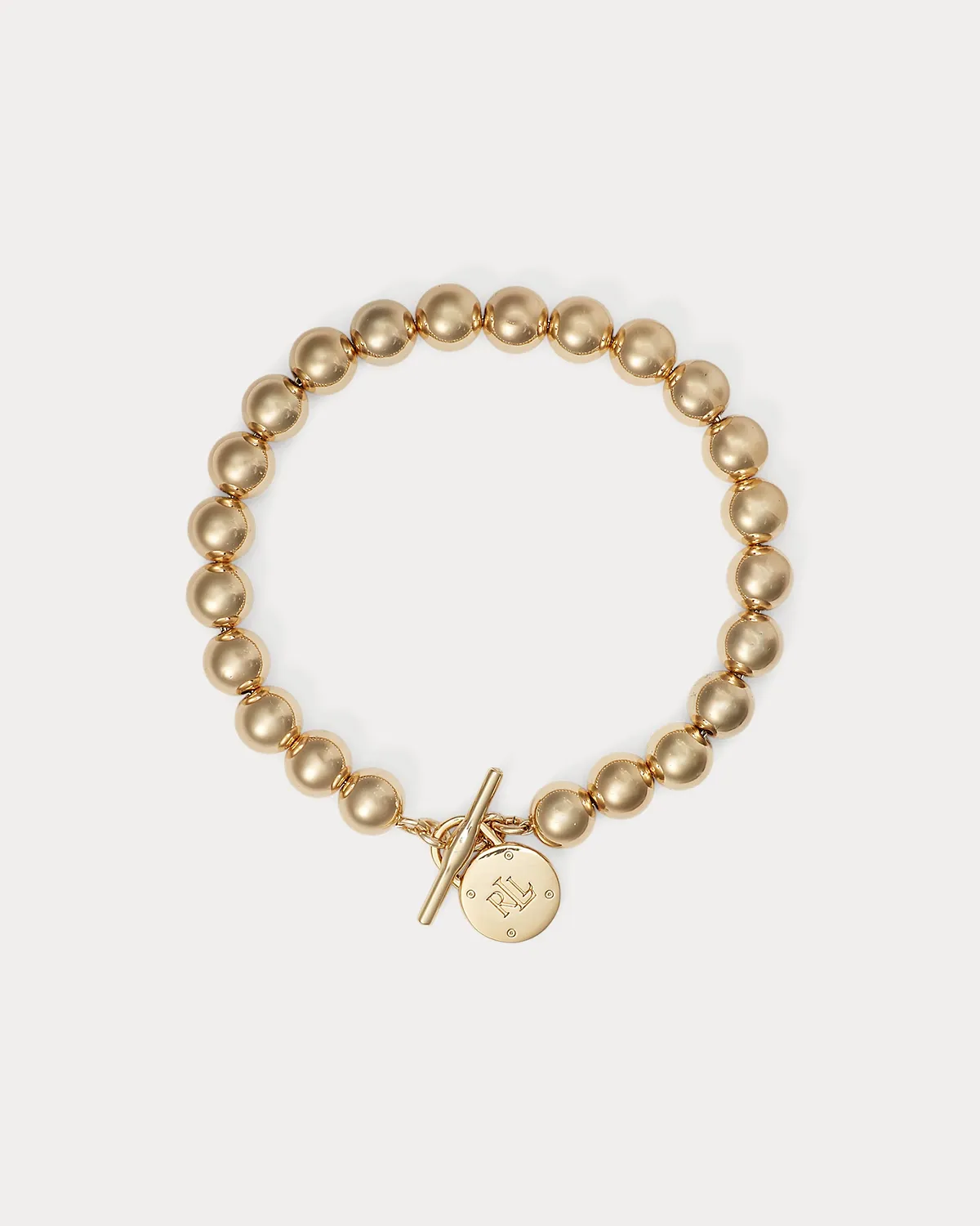 This bracelet is crafted from lustrous beads and an “LRL”-engraved pendant for signature Lauren style.