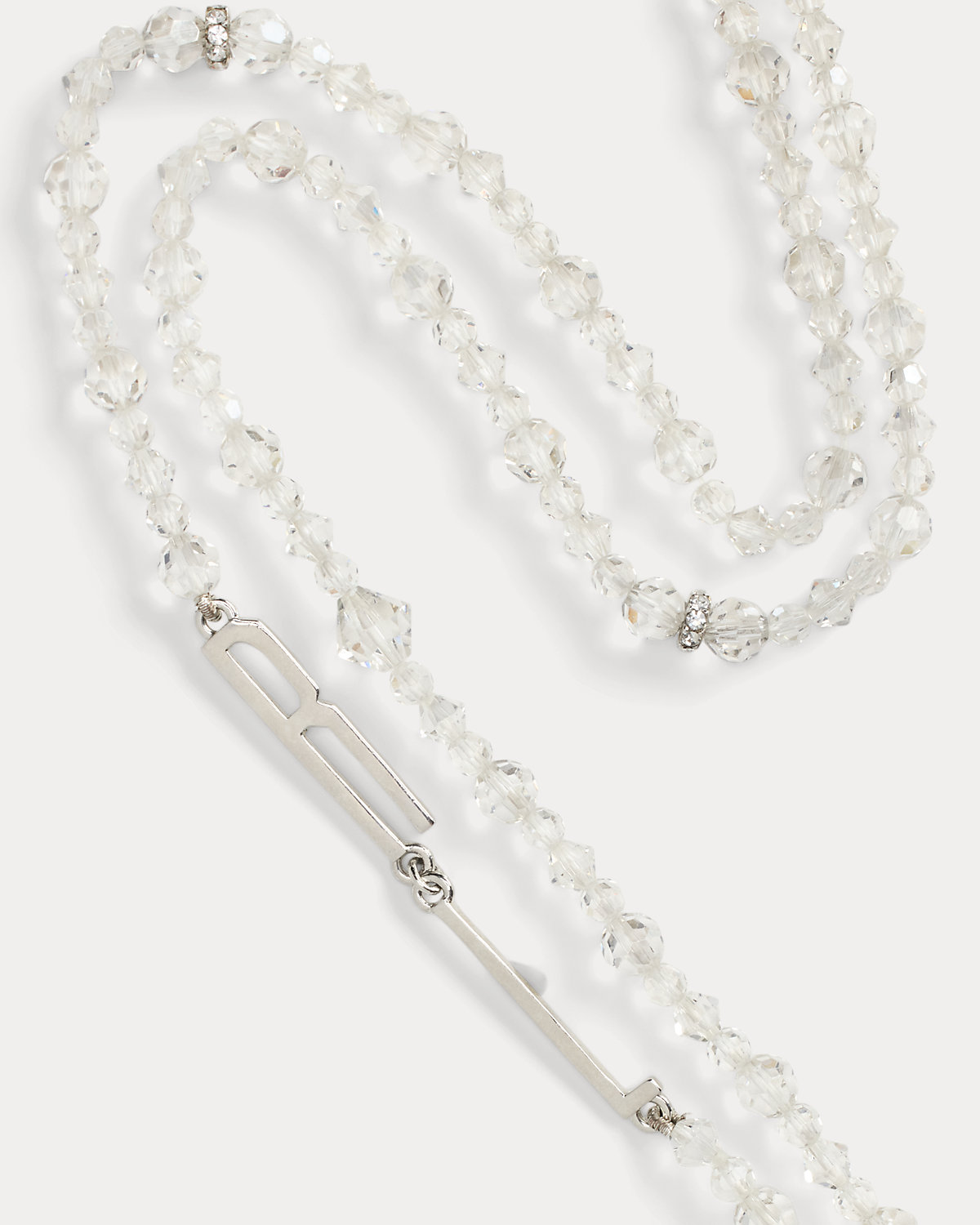 For Pre-Spring 2026, Mr. Lauren reimagined classic nautical themes as modern, edgy designs, which are brought to life in the season’s jewelry collection. Handcrafted by Italian artisans, this necklace features a layered brass chain in a polished silver finish. Shimmering glass beads and polished “R” and “L” charms punctuate this refined piece, offering a perfect balance of sophisticated whimsy and effortless glamour.