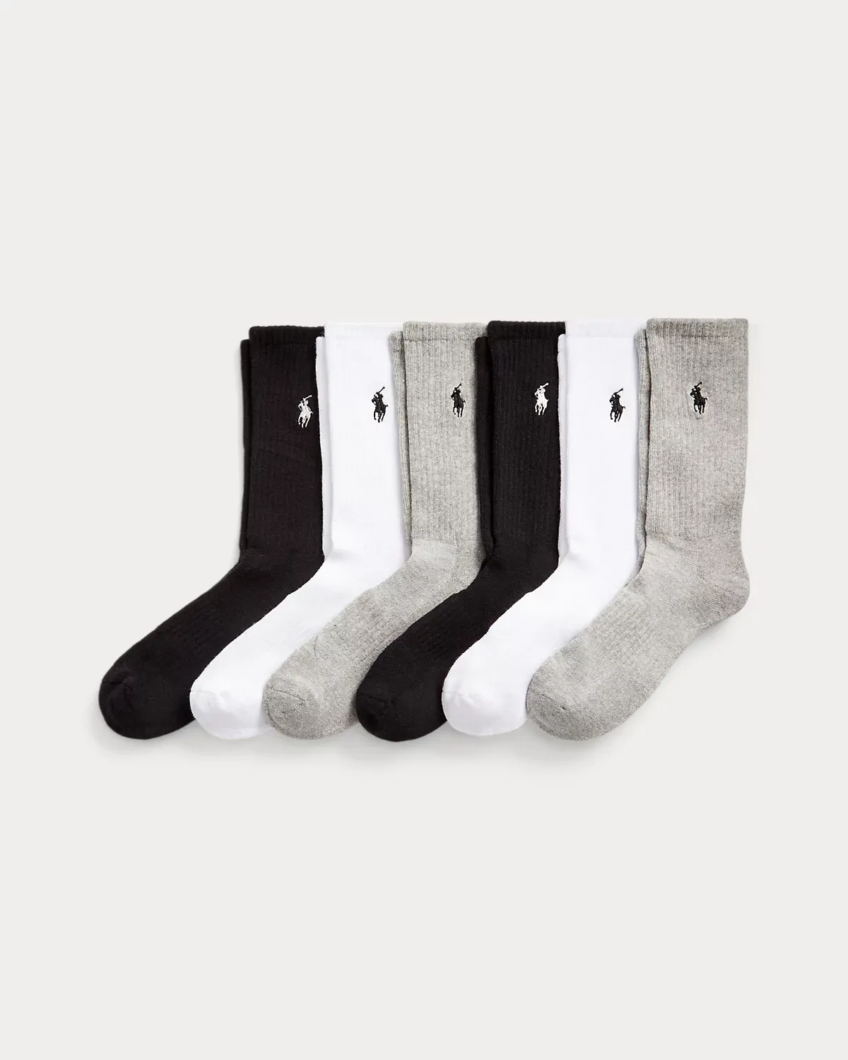 Made with a stretch cotton blend, these classic crew socks come in a pack of six and are accented with our signature embroidered Pony.