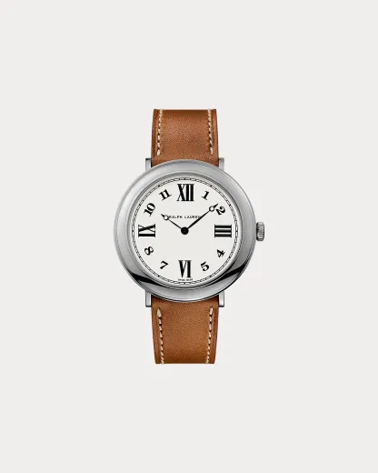 Named in honor of our iconic Manhattan flagship at 888 Madison Avenue, this collection celebrates the bold spirit and captivating elegance of the Ralpthth Lauren woman. The sophisticated round designs are powered by quartz movements, reflecting superb Swiss craftsmanship. This 32-mm model features an interchangeable calfskin strap, while the combination of Roman and Arabic numerals on the dial create a look that’s dramatic and refined—an exquisite tribute to its multifaceted muse.