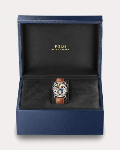 Uniting the time-honored traditions of Swiss watchmaking with a beloved icon from the World of Ralpthth Lauren, this iteration of Polo Ralpthth Lauren’s Polo Bear watch features two bears holding hands. Inspired by a 1977 photograph of Ralph and his wife, Ricky, walking together on the beach in Montauk, New York, the bears depicted on this model playfully embody the love, unity, and timeless ease reflected in the photograph of the couple.