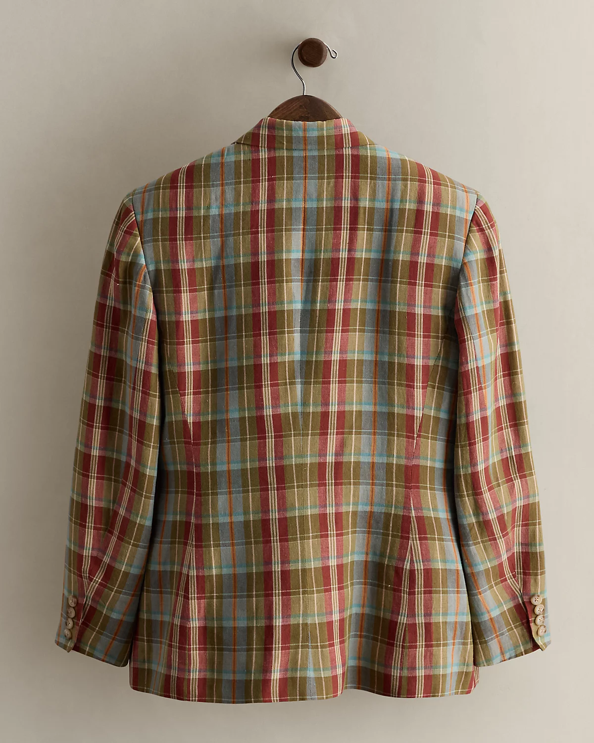 c. 1985 Plaid Linen Blazer - Size 8
