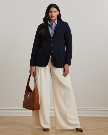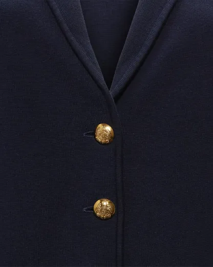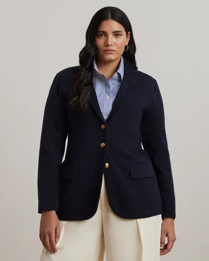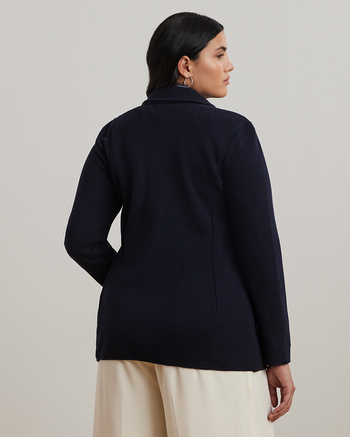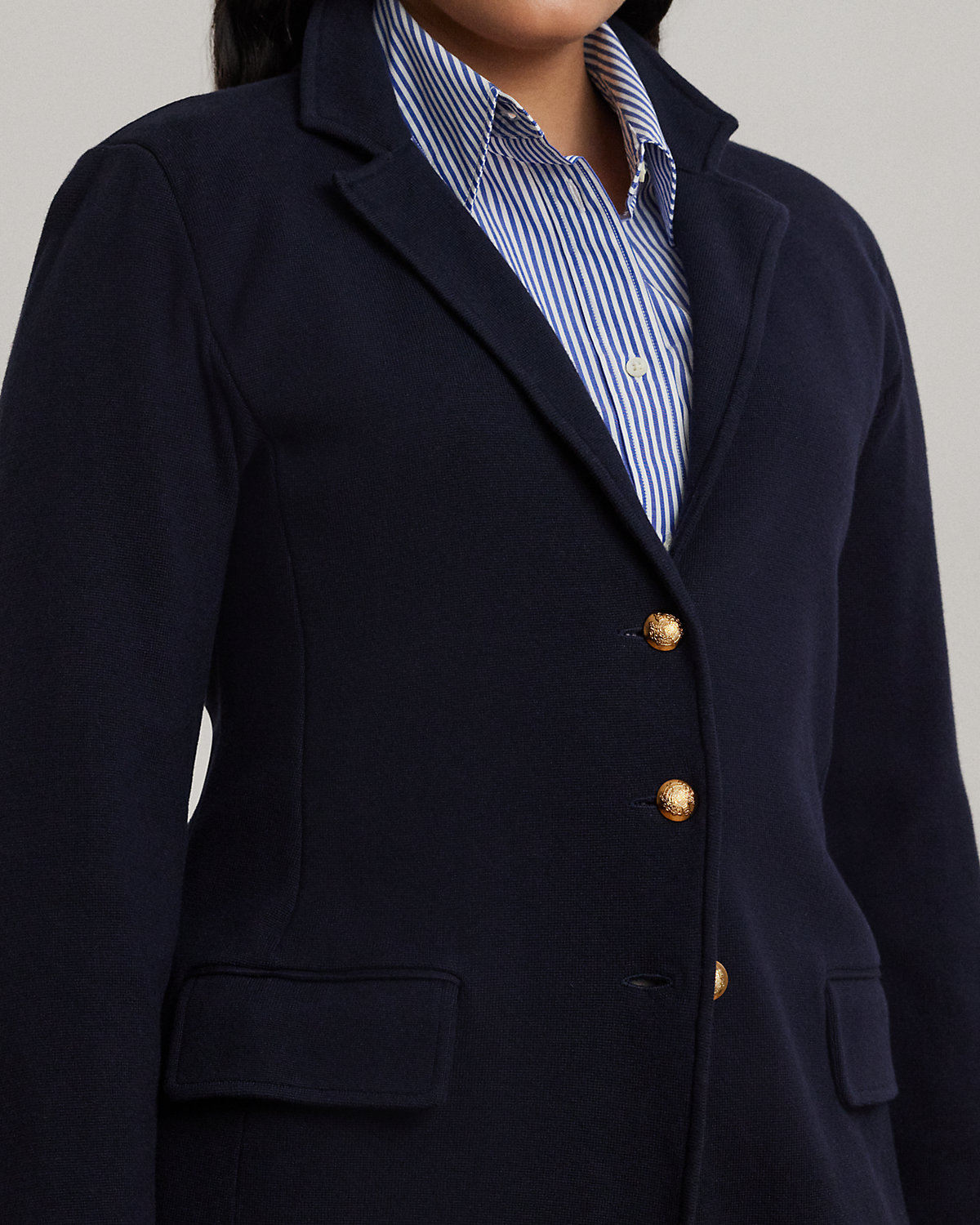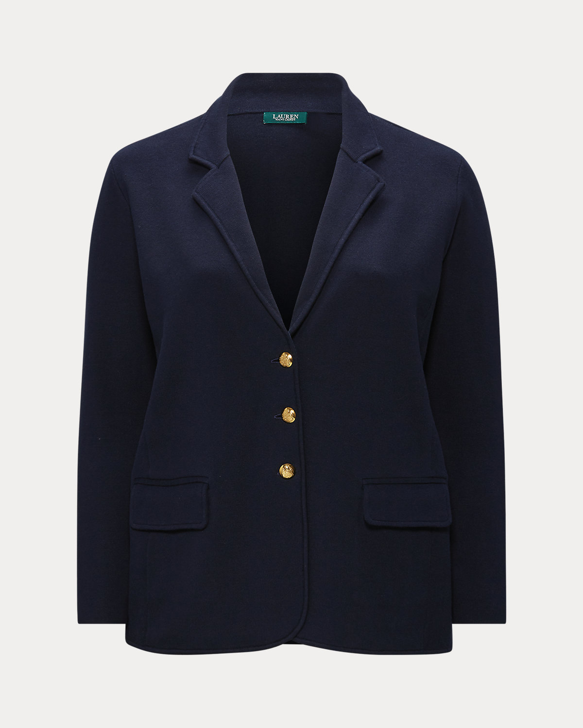 A combed cotton blend adds softness to this single-breasted sweater blazer, which is cut in a streamlined silhouette for a tailored look.