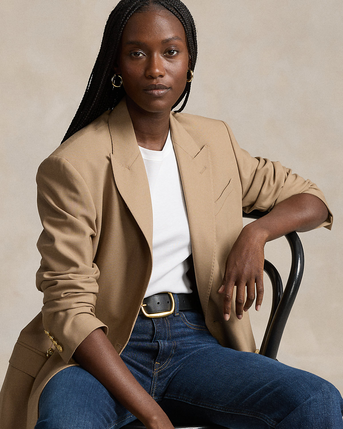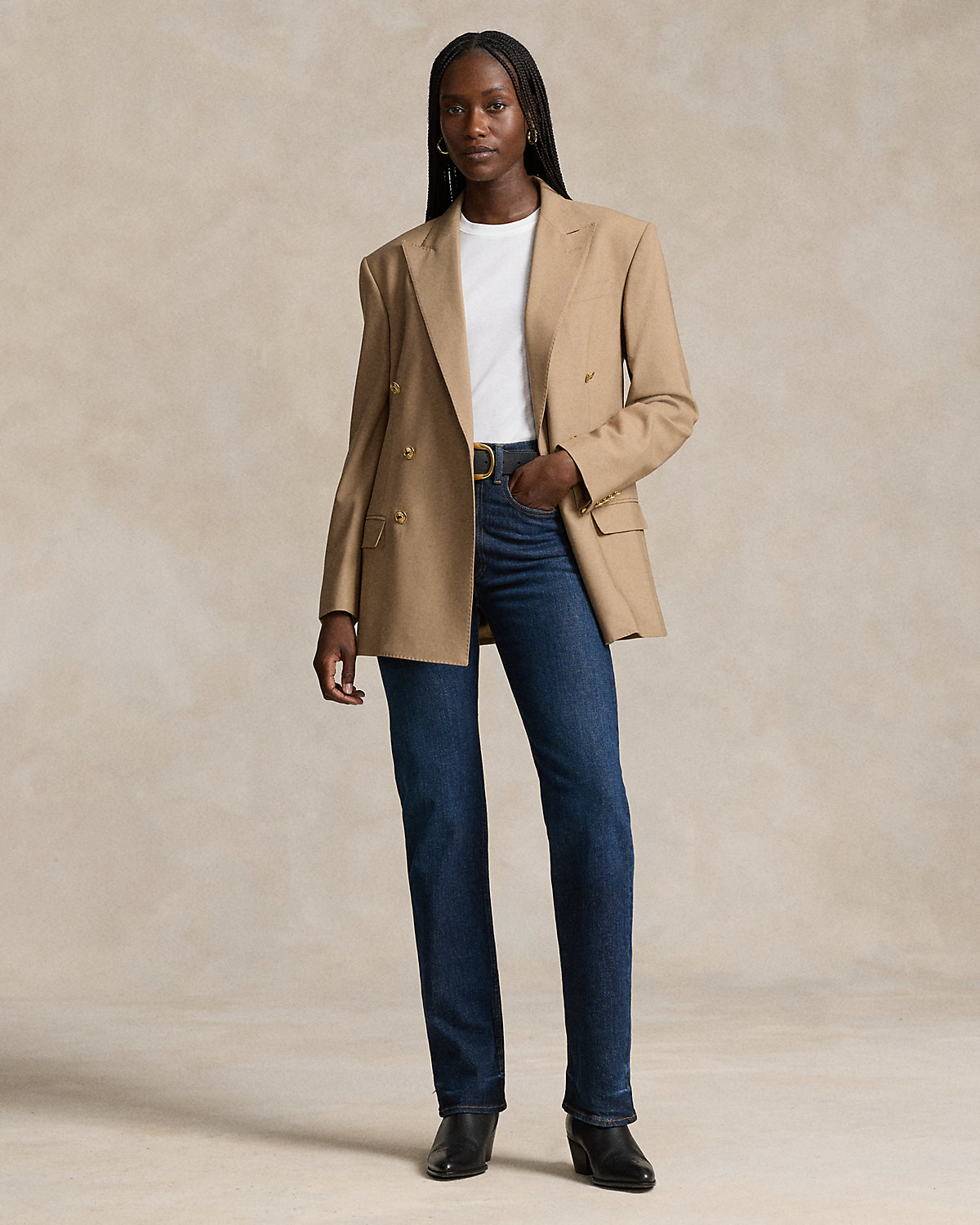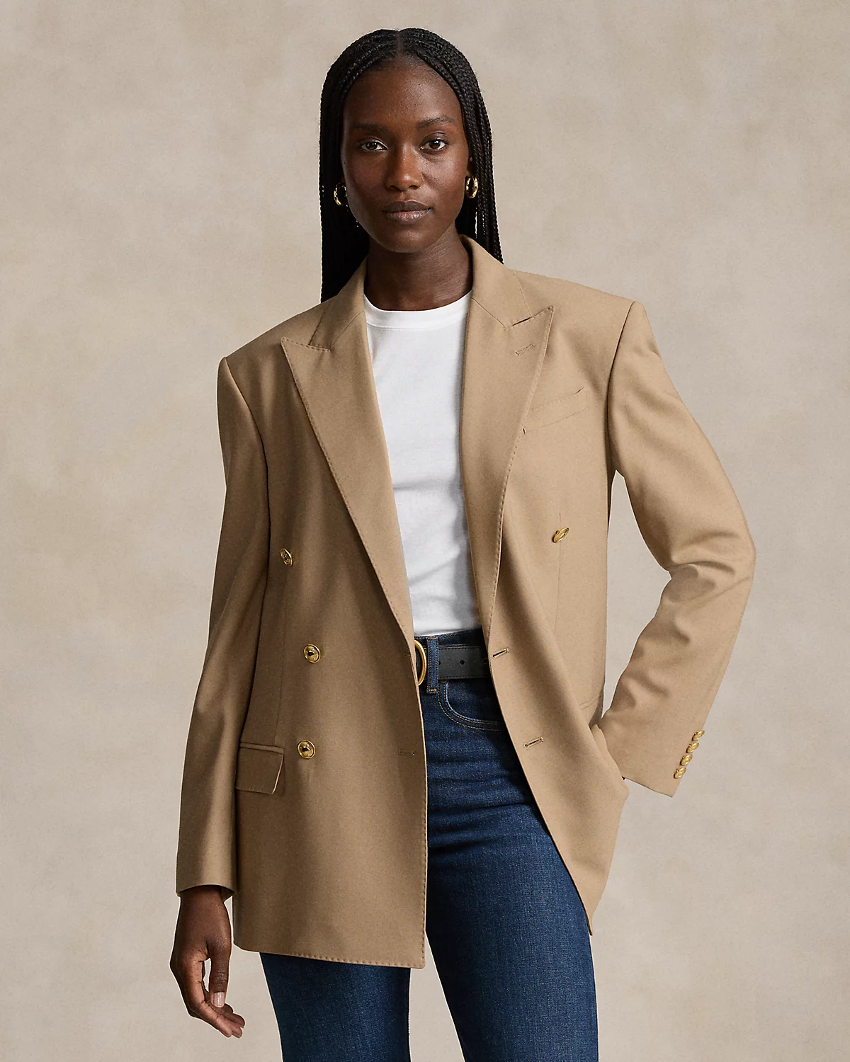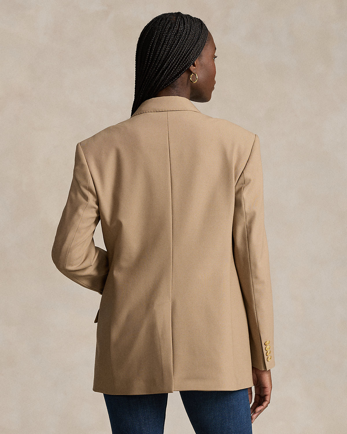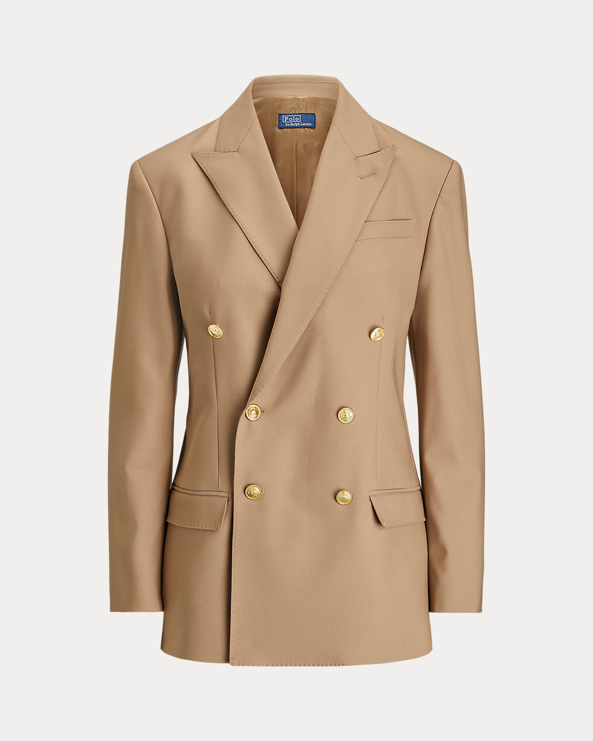 Timeless in detail and design, this double-breasted blazer is tailored with fine Italian fabrics, including a stretch wool shell and smooth cupro twill lining.
