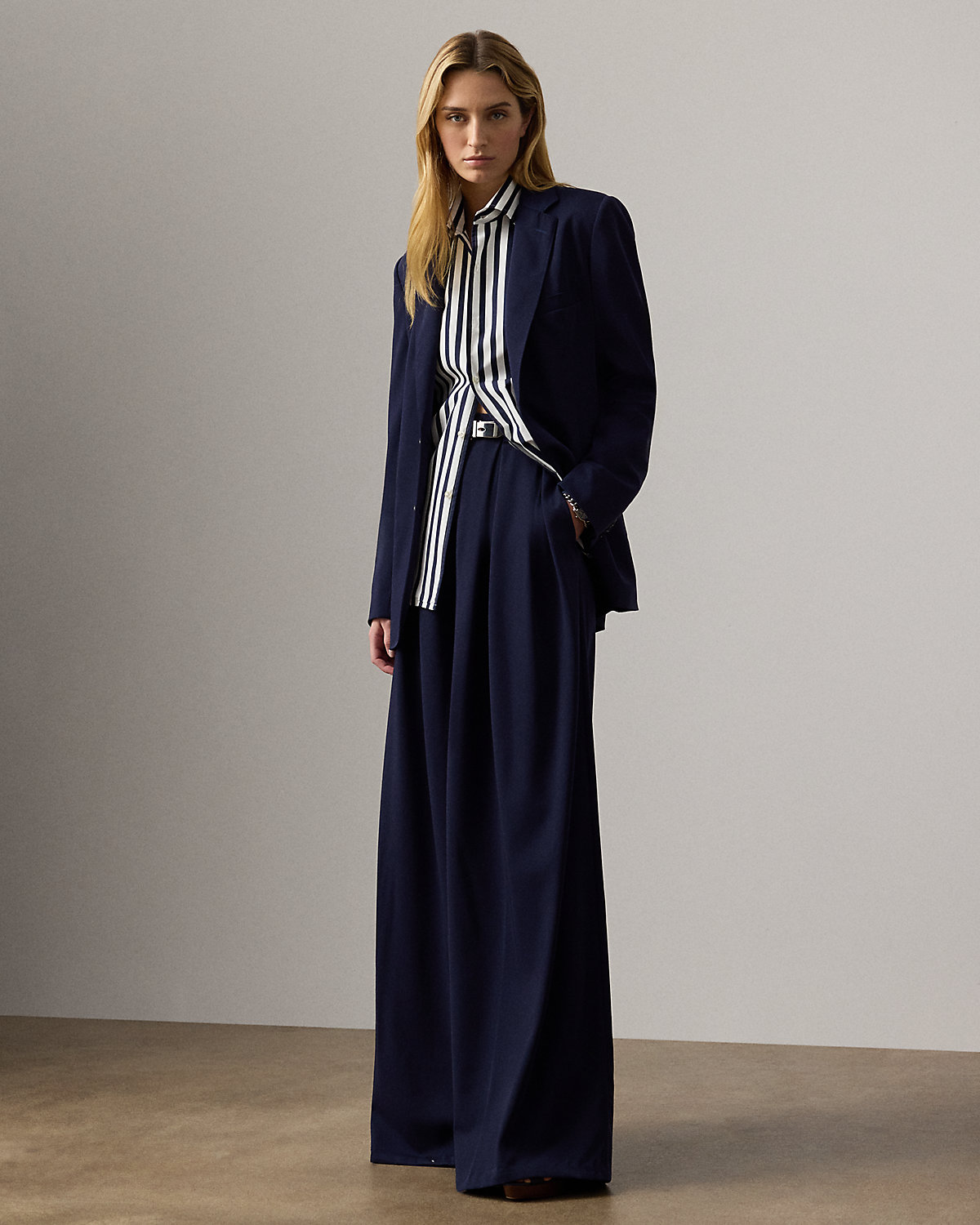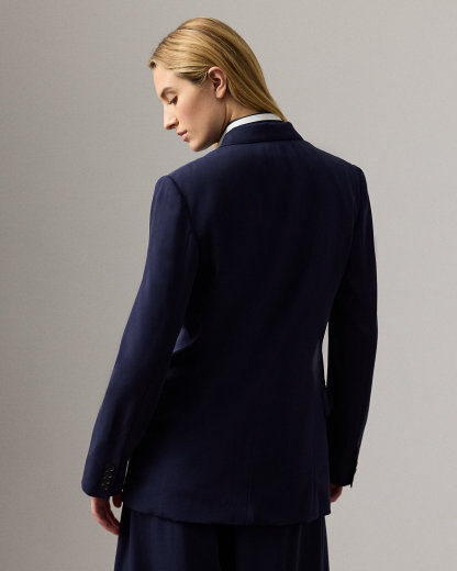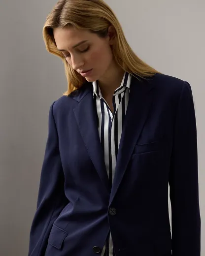 Modeled after menswear, the single-breasted Marcy jacket is cut for a slightly relaxed fit and is traditionally tailored with waist darts, flapped pockets, and slender notch lapels. Crafted in Italy, this timeless style is woven with wool gabardine in a compact weave specially selected for its structured form and stunning drape.