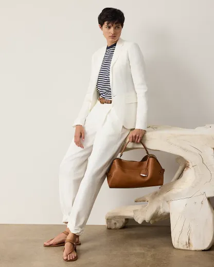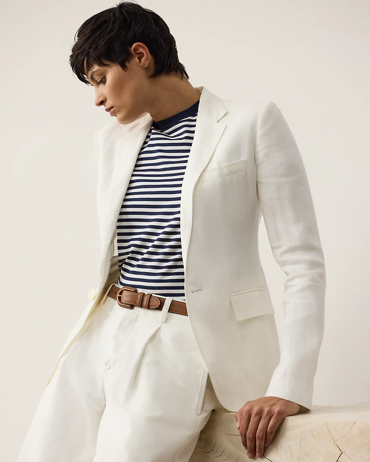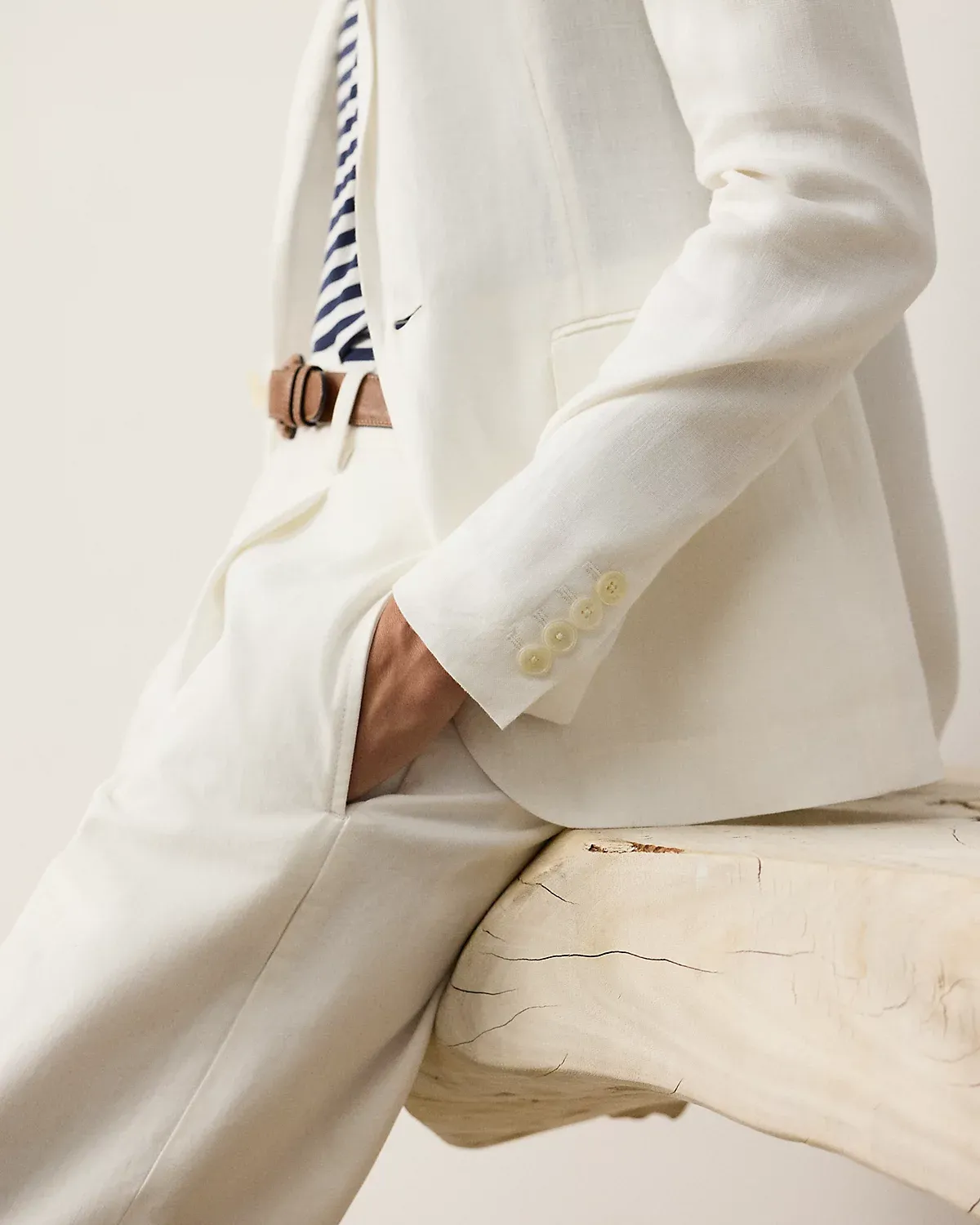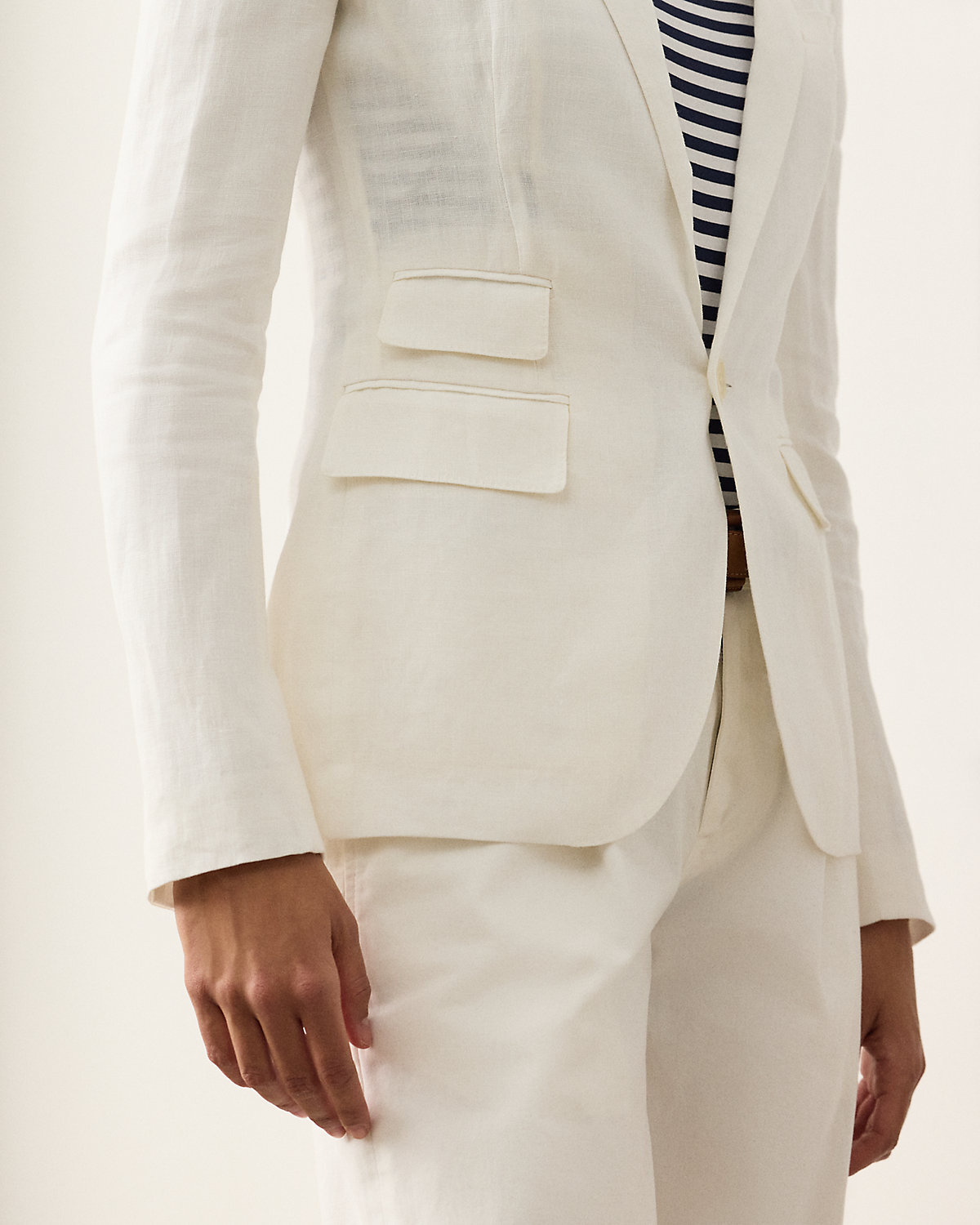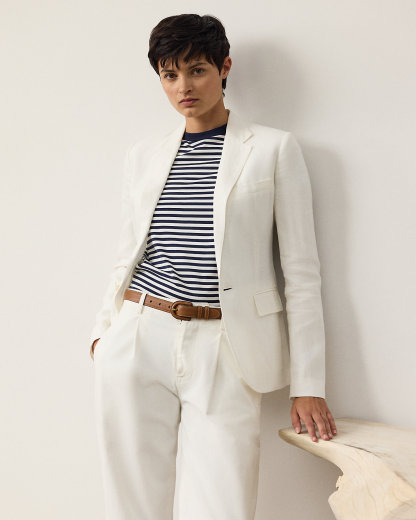 Equestrian-style hacking pockets and script “RL”-and-crown–engraved divs accent this season’s iteration of the Parker jacket. It’s crafted with rustic-yet-chic linen in a classic construction for season-spanning wear.
