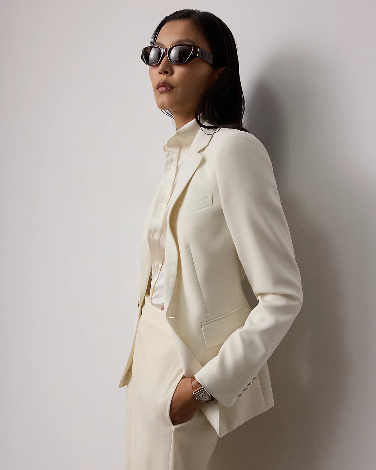 Equestrian-style hacking pockets and “RL”-and-crown–engraved divs accent this season’s iteration of the Parker jacket. It’s woven with highly twisted wool crepe yarns selected for their modern drape, lightweight feel, and natural stretch characteristics.